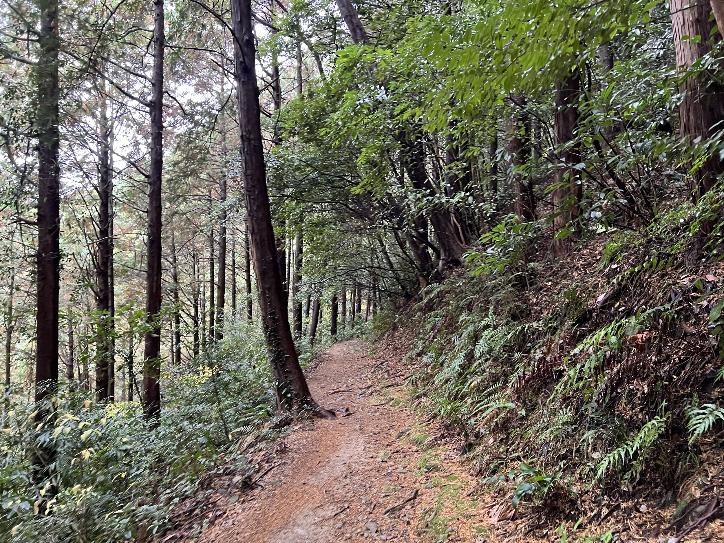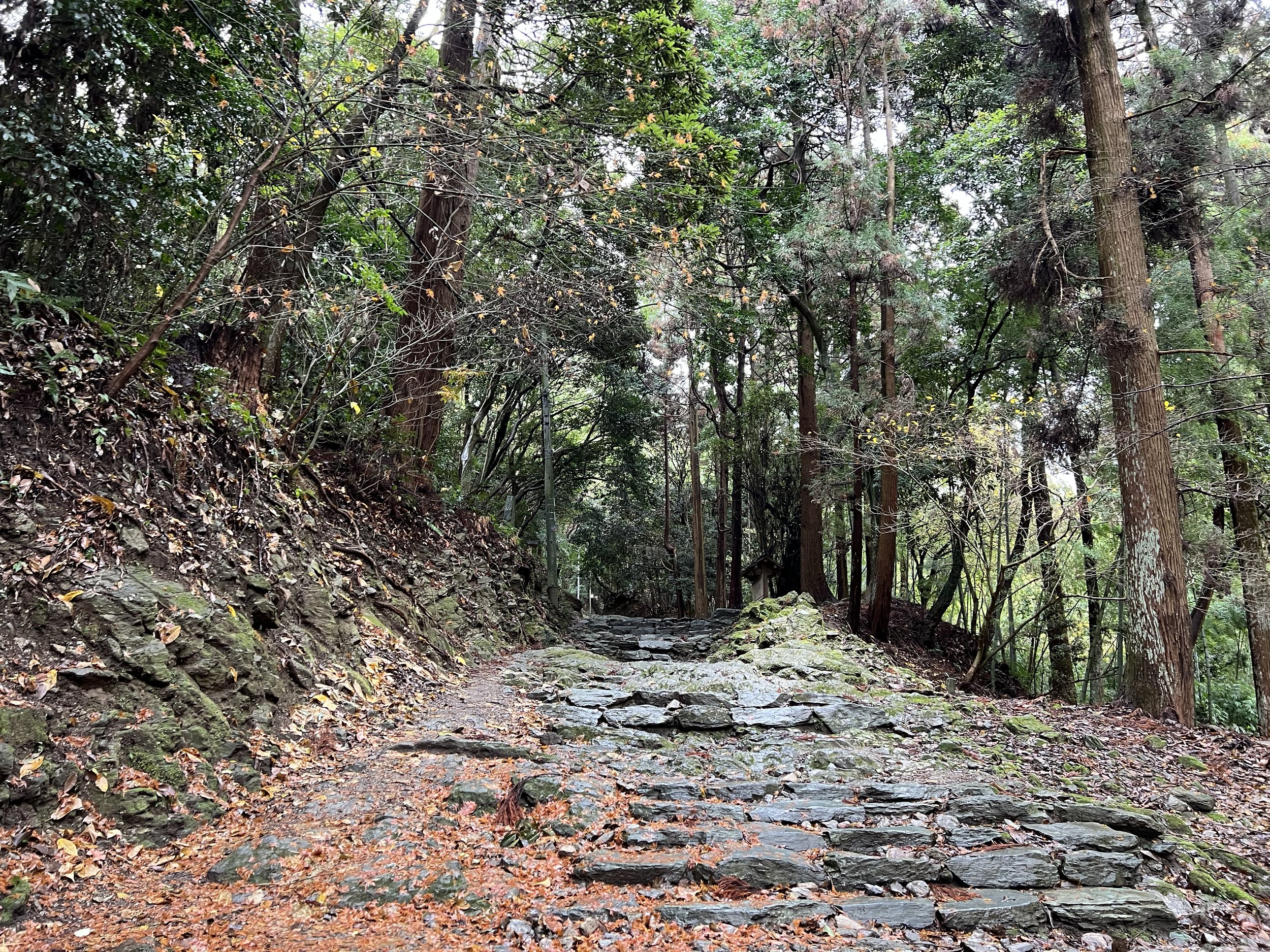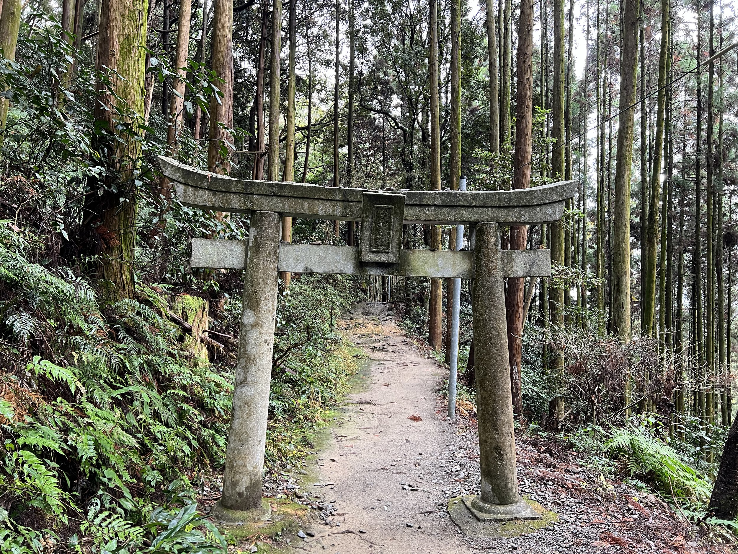 There are several routes to choose from as this hike is part of the Kyushu Olle Trail, the sister trail to the original Jeju Olle Trail in South Korea. I chose to start from Kurumedaigaku-mae Station, following the main approach road and gradually making my way up the mountain. Shortly after setting off, I passed beneath a large torii gate on the street, marking the beginning of the approach. Continuing uphill, I reached a second torii gate, which marks the official entrance to the mountain trail.