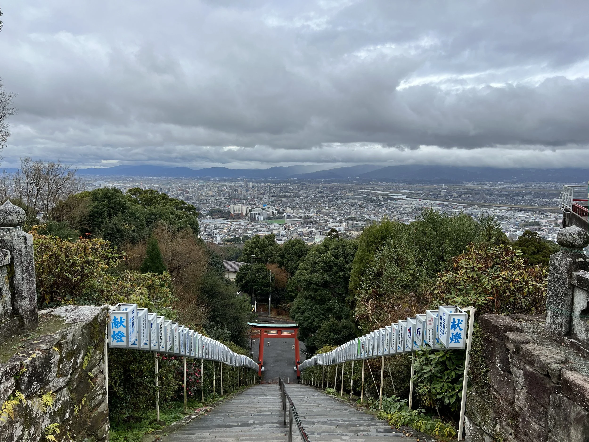 This section of the trail passes several smaller shrines before reaching the main staircase leading up to Kora Shrine. The stairs are lined with lanterns on both sides, and once I reached the top, I turned around to take in the view. With the lanterns framing the path, the red torii gate below, and the city stretching out beyond, it was a striking sight. I spent some time walking around the shrine grounds, enjoyed the view from the observatory deck, and took a few photos before continuing further up the mountain toward the inner shrine.