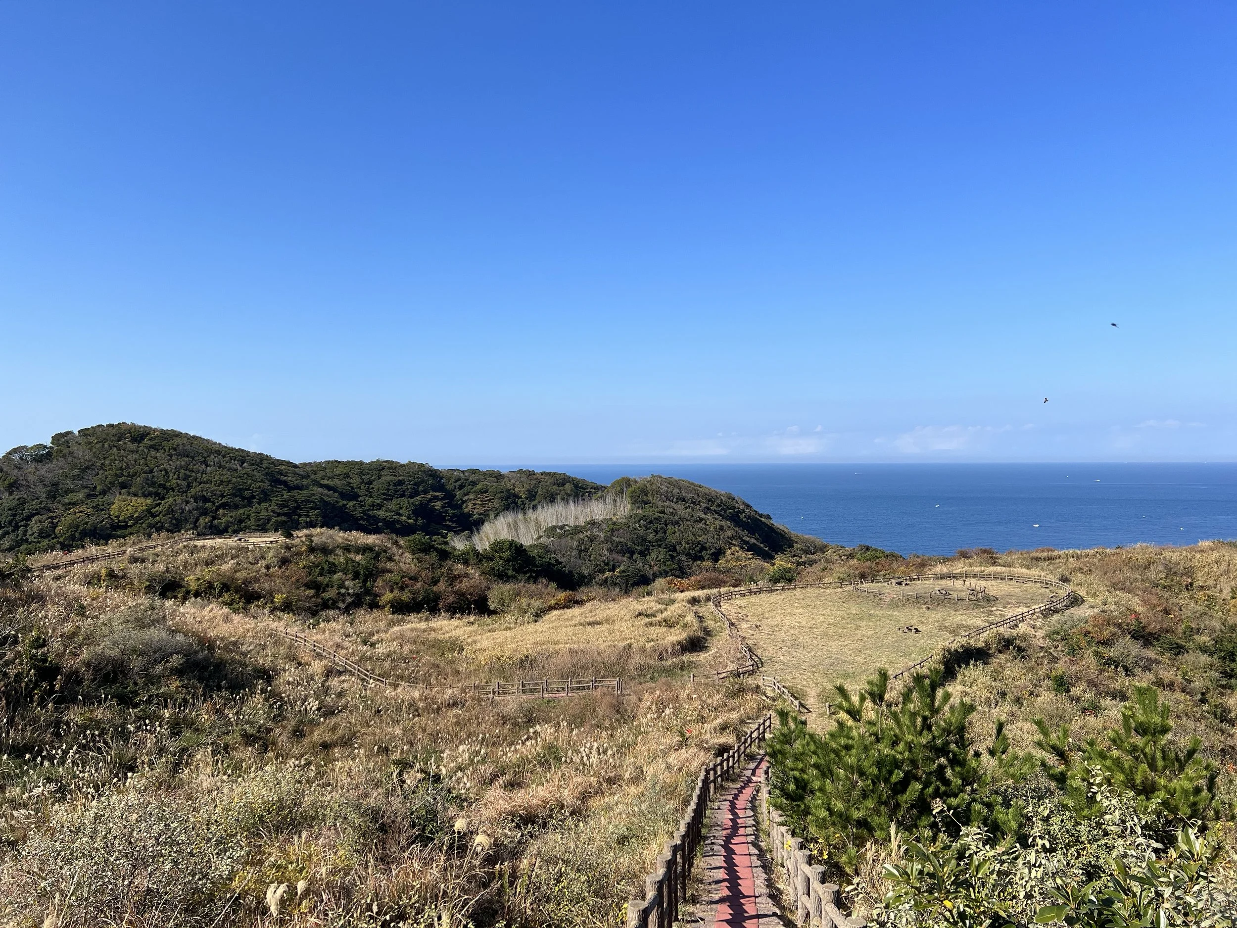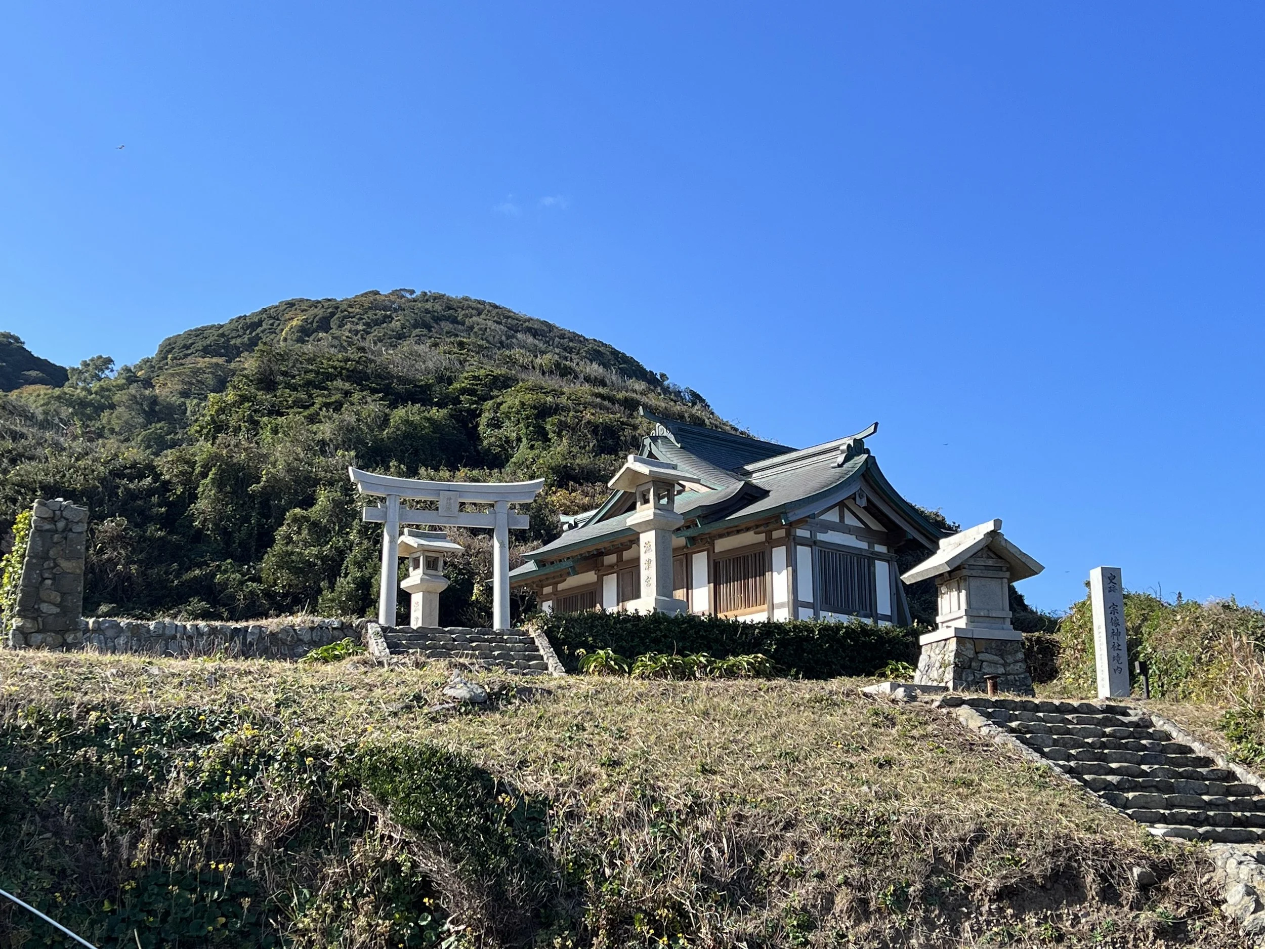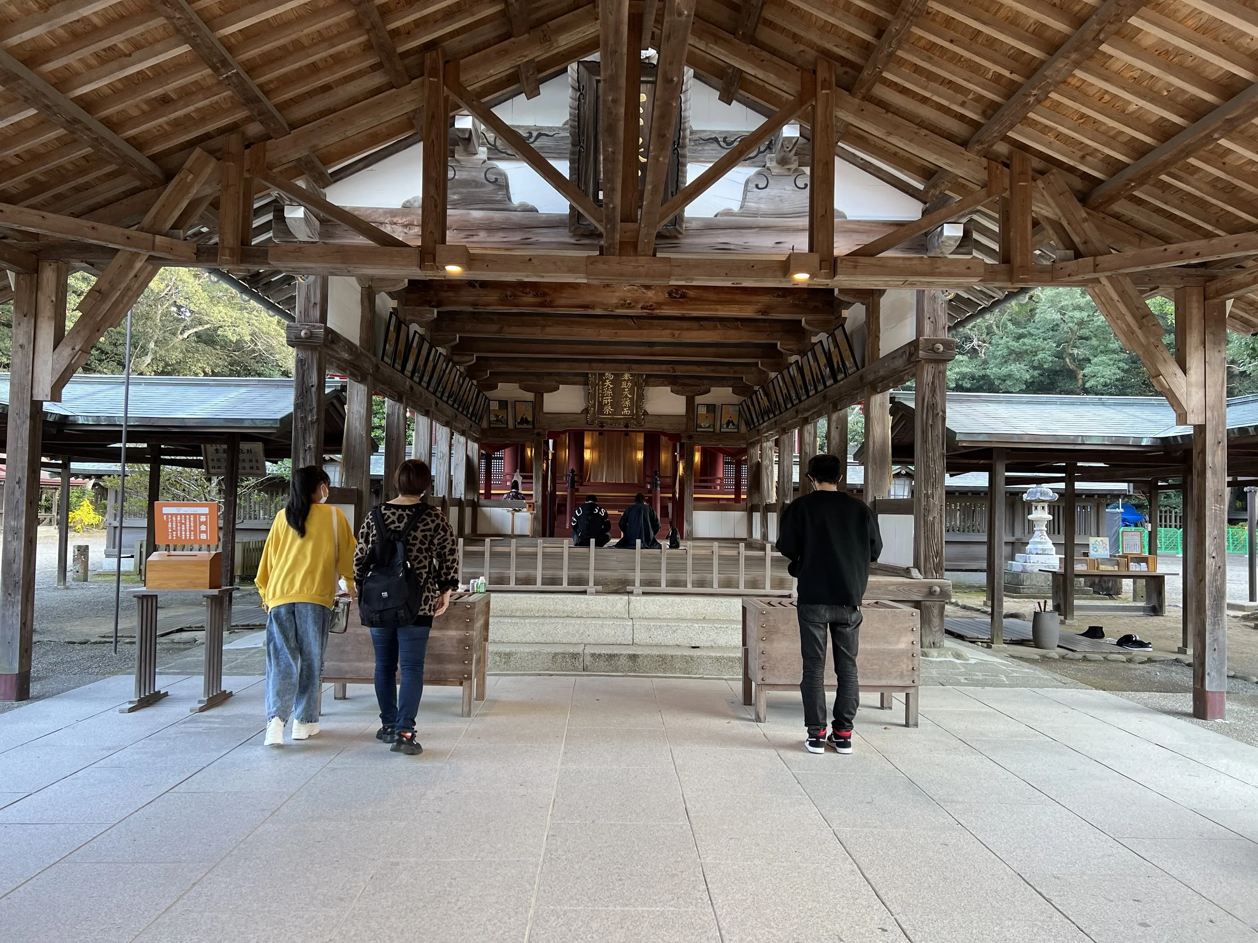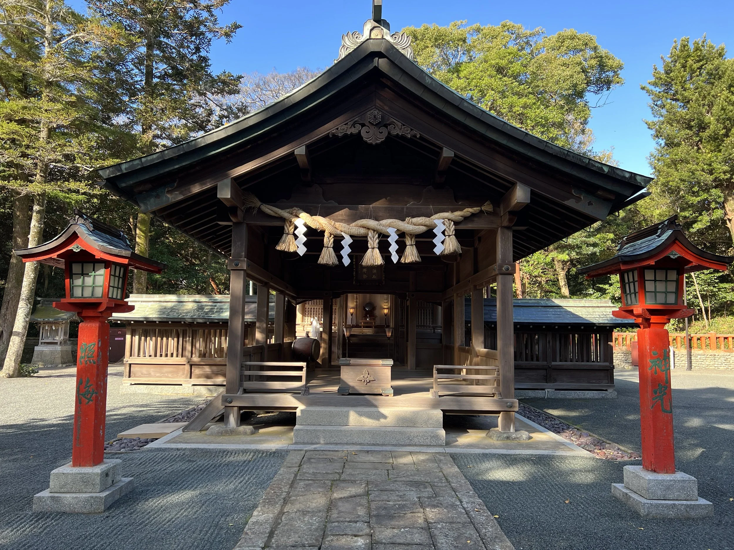 The route then descended along roads once used by the military, eventually leading to Munakata Taisha Okitsu-miya Yohaisho. Since Okinoshima is inaccessible, this seaside worship hall serves as the place where visitors can pay their respects to Okitsu Shrine. Located right by the water, it is said to offer the clearest, unobstructed view toward Okinoshima. I also learned that, to this day, women are not permitted to set foot on Okinoshima, and men who are allowed must first bathe in the sea as a purification ritual.