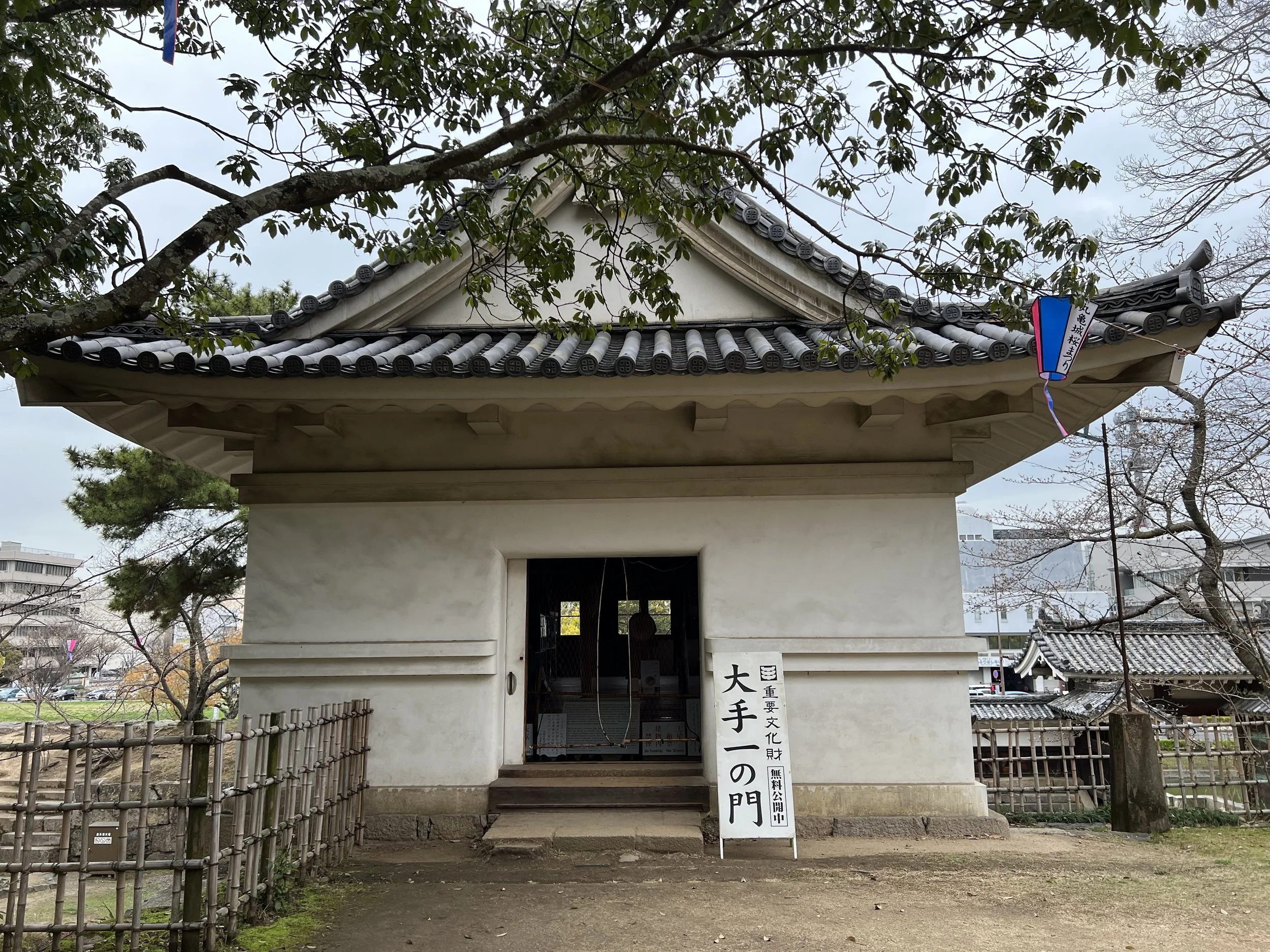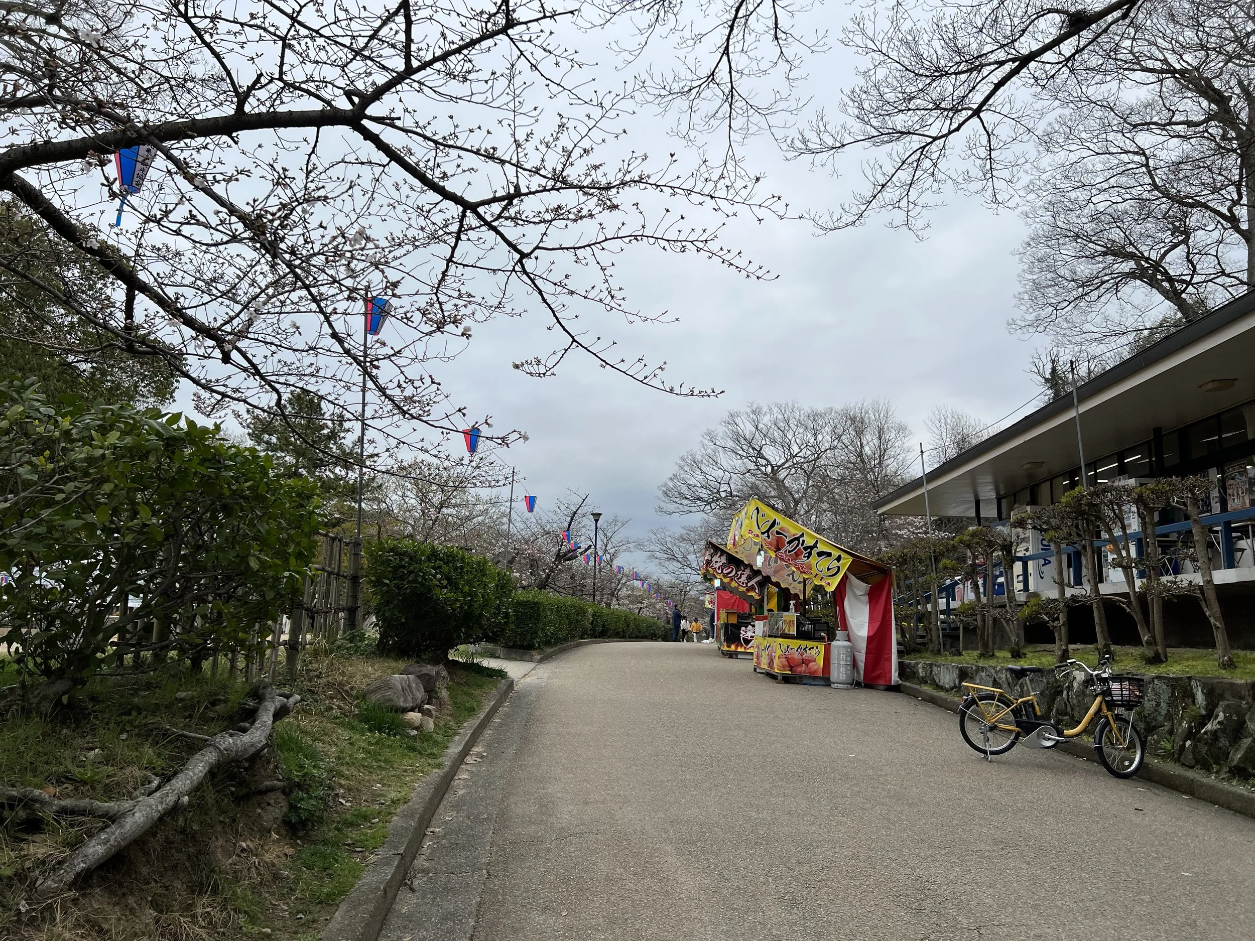 After finishing my visit to the keep, I walked toward the nearby Marugame City Museum and explored the surrounding area. There’s a small street of food stalls nearby, though only one was open at the time. I later learned that this area and the adjacent park are frequently used for local festivals throughout the year. Marugame Castle is especially well known during cherry blossom season, when over 1,000 sakura trees bloom around the stone walls and grounds, transforming the entire area into one of Kagawa’s most popular spring destinations.