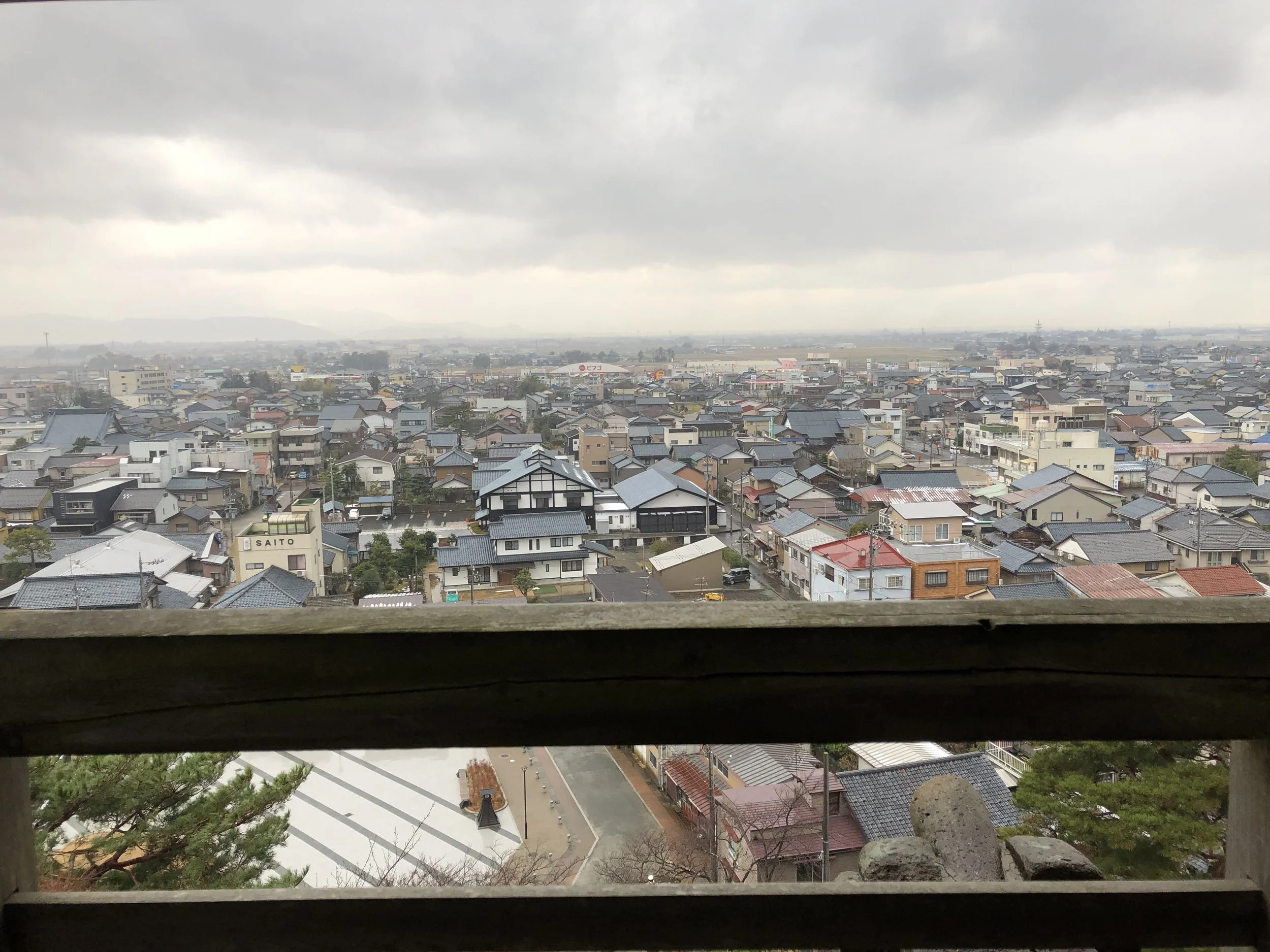 Built in 1576 on a small hill, Maruoka Castle is also known as Kasumigajo, or “Mist Castle.” According to local legend, whenever enemies approached—regardless of the weather—a thick mist would descend upon the castle, acting as a natural defensive barrier. On the day of my visit, the weather was far from ideal, but the faint mist in the air only added to the atmosphere, making it easy to understand how the castle earned its nickname.