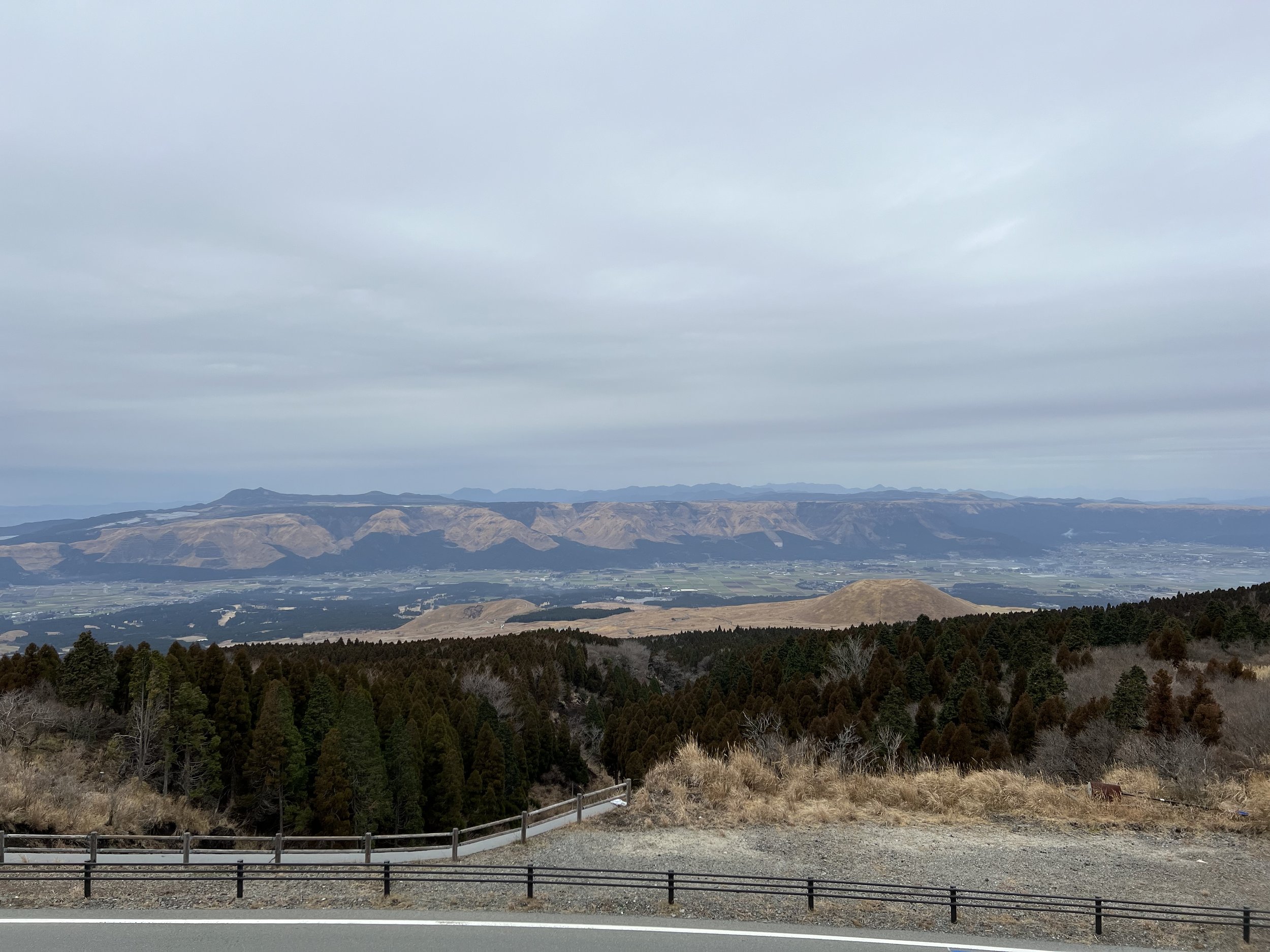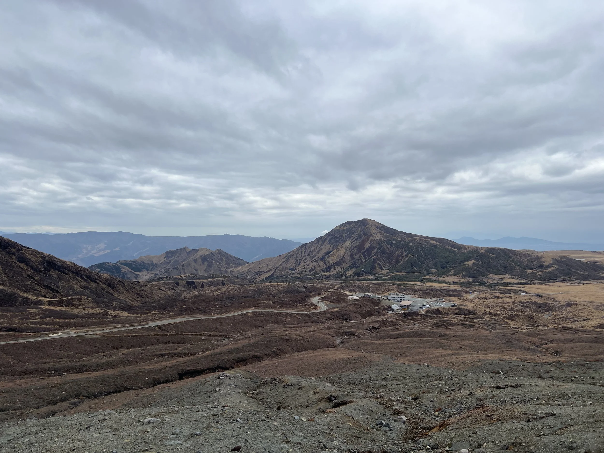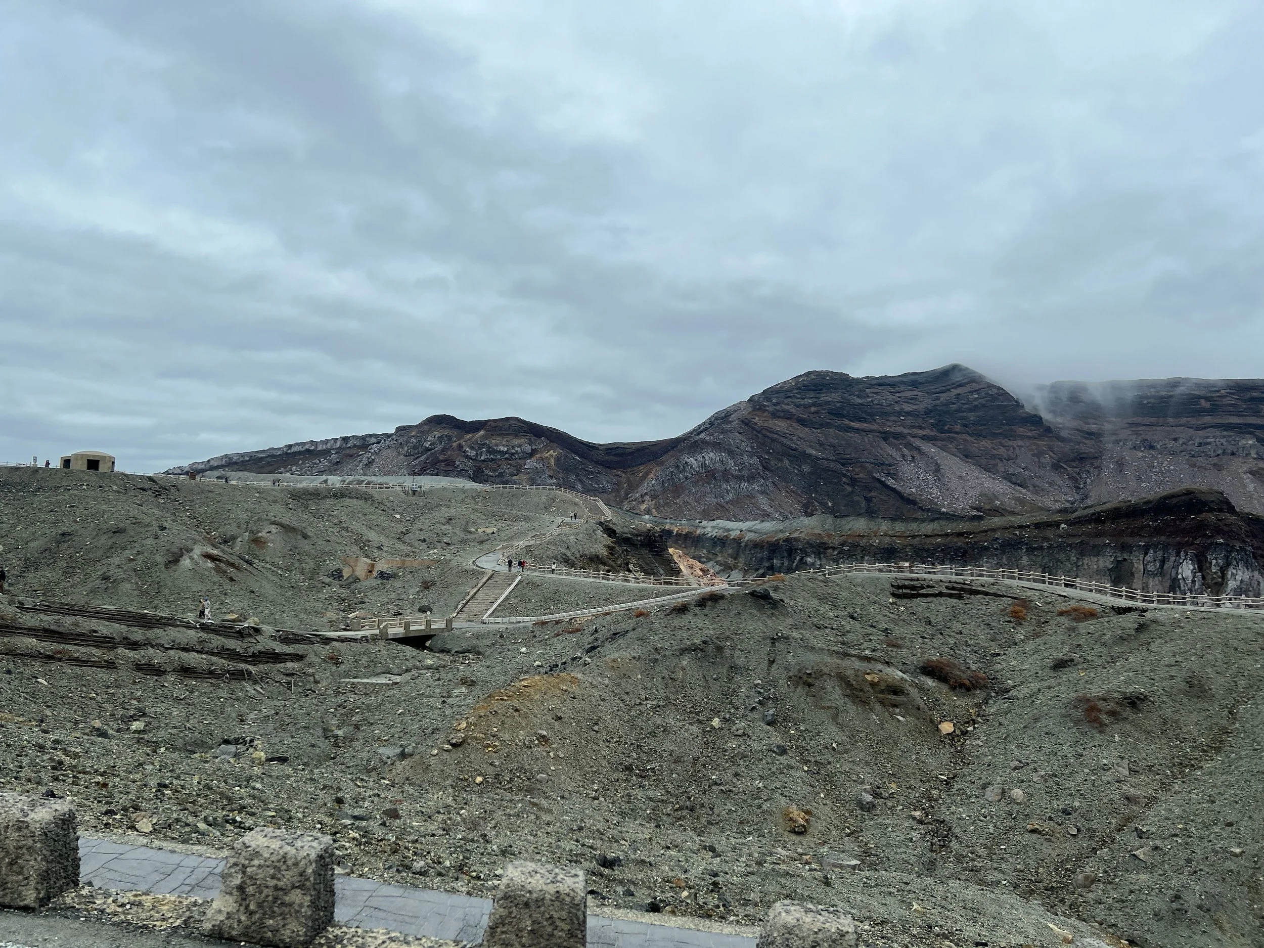 Mount Aso’s caldera is one of the largest in the world, measuring up to 25 kilometres in diameter and more than 100 kilometres in circumference. It is an extraordinary geological feature and not something I wanted to miss. Upon arrival, I walked around the crater area, viewing it from several designated viewpoints. Shelters are scattered throughout the area in case of falling volcanic ash, as this is an extremely active volcano. The crater is closely monitored by on-site staff who regularly patrol the area and are prepared to initiate evacuations if necessary.