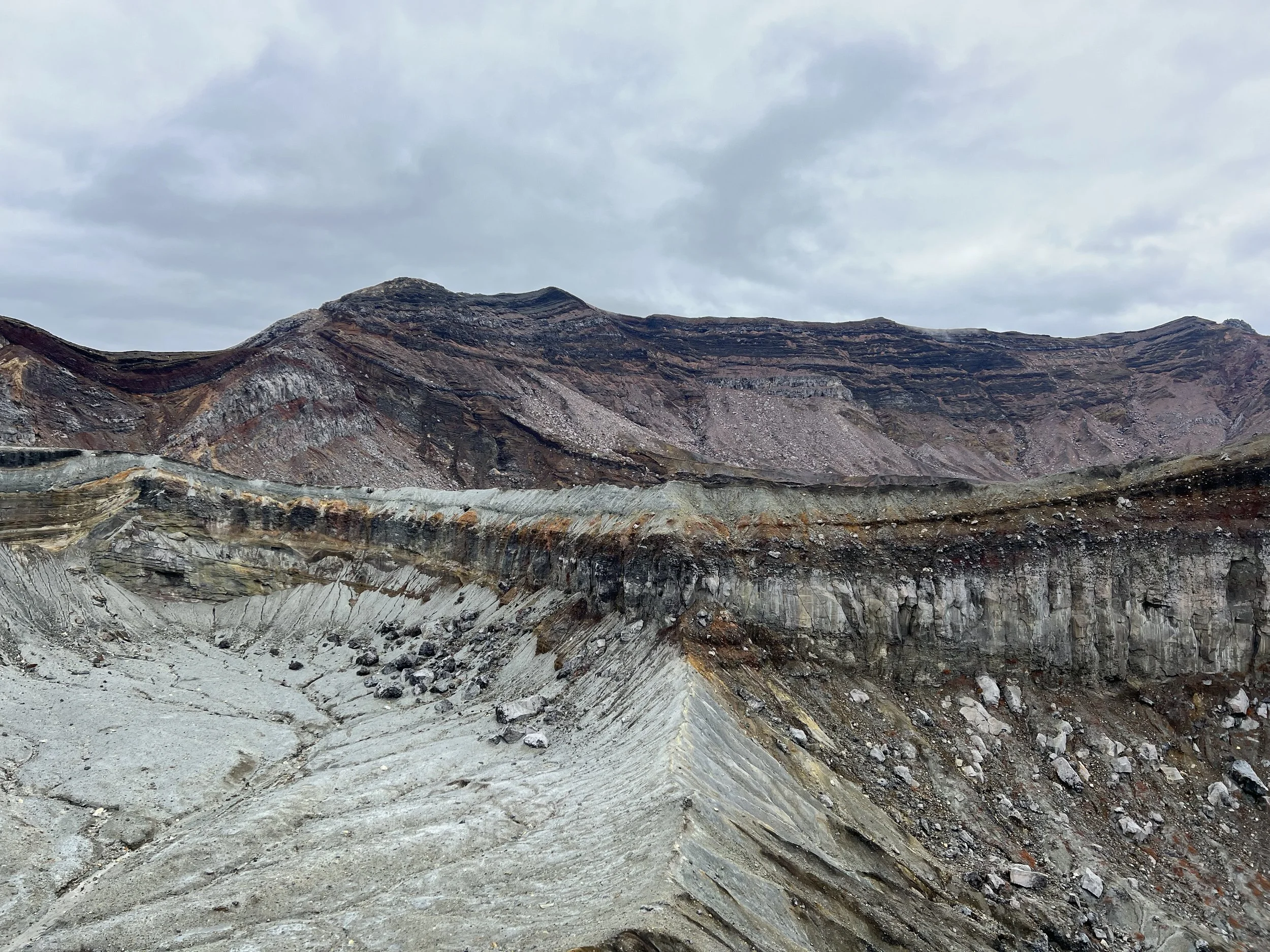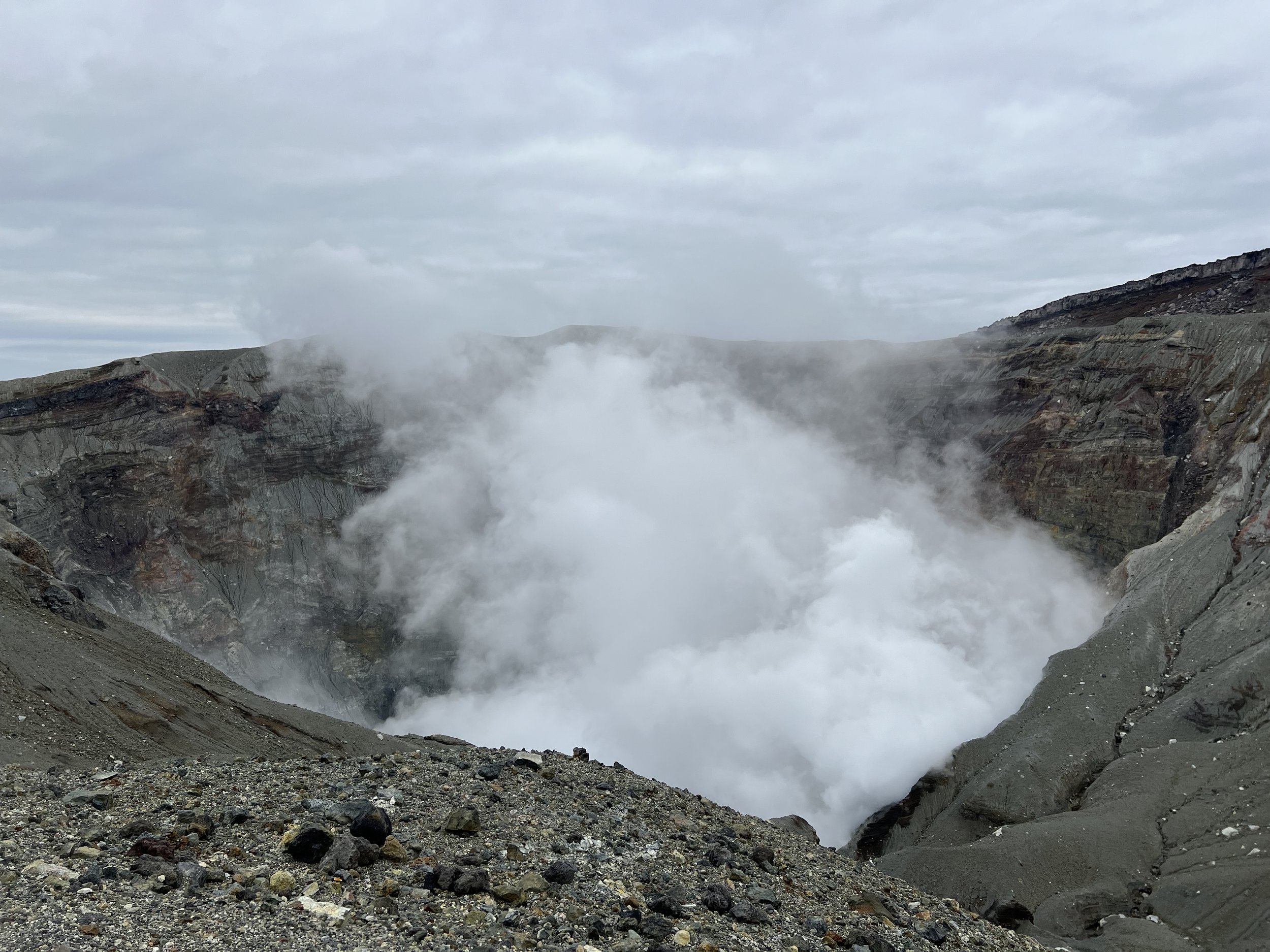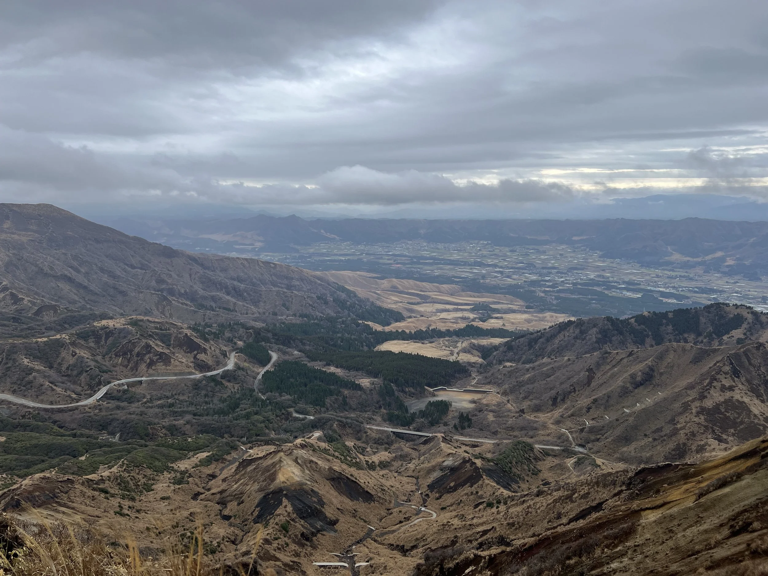Mount Aso’s caldera is one of the largest in the world, measuring up to 25 kilometres in diameter and more than 100 kilometres in circumference. It is an extraordinary geological feature and not something I wanted to miss. Upon arrival, I walked around the crater area, viewing it from several designated viewpoints. Shelters are scattered throughout the area in case of falling volcanic ash, as this is an extremely active volcano. The crater is closely monitored by on-site staff who regularly patrol the area and are prepared to initiate evacuations if necessary.