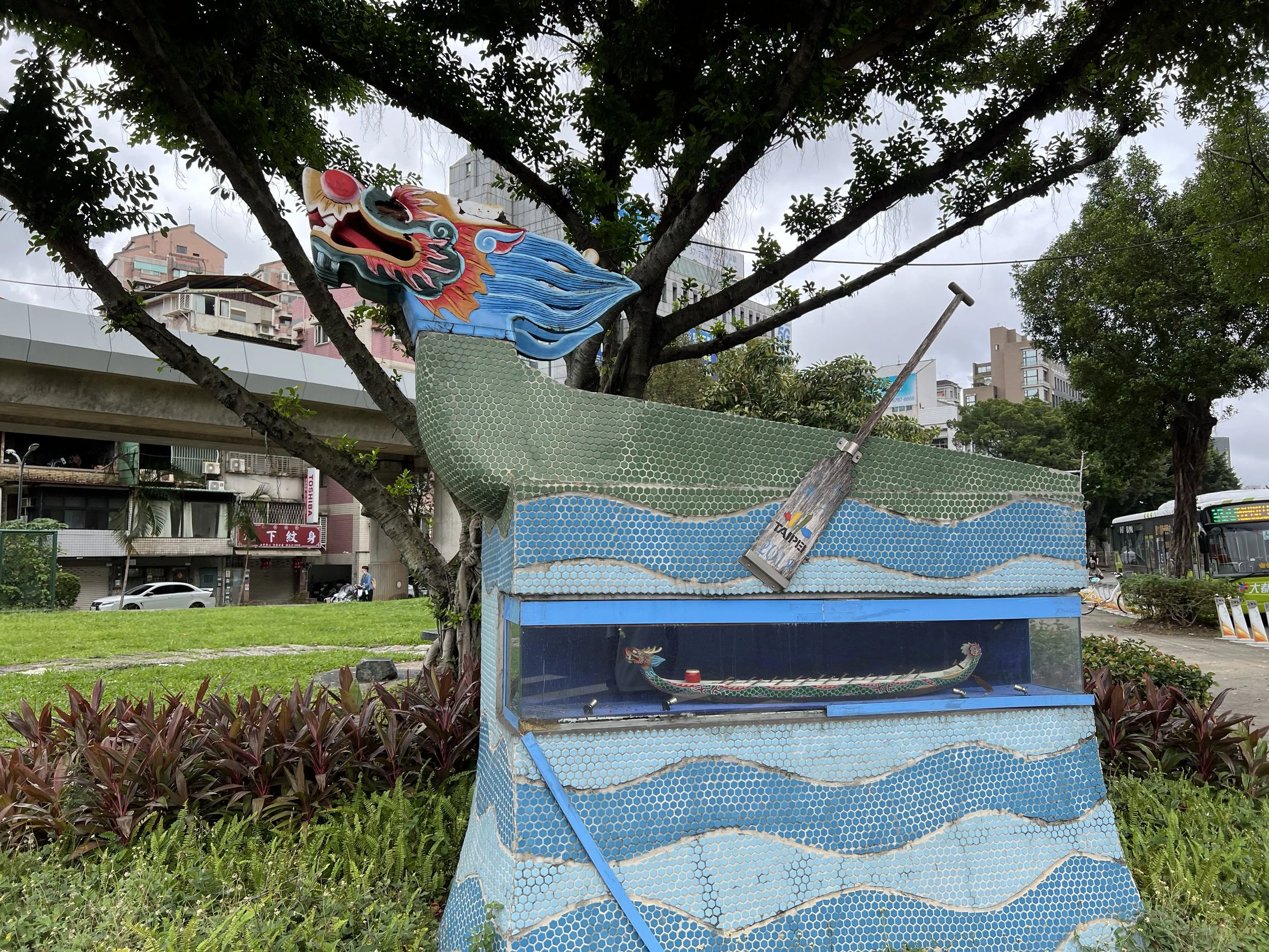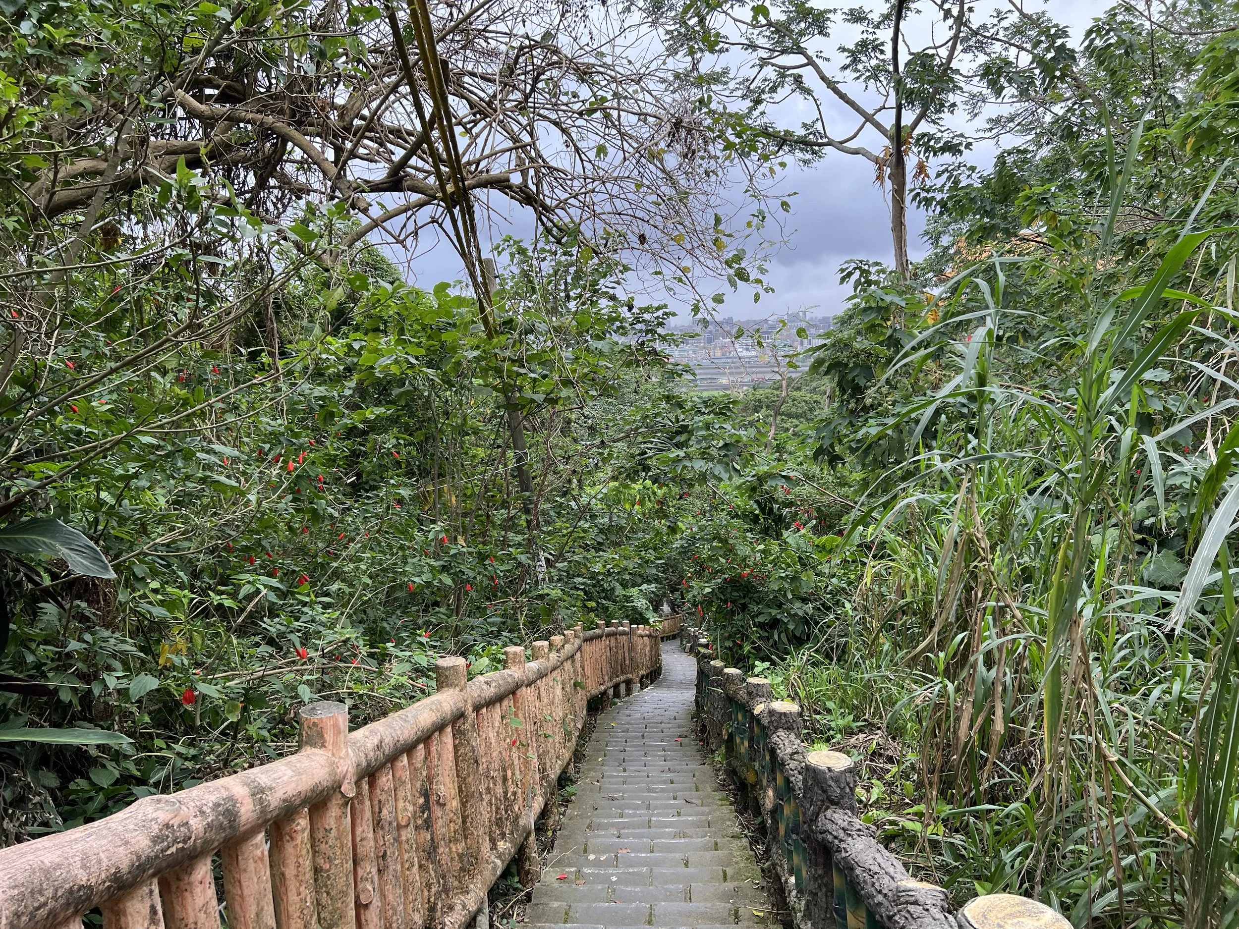 The hike began with a series of stairs before leveling out, and it didn’t take long to reach the summit. The highlight, however, was the city views along the way. Most hikers continue past Mount Jiantan to the Old Place Airplane Observation Deck, which offers an unobstructed view of Songshan Airport, Taipei 101, and the surrounding city skyline. While I didn’t see any planes taking off, the deck itself was charming, featuring paper airplane sculptures and other aviation-themed decorations.