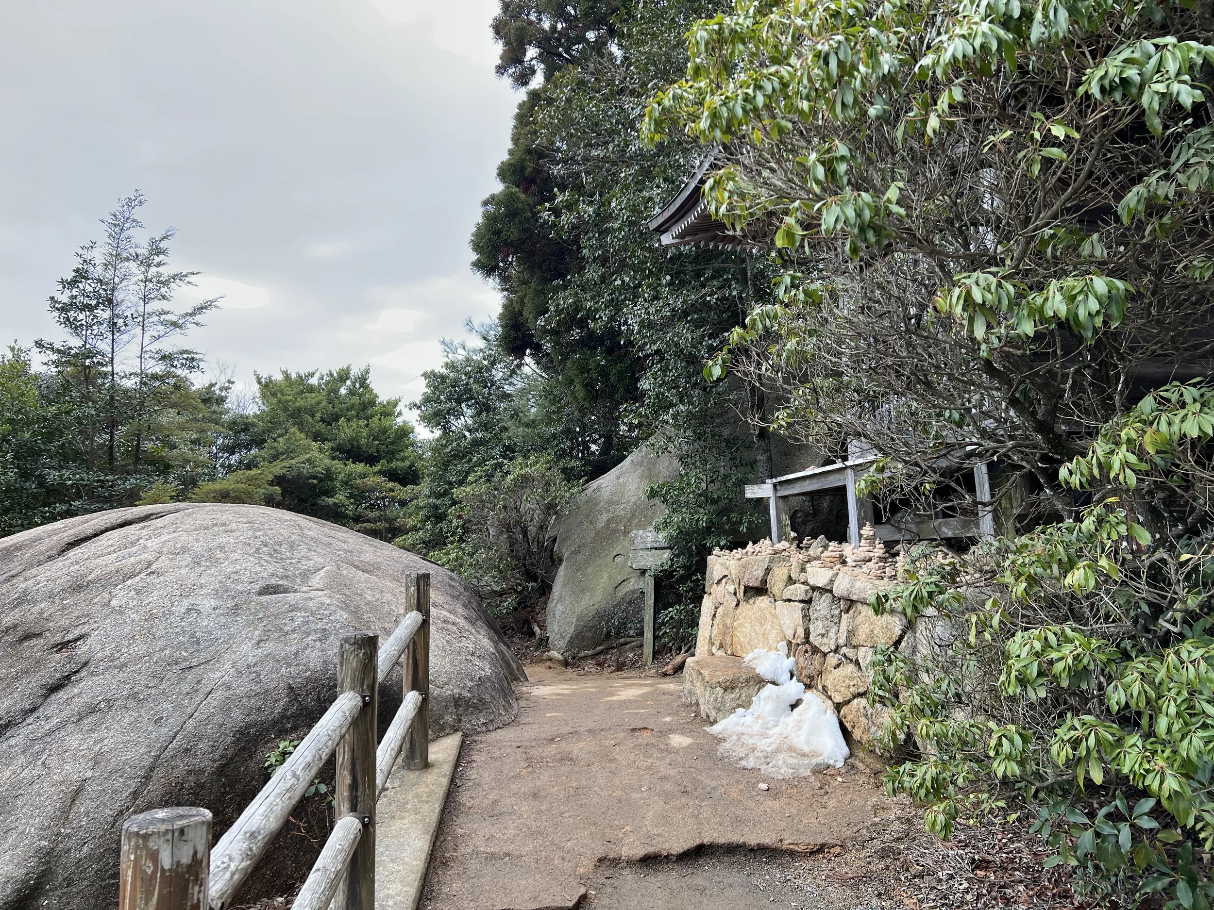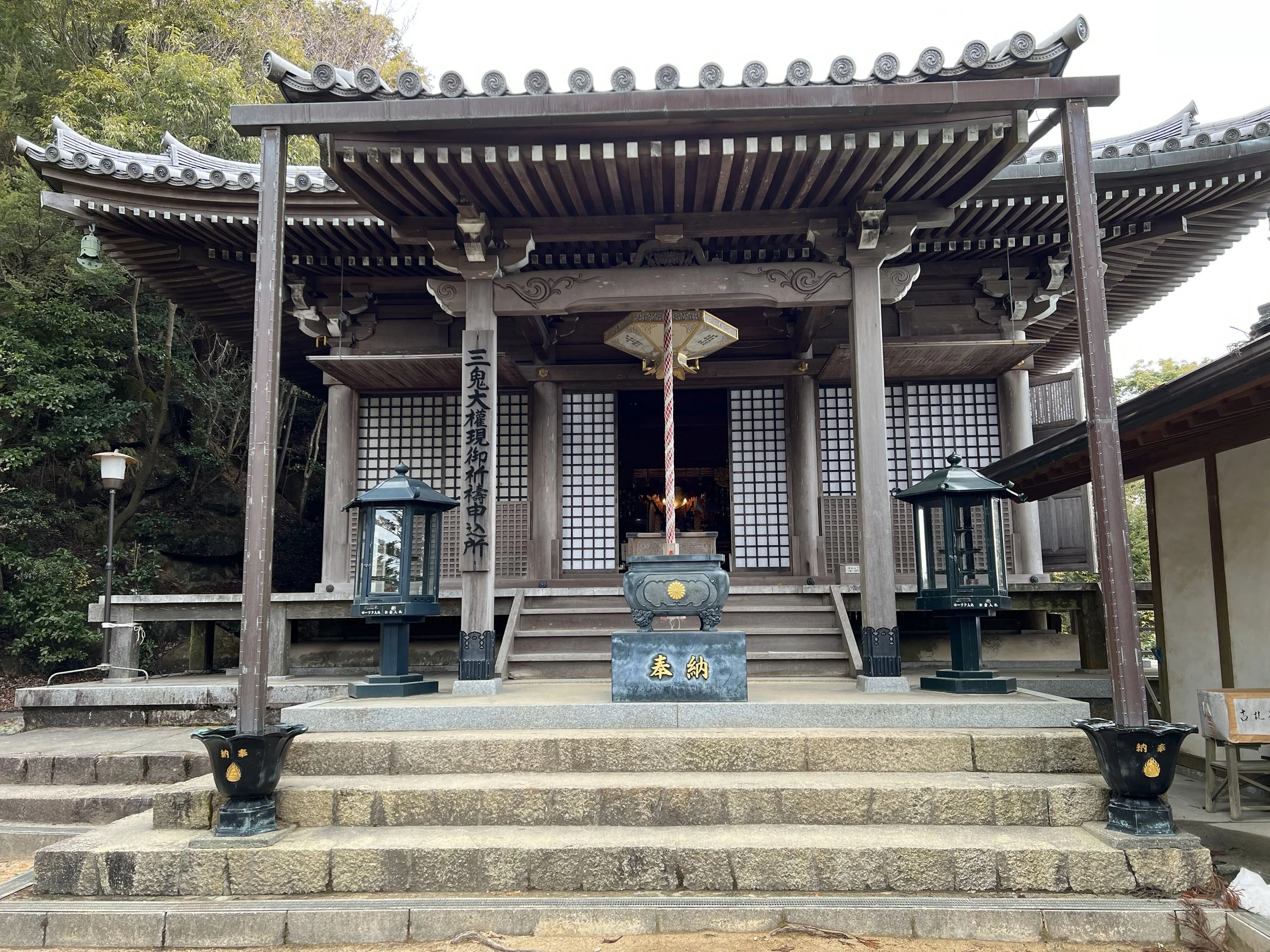 The hike from the ropeway station was manageable, with a mix of stone steps and uneven terrain with large boulders. Along the way, I came across several temple structures connected to Daisho-in Temple, located at the base of the mountain. One of the most notable stops was the Reikado Hall, also known as the Hall of the Spiritual Flame. It’s believed that Kobo Daishi once performed a fire ritual here, creating a sacred flame that has been kept burning ever since. That same flame was later used to light the Flame of Peace in Hiroshima’s Peace Memorial Park, which adds a deeper layer of meaning to the site.