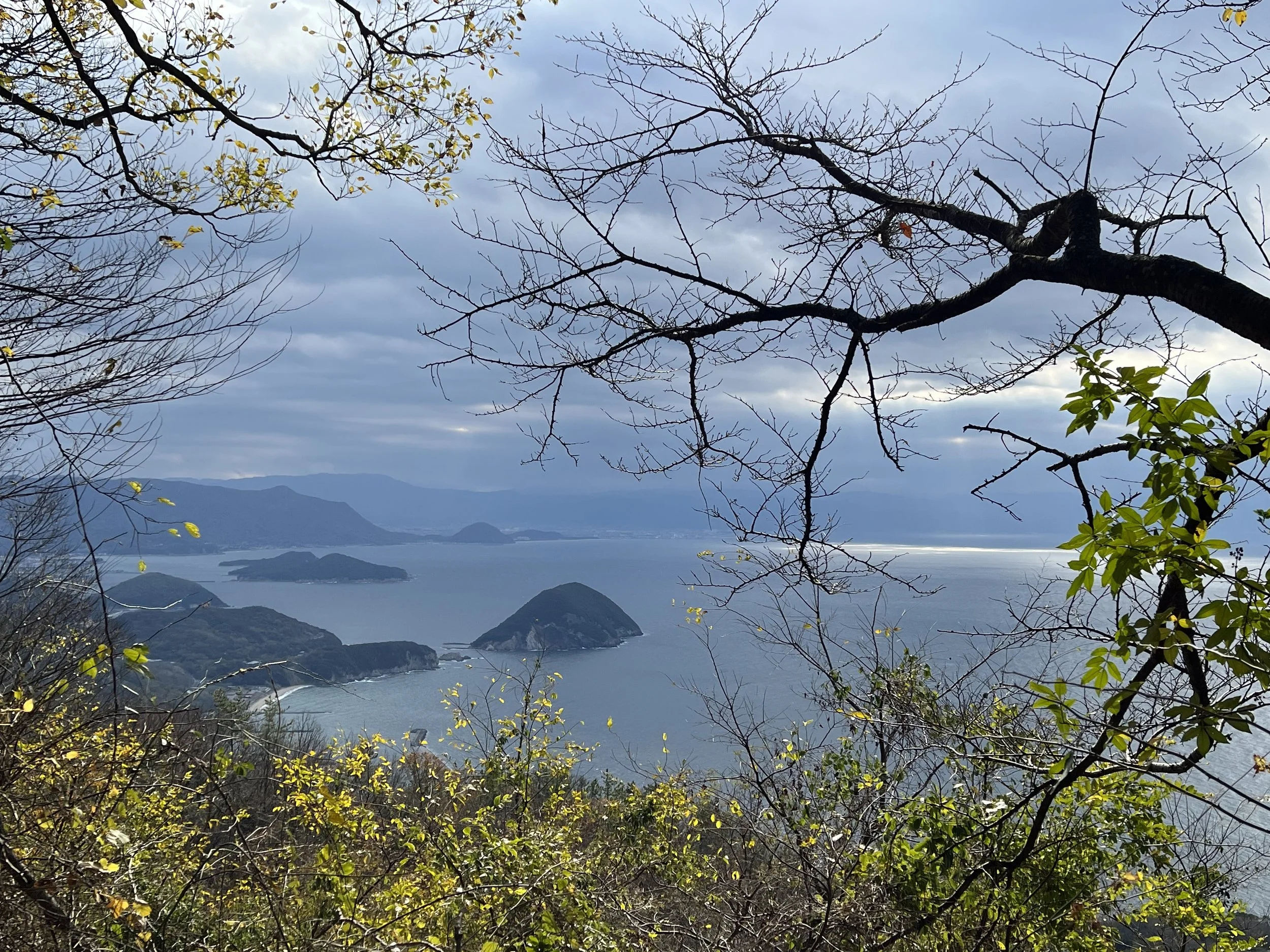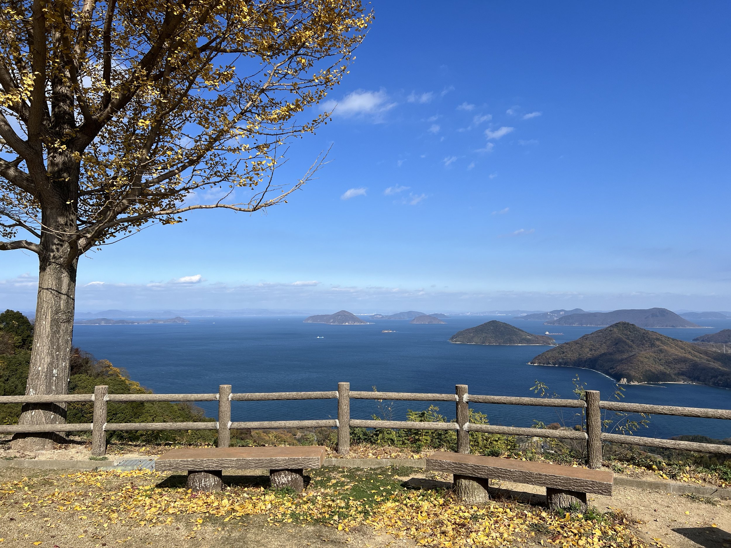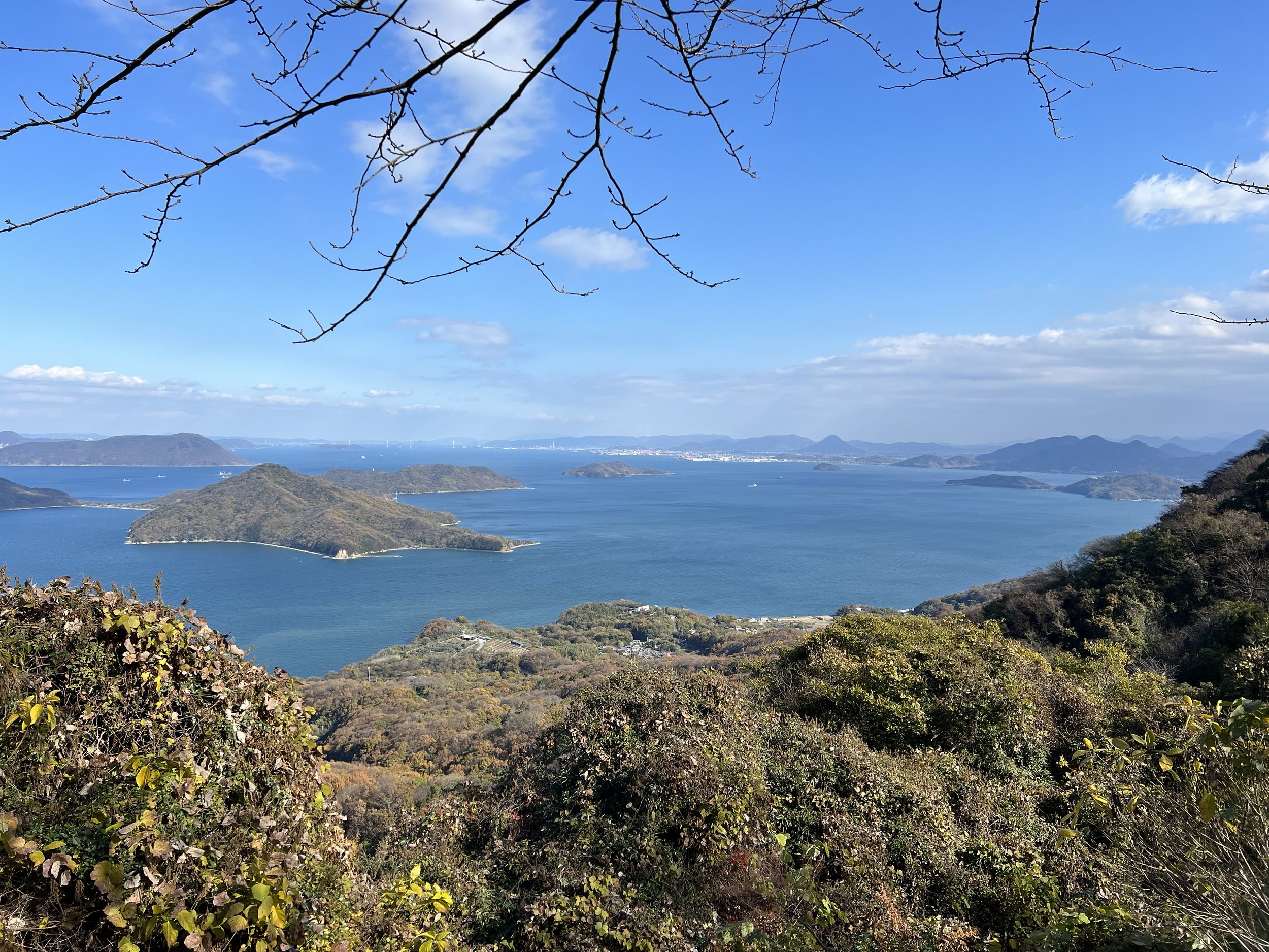 After familiarizing myself with the precautions, I continued on. About fifteen minutes below the summit, there are two small parking lots with very limited space, and even from here the views were already impressive. The islands scattered across the Seto Inland Sea stretched out below, and despite the trees being bare at this time of year, the scenery was still striking. I lingered here for a while, imagining how spectacular it must be during peak bloom, before continuing the final stretch to the summit.