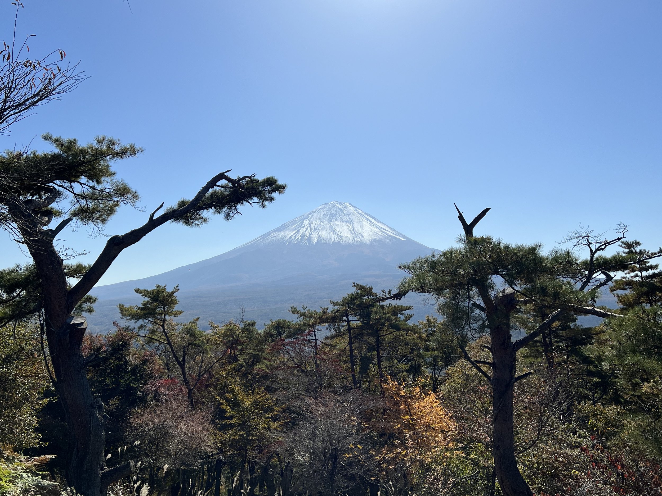 The trail began with a steady incline, and partway up, a few trail workers quickly passed us, pausing just long enough to warn that the sandy path could be slippery. It didn’t take long to reach Koyodai, where I took countless photos from a spot framed by pine trees with Mount Fuji in the background. There was a small shop nearby, so I grabbed a bottle of water and a sports drink before continuing.