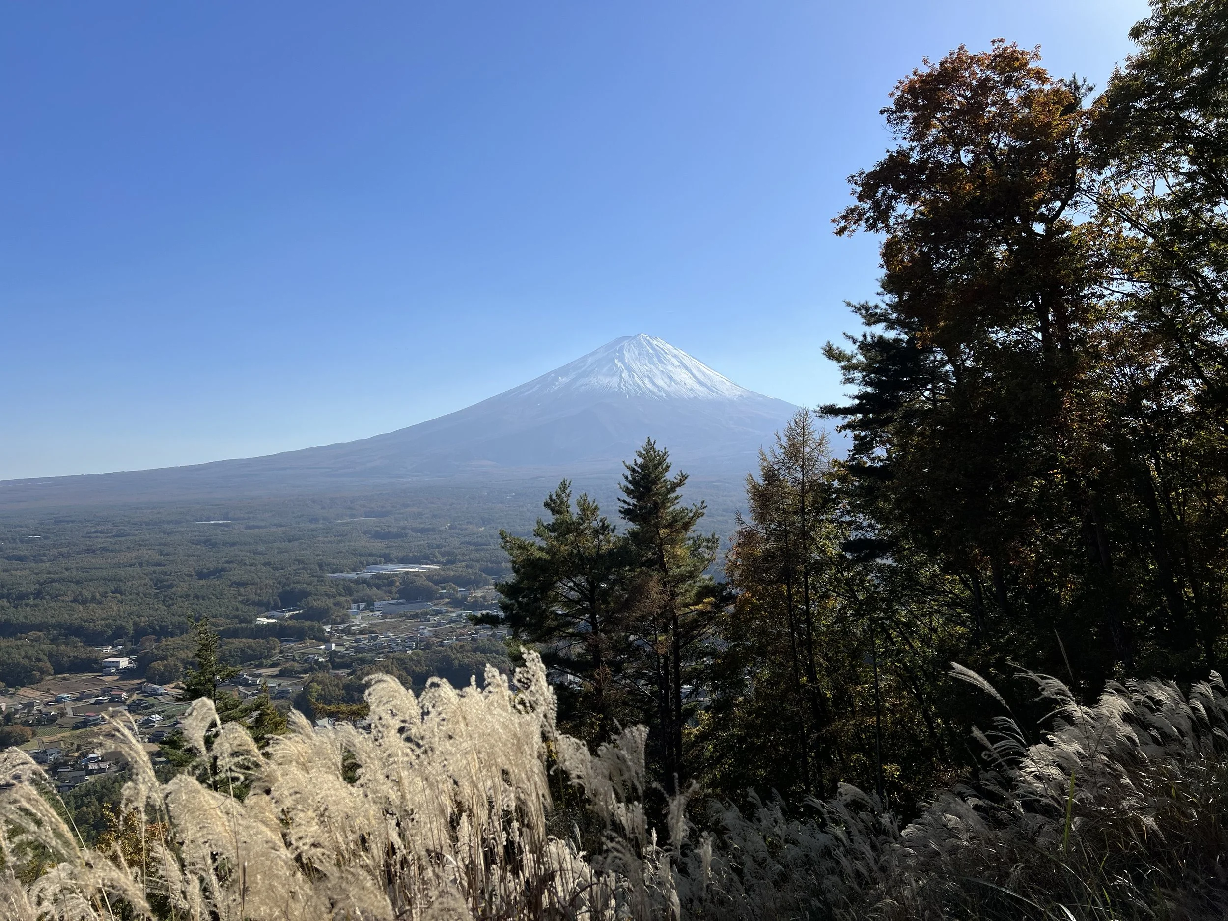 I hadn’t packed much water but figured there would be vending machines or small shops near the Koyodai Observatory, so I rolled with it. I chose this trail for the autumn leaves, the view of Mount Fuji, and the chance to see three lakes along the way—Kawaguchi, Saiko, and Shoji. The bus dropped me off a few minutes from the trailhead, but since there weren’t any clear signs, a few other hikers and I teamed up to find it together.