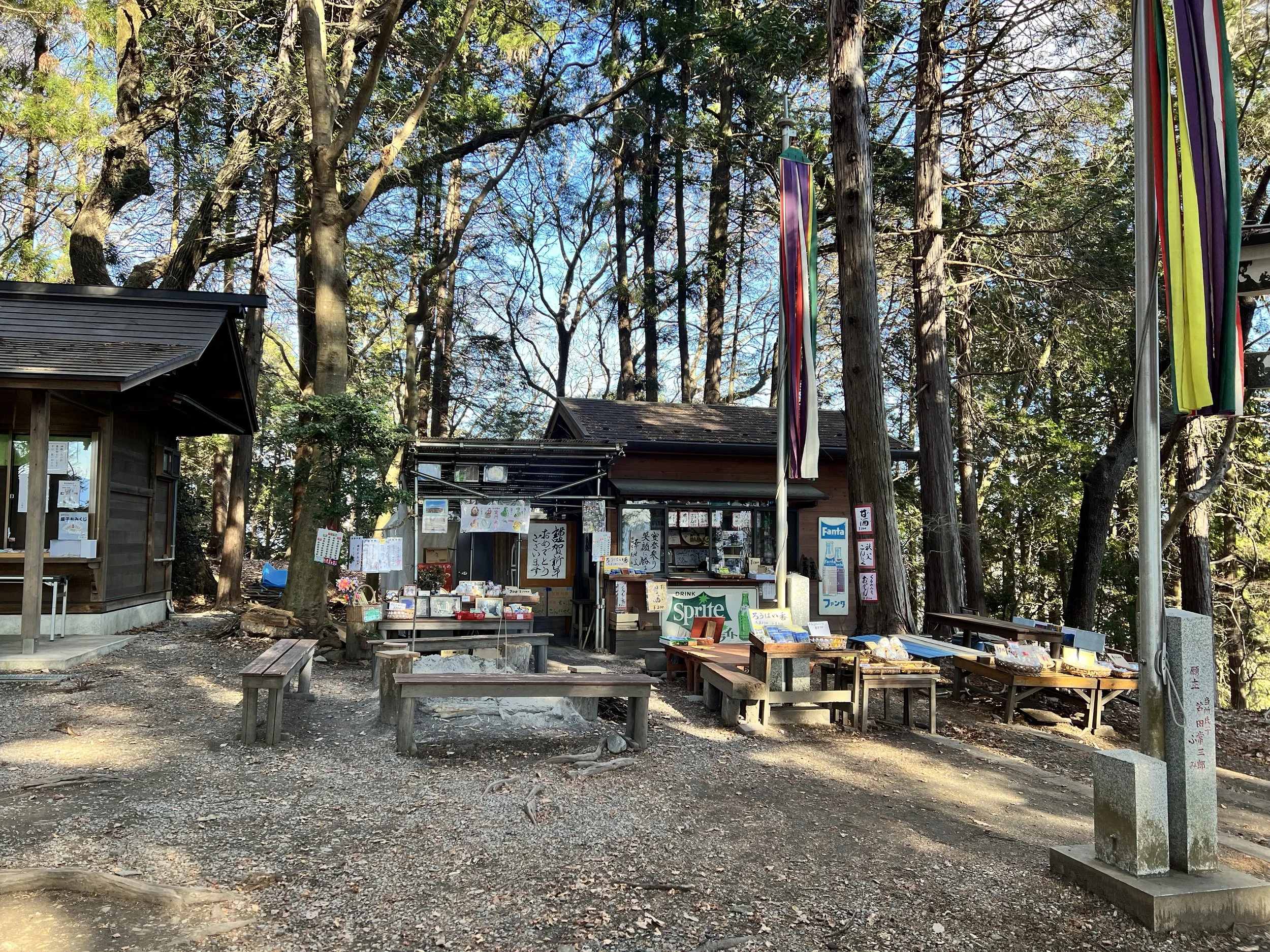 The trail was wide and gentle, more of a gravel road than a forest path, with great views of the surrounding area. It didn’t take long to reach the inner shrine. Even if you take the cable car, you’ll still need to climb a short staircase near the top. The first thing that greets you at the summit is a small shop before the shrine itself.