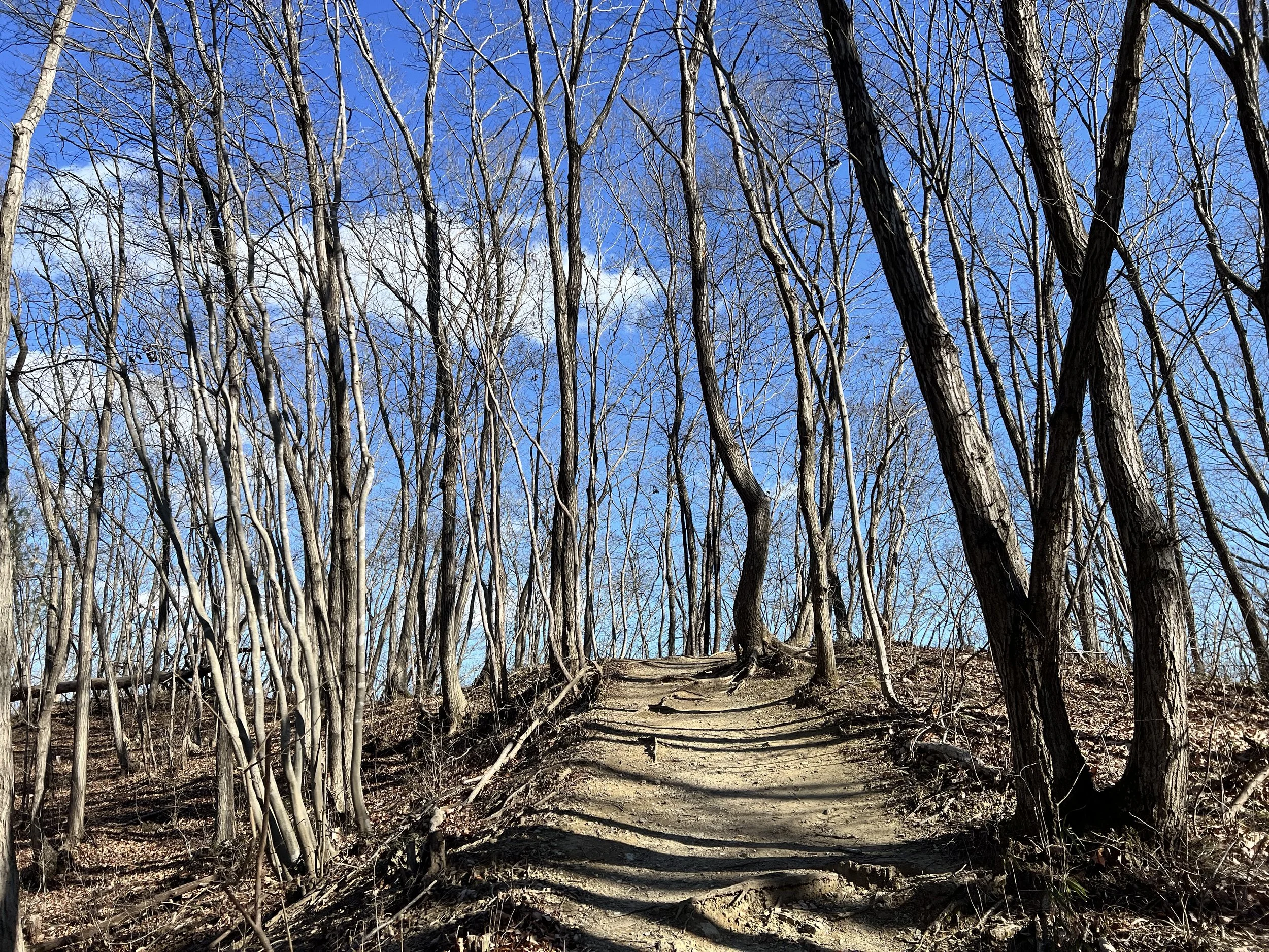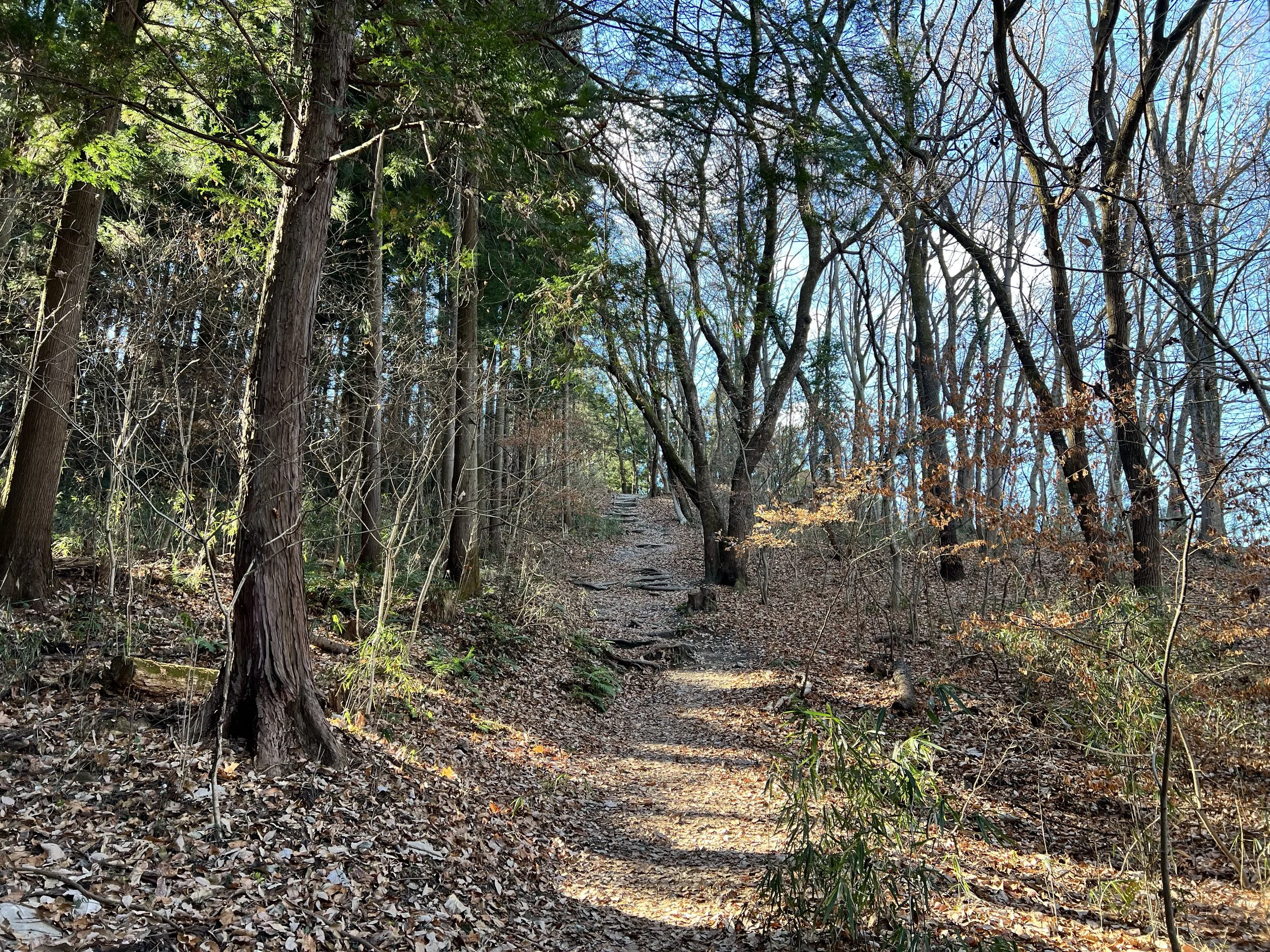 I spent a few moments browsing, offered a prayer, took some photos, and began my descent along the Nagatoro Alps Trail toward Nogami Station. The first part was a bit tricky—leaf-covered steps made it hard to see where to place my feet. I noticed more hikers coming up this route than the one I’d taken up. The trail wasn’t difficult, just more exposed since the trees were bare this time of year. Part of the route passes through private land, and there’s a donation box asking hikers to contribute ¥100 to help maintain the trail—a gesture that feels worth supporting.
