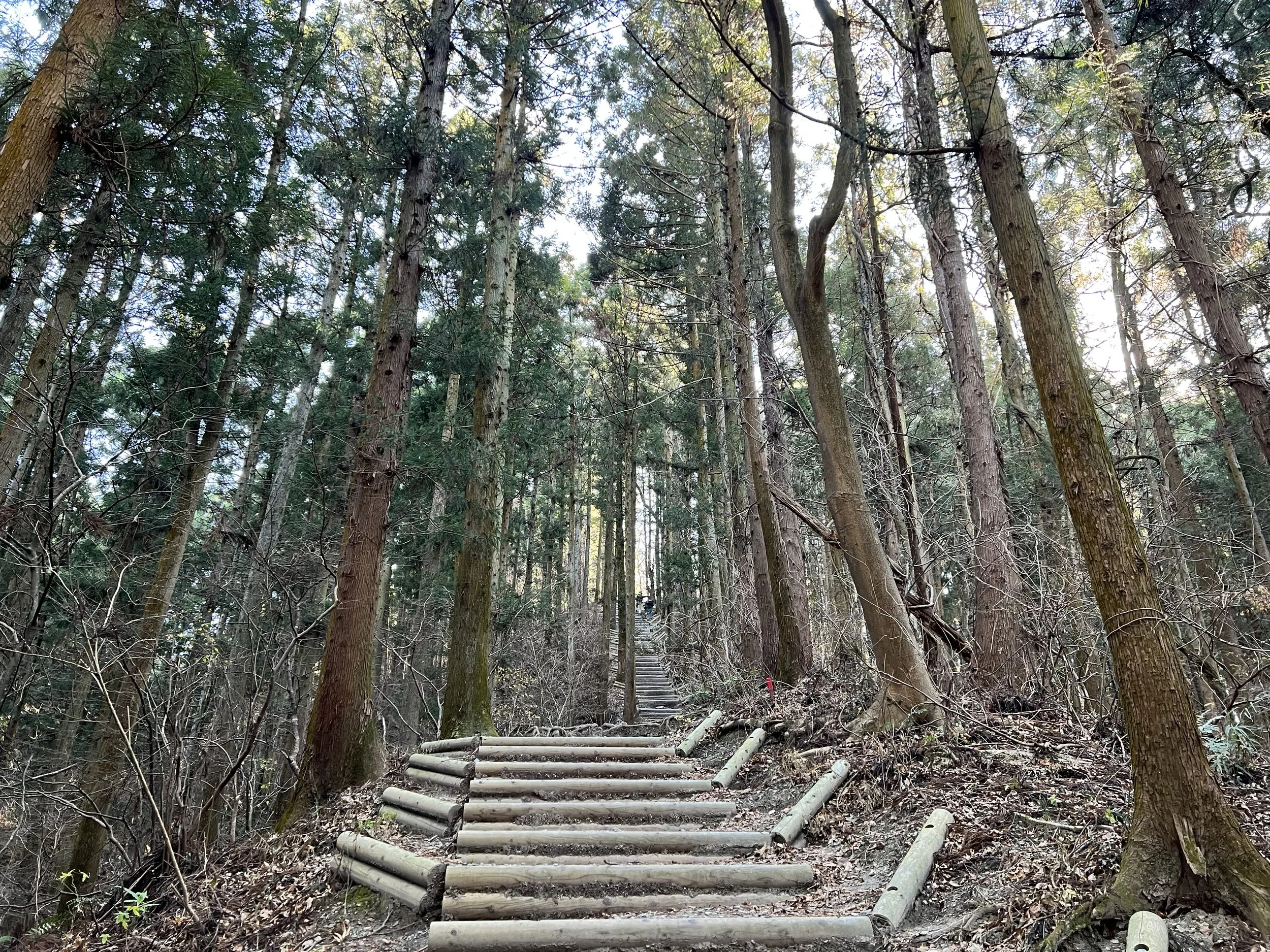 After my visit, I walked to Chichibu Station, not far away, and continued to Nagatoro Station. From there, I made my way toward Hodosan Shrine. The road leading up had a massive torii gate at the intersection. Hodosan Shrine sits at the foot of Mount Hodo and is known as a place to pray for protection against natural disasters. I didn’t stay long before heading toward the trailhead. There are two ways to reach the inner shrine at the summit—by cable car or hiking. Naturally, I chose to hike.
