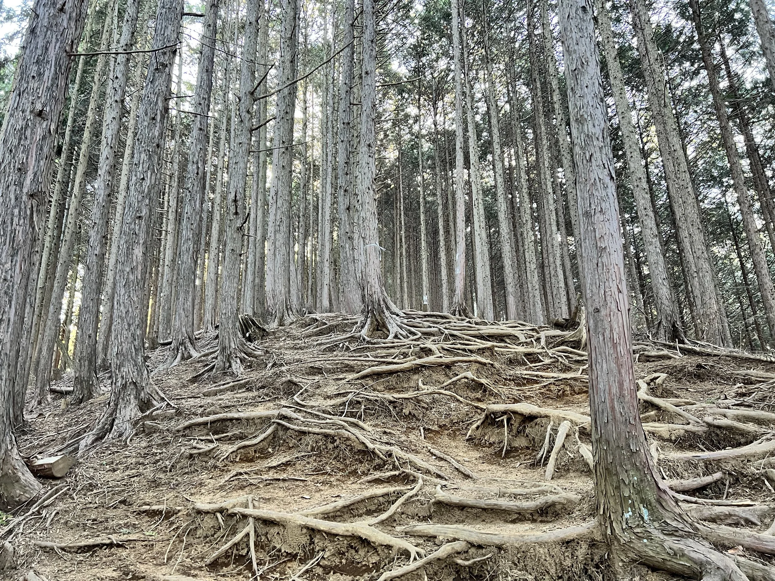 This descent is the most popular route for ascending, as it’s shorter and reaches the summit faster. The trail followed a newly developed path with exposed tree roots. By the time I reached the bus stop, I hadn’t realized I’d scratched my right calf—it was only when I wiped dirt off my legs that I noticed the cut. There is a soba noodle shop right next to the bus stop. I considered grabbing a bowl, but didn’t have enough time before the bus. The soba looked really good.