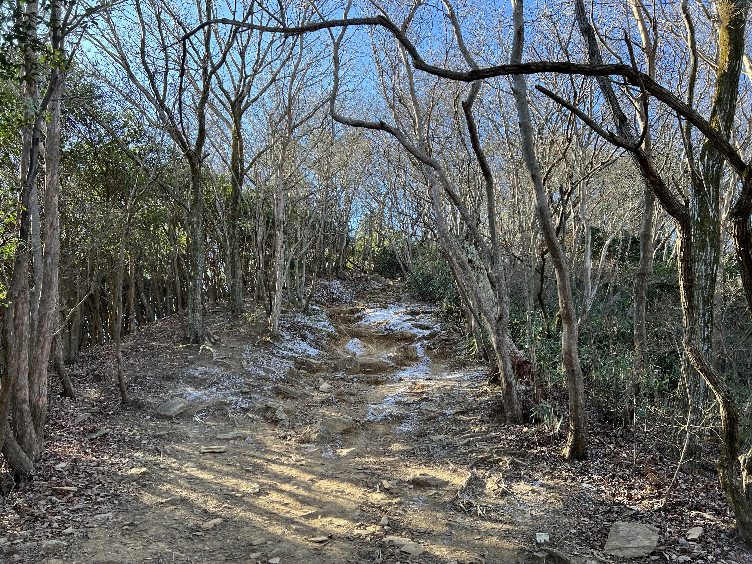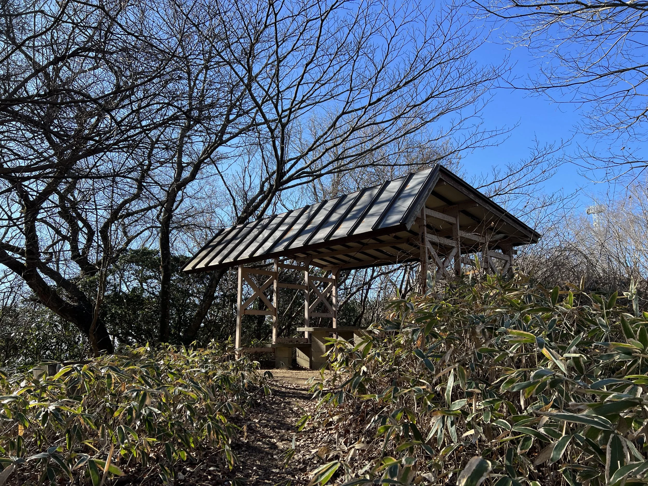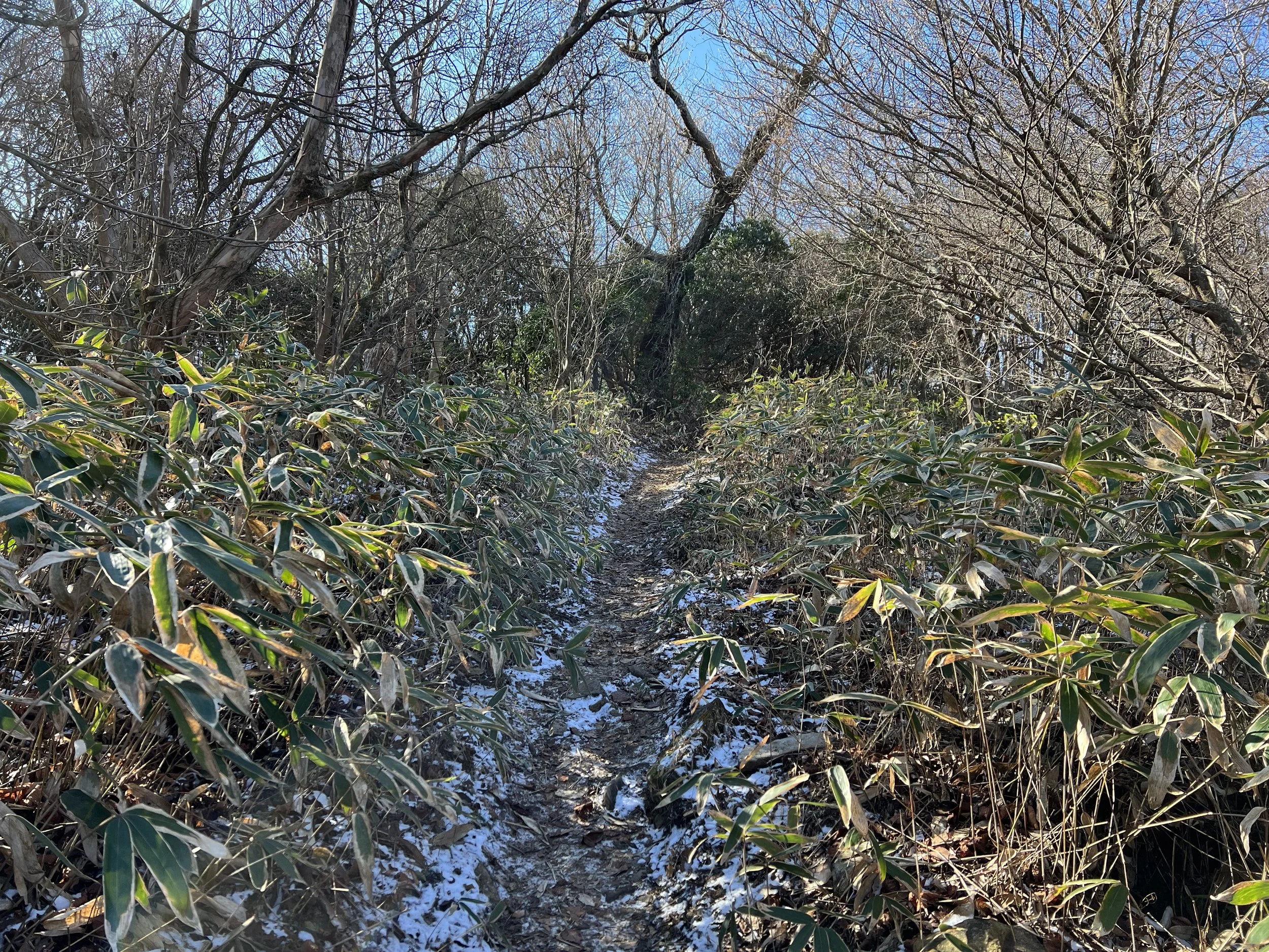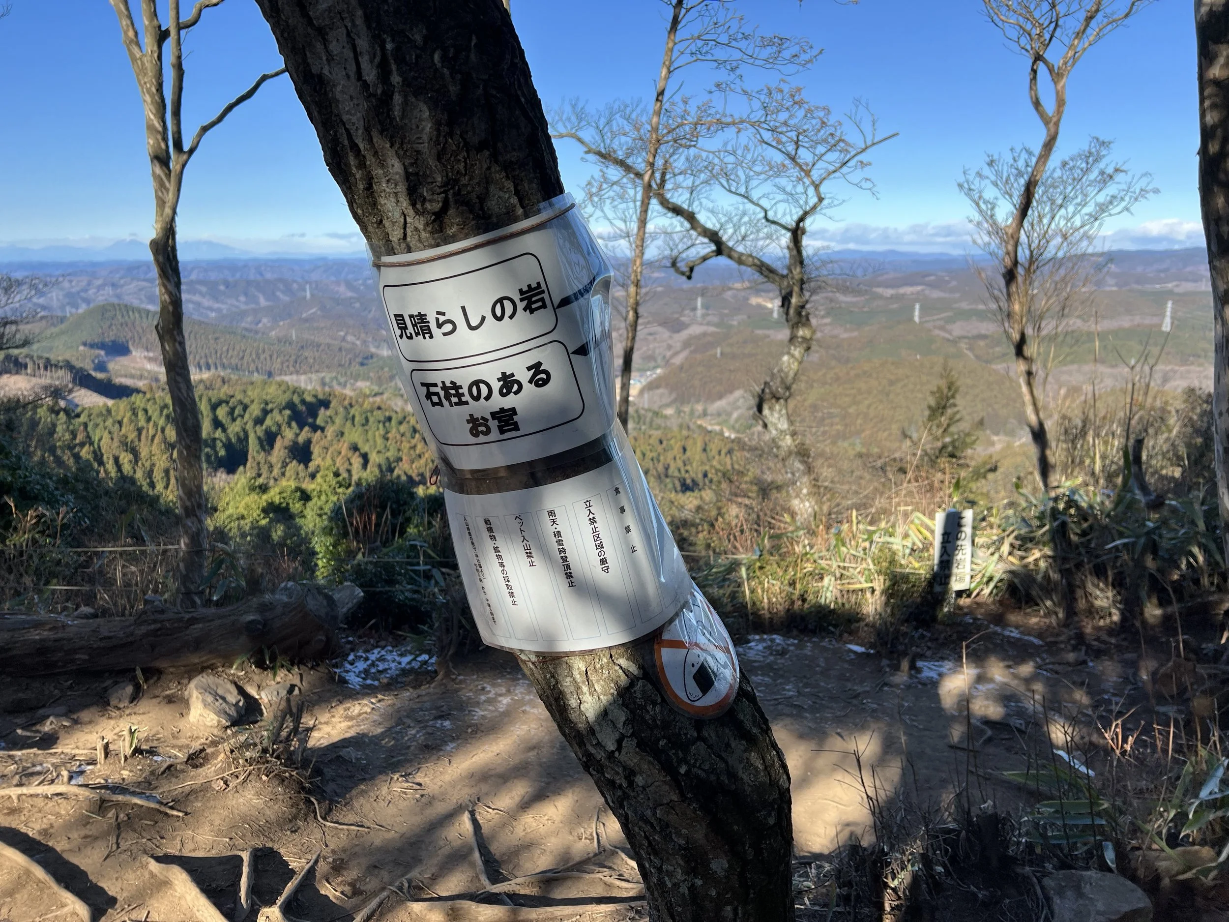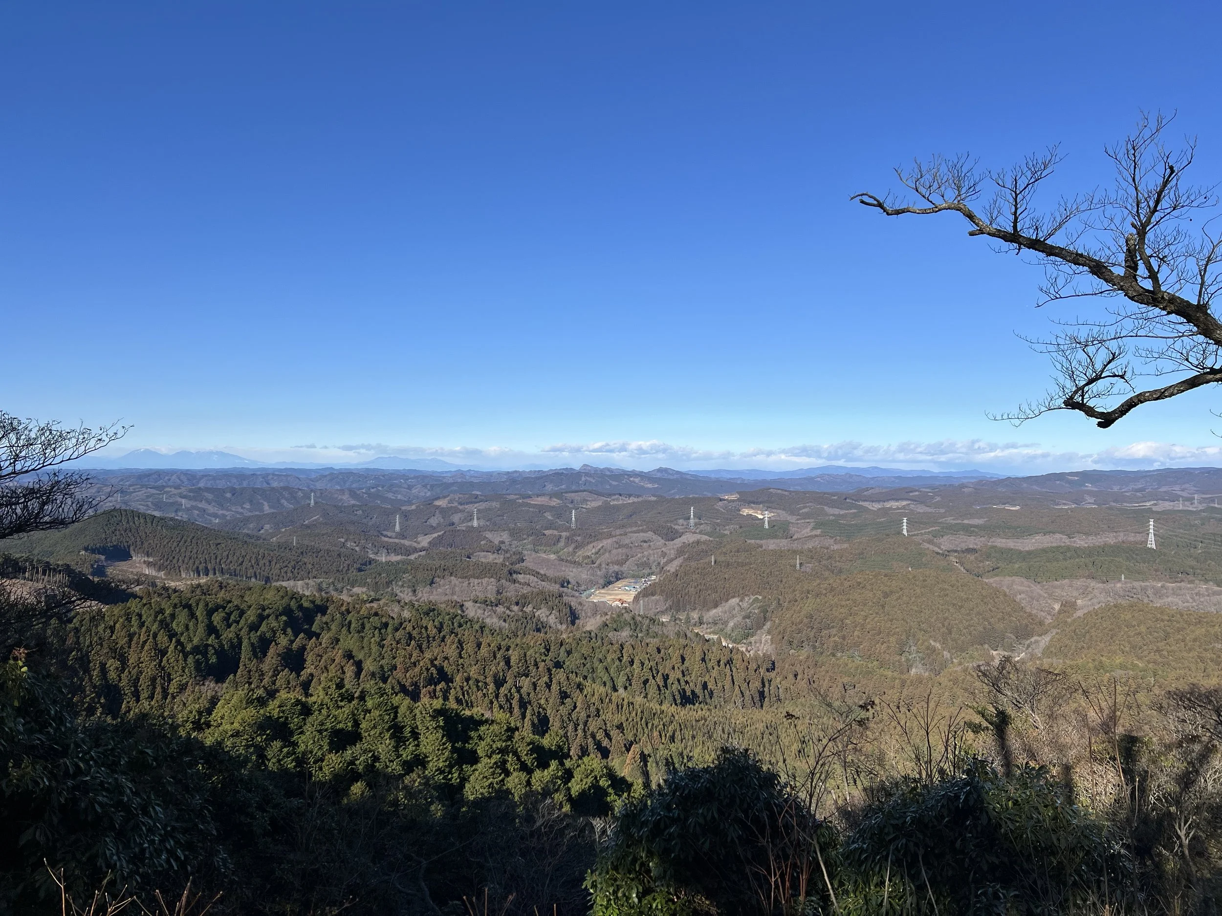 The trail was not difficult but had some icy patches. I reached the summit quickly and continued to Mt. Takasuzu (623 m), part of the Hitachi Alps. The distant mountain views were stunning. Although more trails connect deeper into the Alps, transport is limited, so I returned the same way.