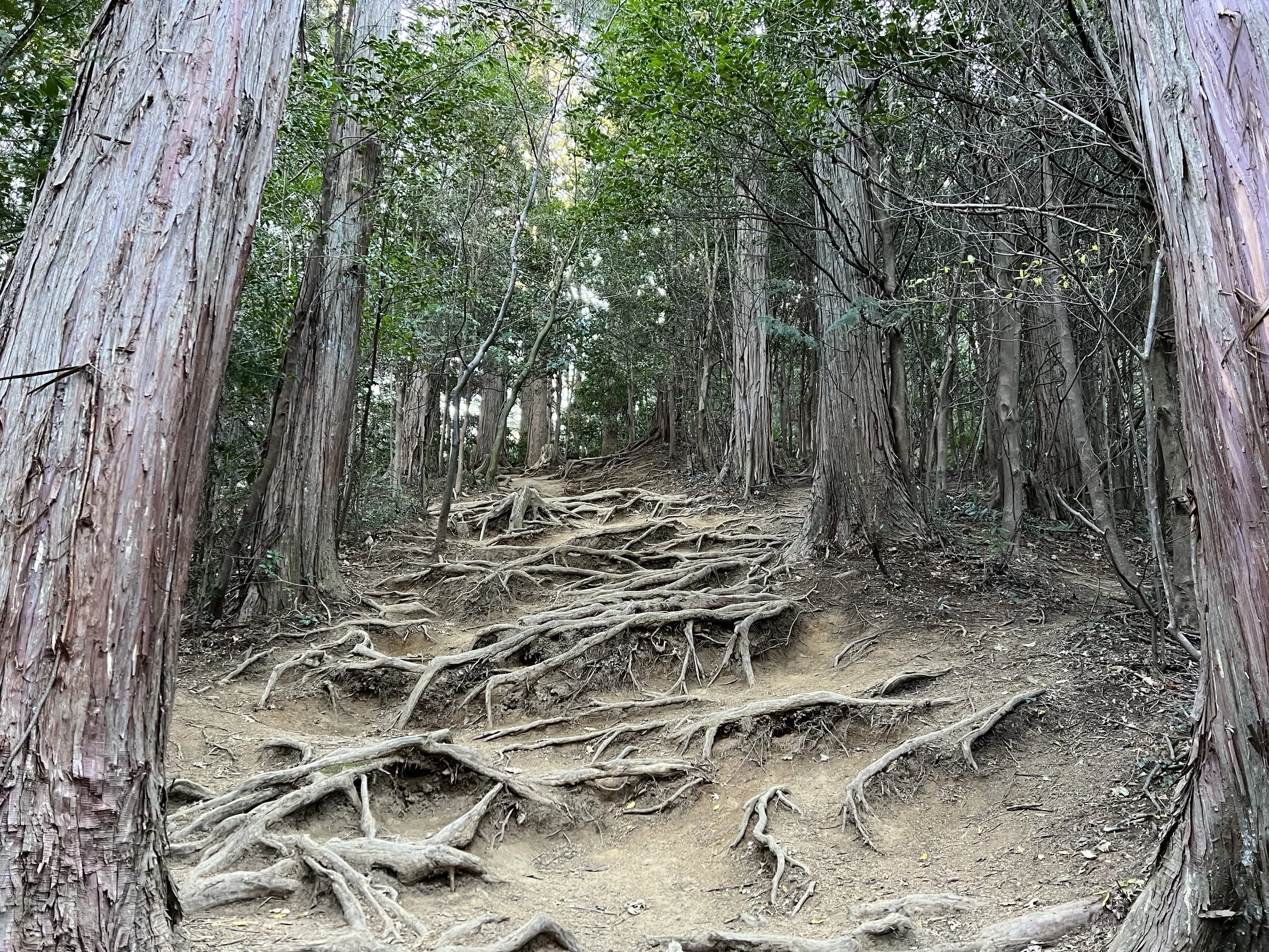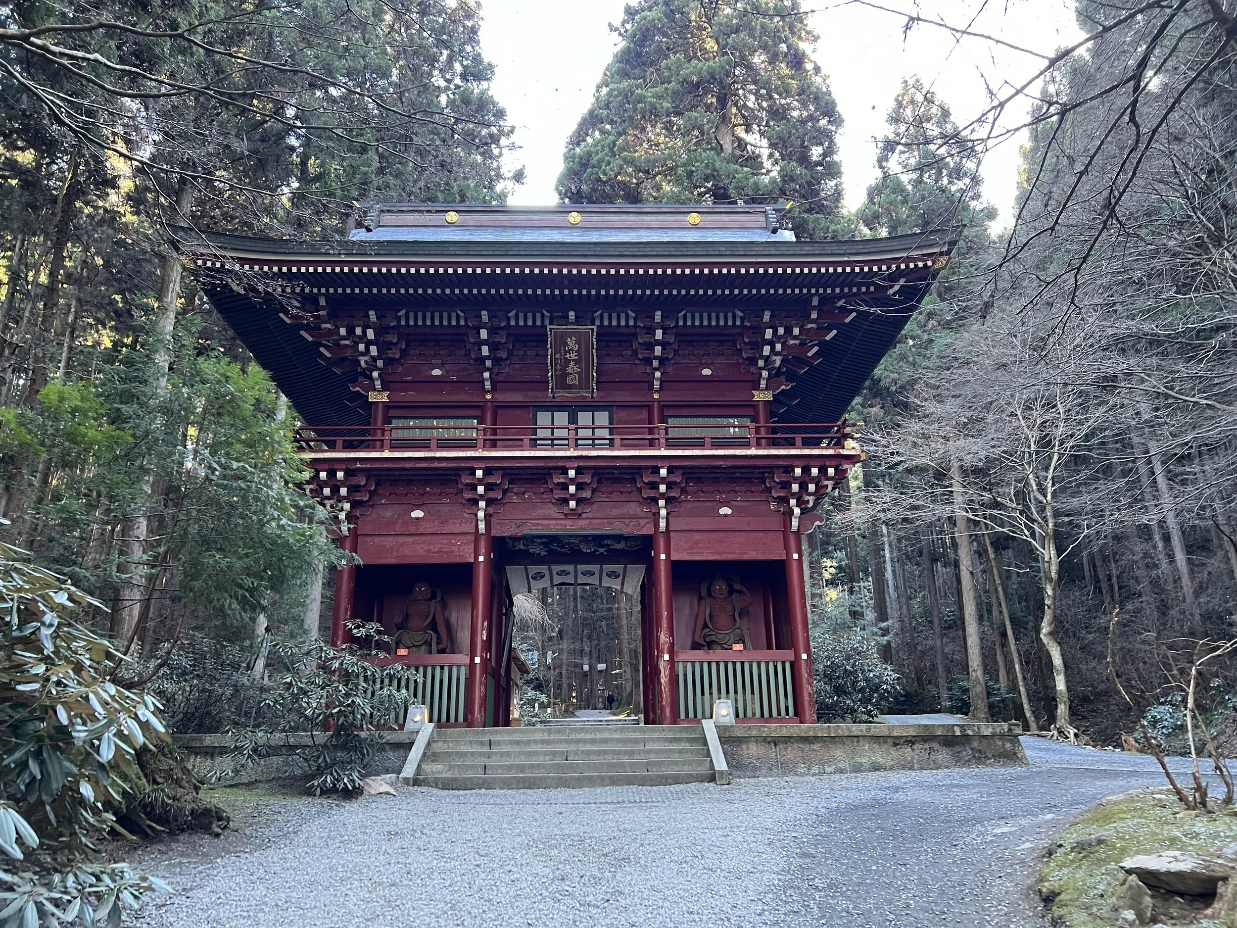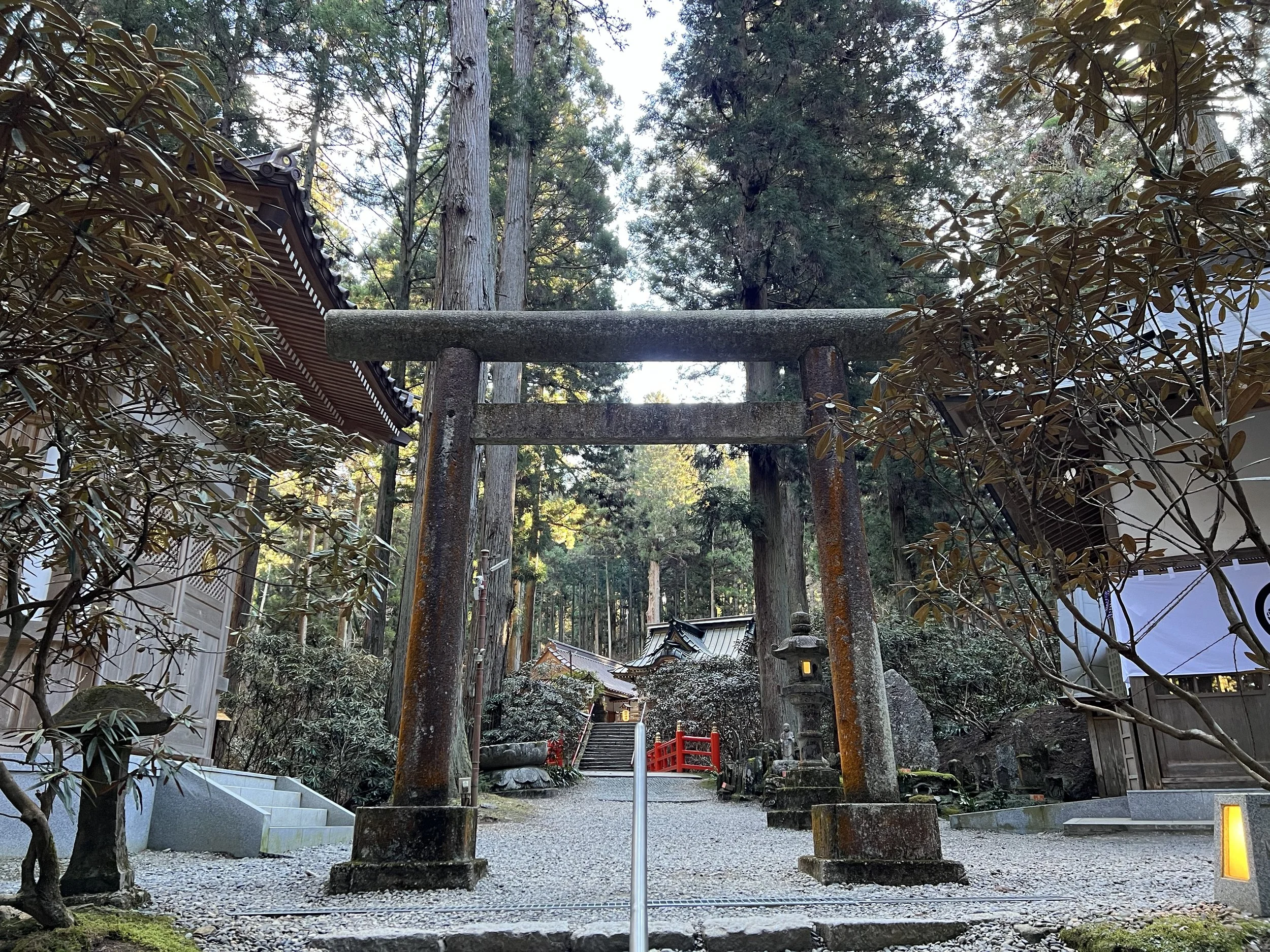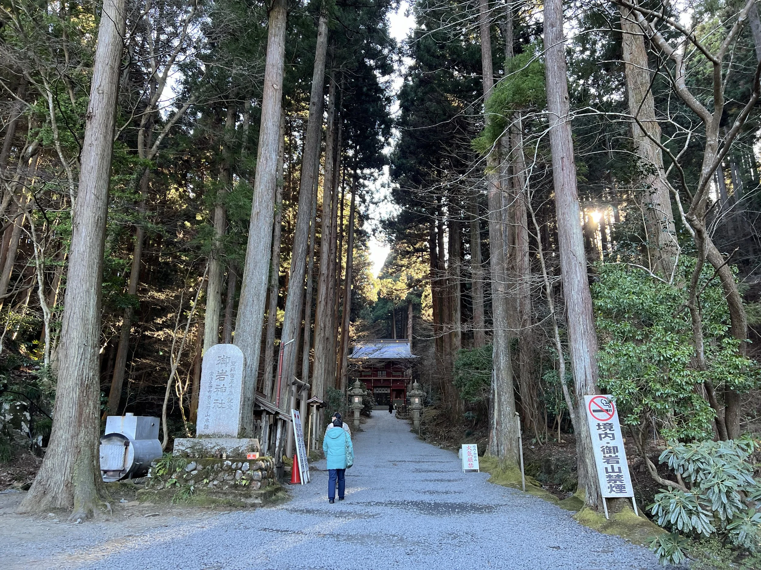The bus stops near the entrance, and the shrine is surrounded by giant trees. Because the sacred area extends to the summit of Mt. Oiwa, hikers must follow strict rules: no pets, sandals, babies, food, drink, smoking, offerings, and no climbing during rain or snow. Luckily, it was only cloudy during my visit.