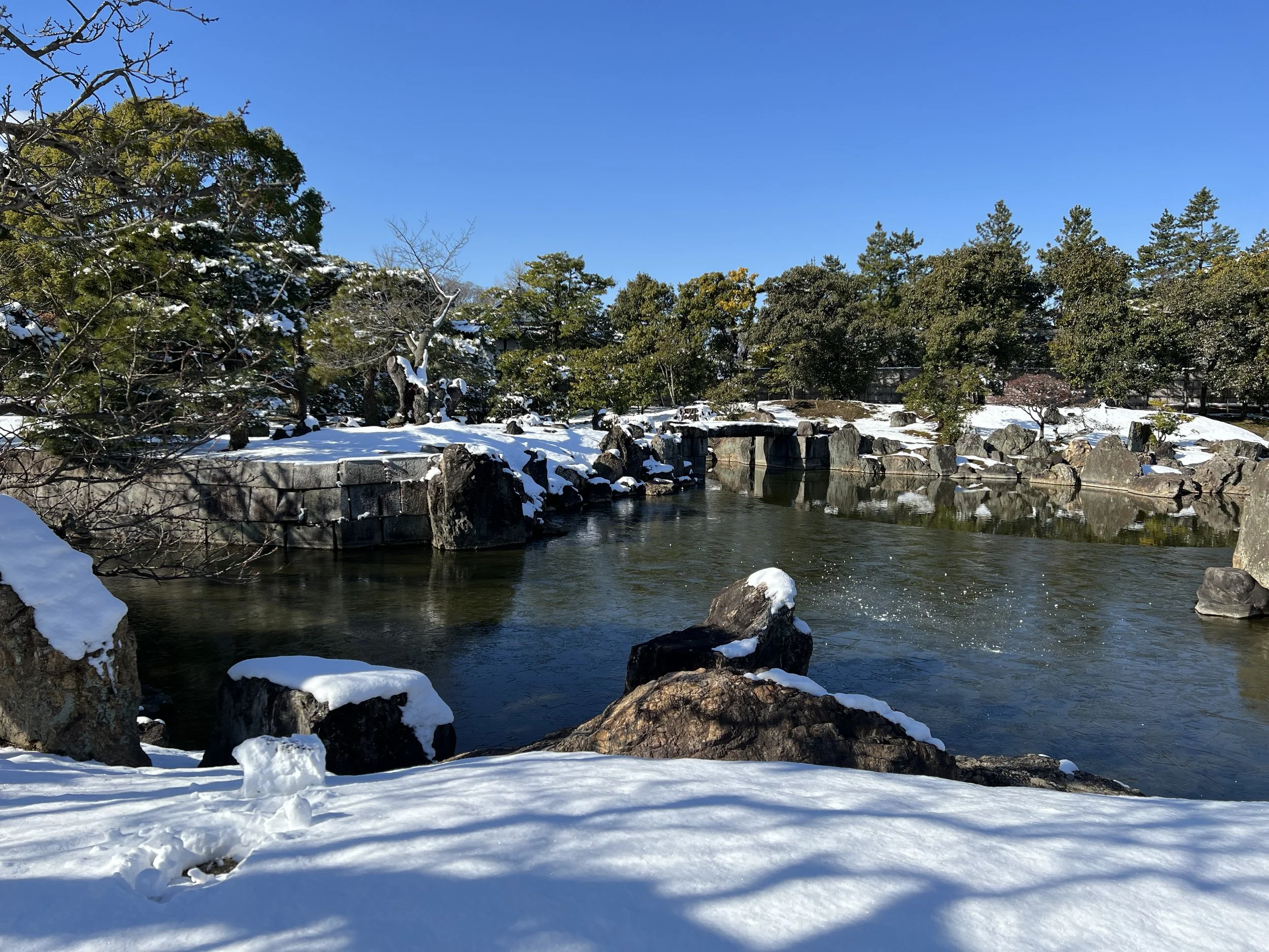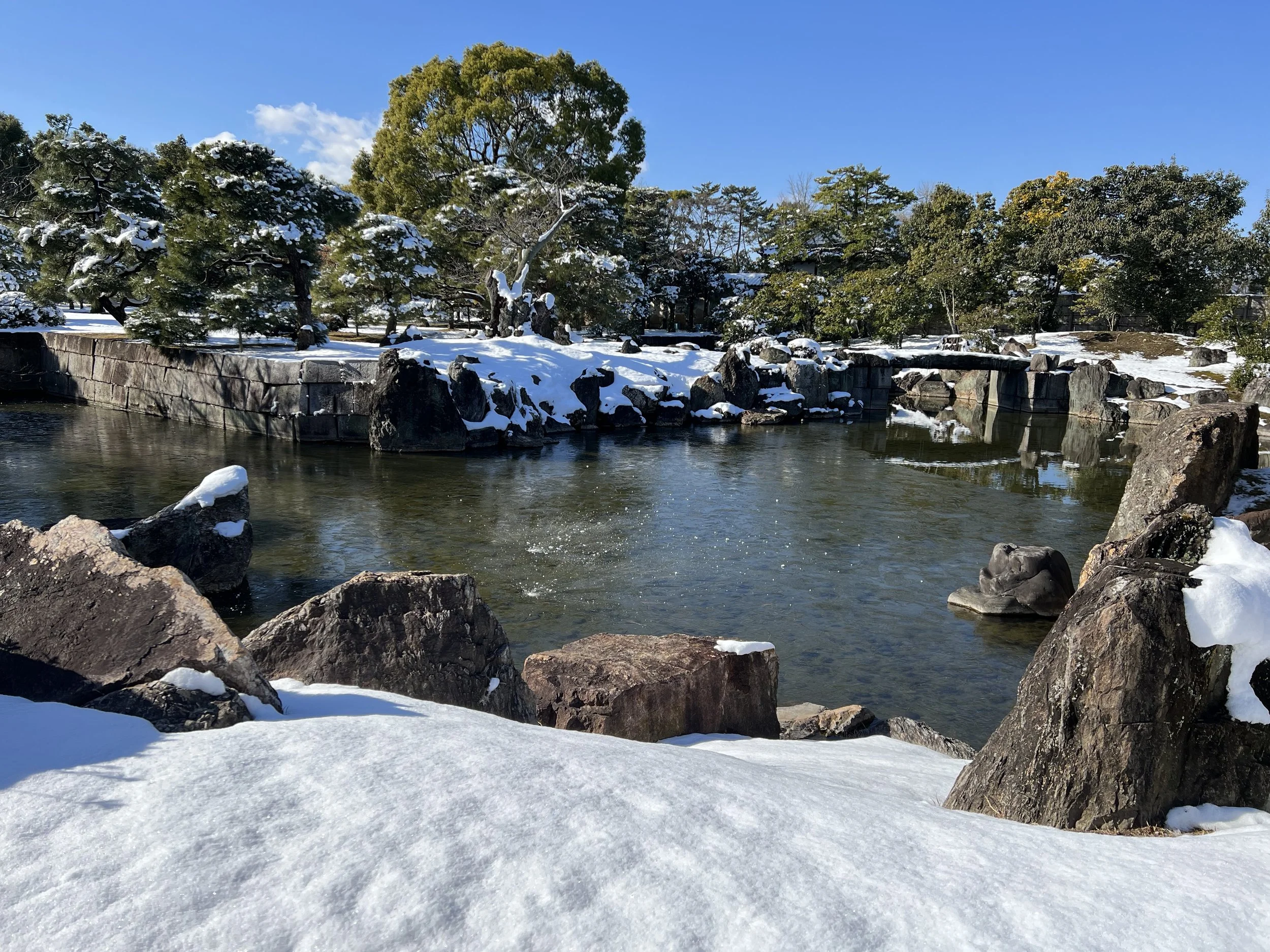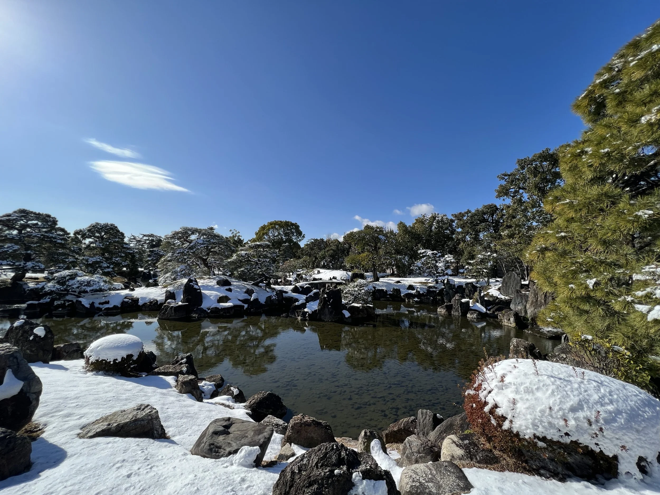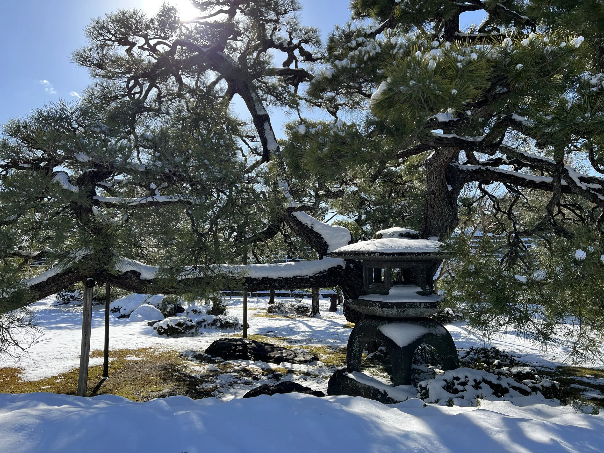 After exploring the palace interiors, I wandered through the surrounding grounds to take in the remaining buildings and gardens. The grounds are immaculately maintained, with carefully placed pine trees, cherry trees, and even a plum orchard. I also made my way toward the Honmaru area within the inner moat. Although it wasn’t open to the public, viewing it from the outside was still worthwhile. Much of the garden was blanketed in snow, and I watched workers carefully tying straw supports around the pine trees — a traditional winter practice used to protect the branches from snow damage and pests.