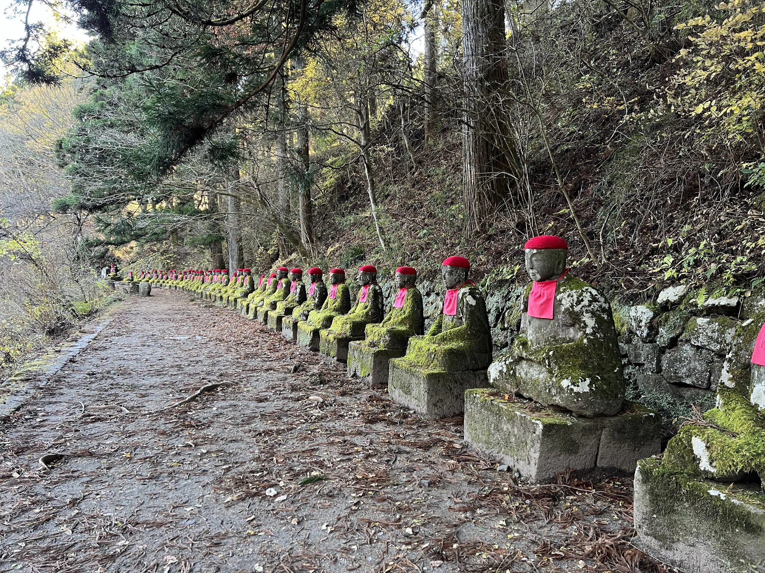 Craving a quieter setting, I walked about 1.4 kilometres to Kanmangafuchi Abyss. This peaceful riverside path, formed by an eruption of Mount Nantai, is lined with around 70 Jizo stone statues facing the Daiya River. The forested canyon felt worlds away from the busy shrine complex. The walk isn’t long, but it’s incredibly atmospheric, especially with the sound of the river running alongside.