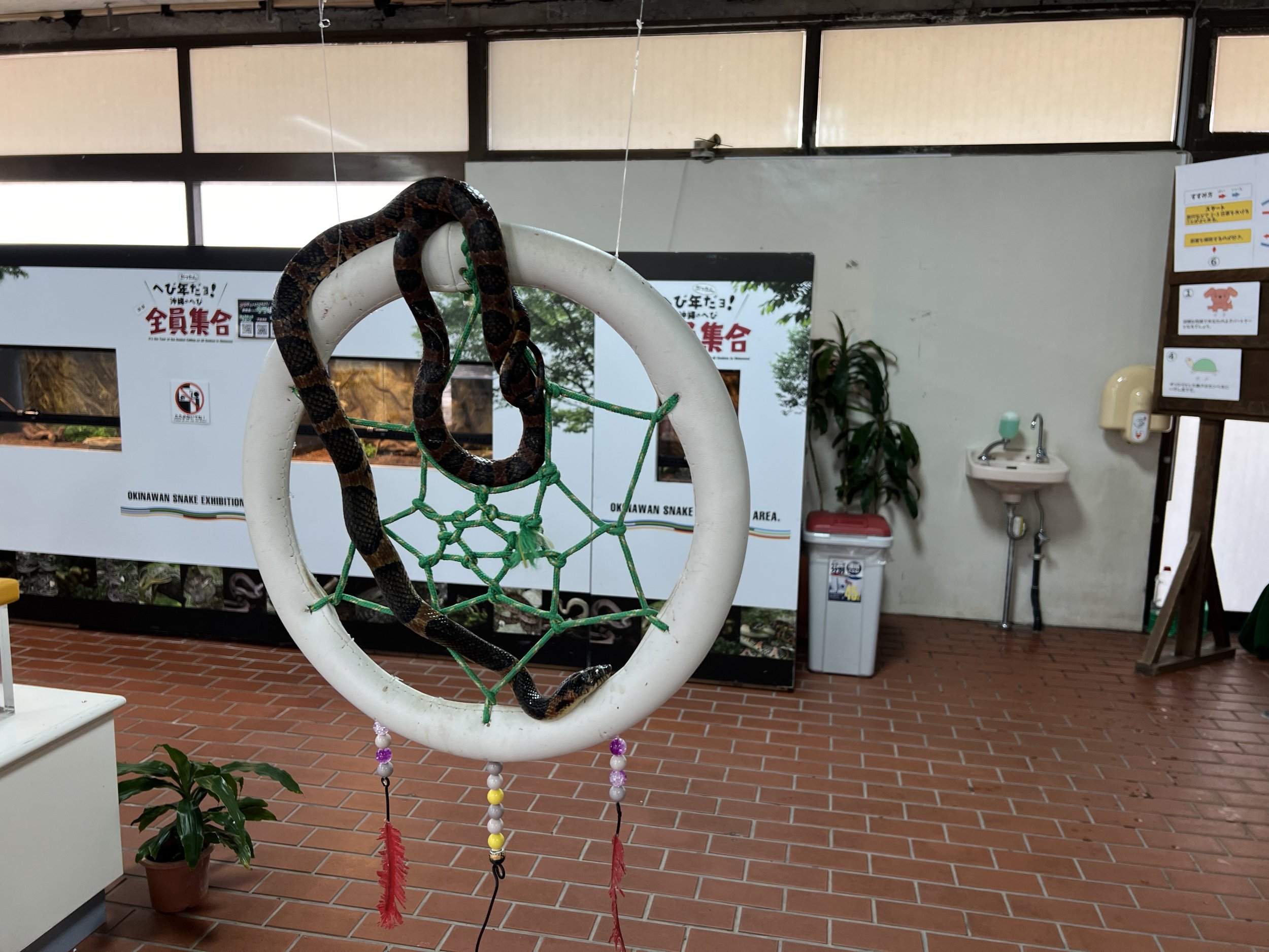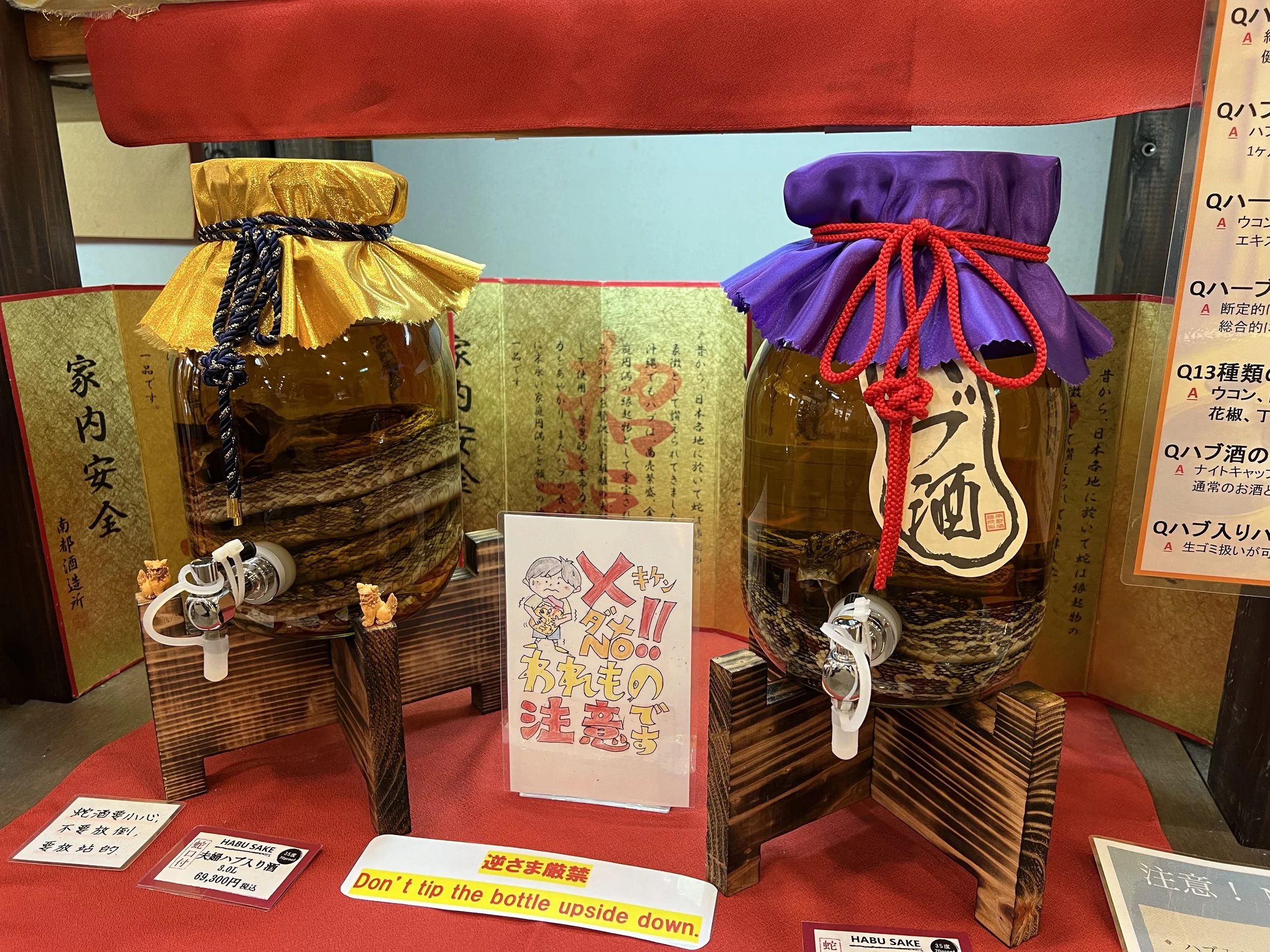 Continuing through the village, I arrived at Habu Park — which I would strongly caution anyone who is afraid of snakes about visiting. The habu is a venomous snake native to Okinawa, and I had already seen warning signs about them on hiking trails across the island. The small snake museum features live displays, including small snakes openly exhibited. There were also bats and tortoises. In the adjacent souvenir shop, they sell Habushu — an awamori-based liqueur infused with a preserved habu snake, along with herbs and honey. It’s considered a traditional Okinawan tonic believed to have health benefits. The bottles were pricey, and honestly, I couldn’t stop wondering how they managed to coil the snake so neatly inside.