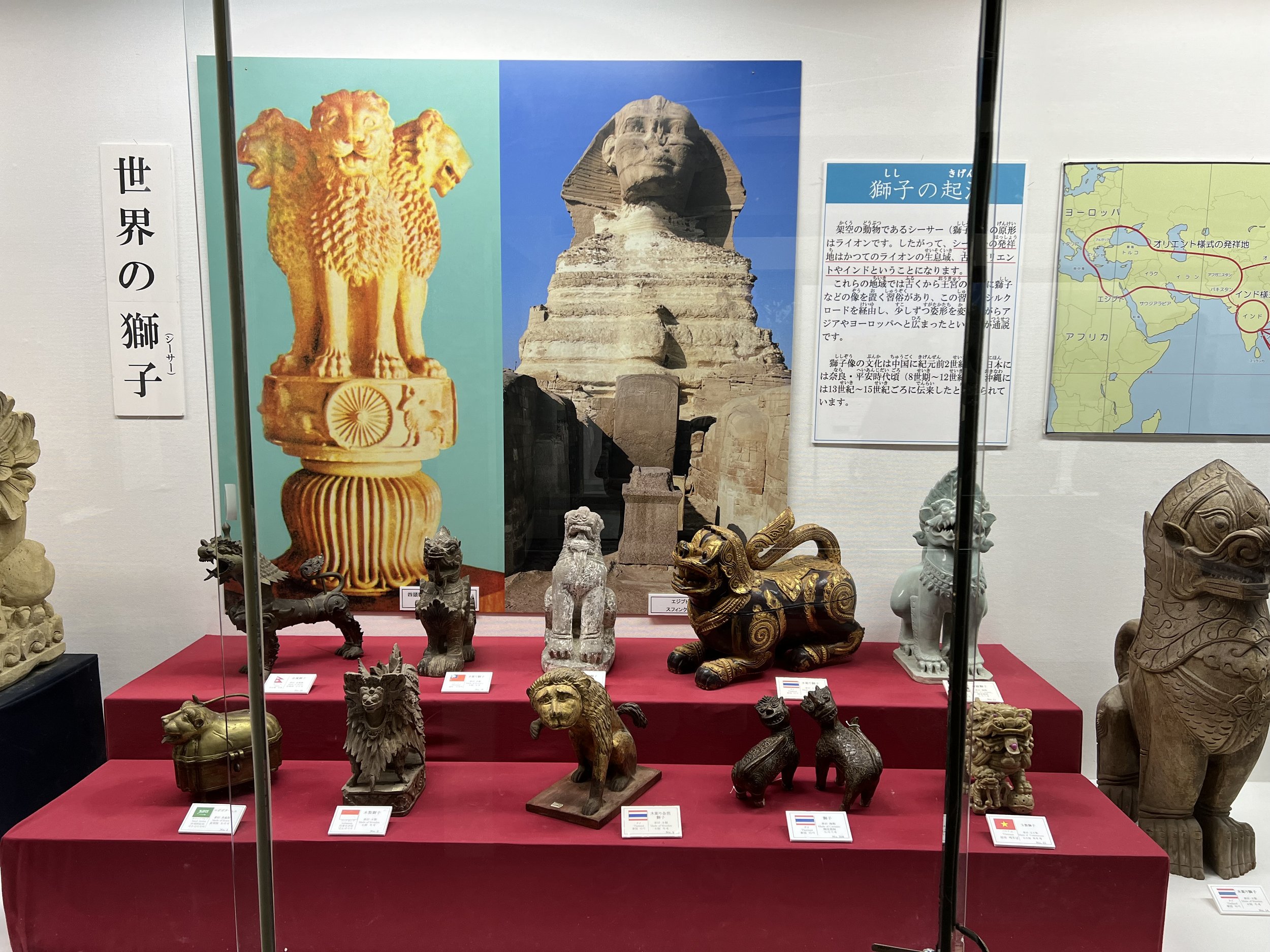 In another museum section, I learned more about the lion-dog statues seen throughout Okinawa — known as shisa — and their cultural connections to guardian figures found in China, Korea, and even Egypt.