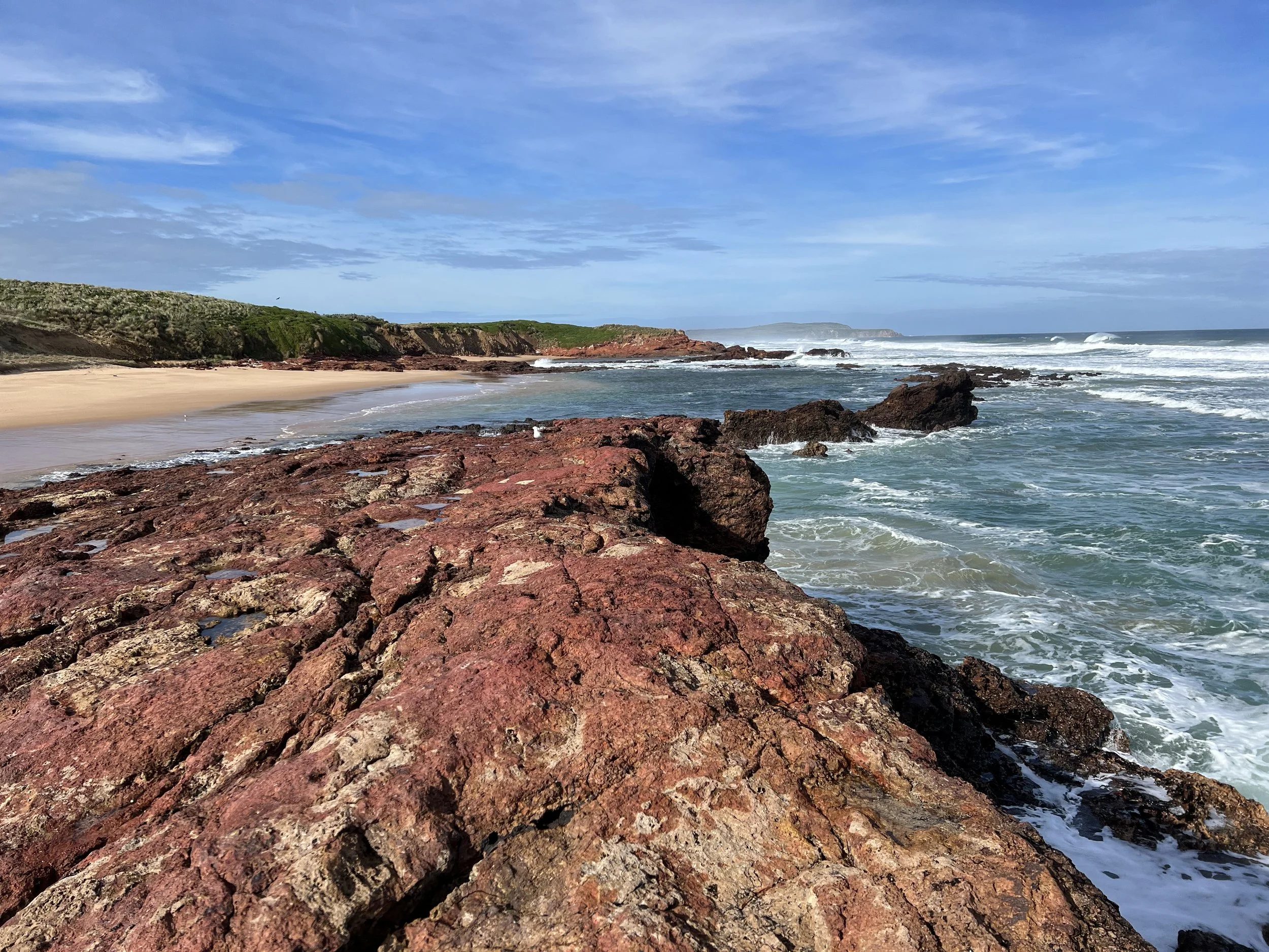 My friend picked me up early from my hotel, and the drive was unremarkable until we approached the bay, where the scenery became far more captivating. Our first stop was a café in San Remo, just before the bridge onto Phillip Island. After a hearty breakfast to fuel the day, we headed to our first major stop—Cape Woolamai. From the parking lot, we walked along the beach before joining the trail that winds along rugged cliffs. This area boasts dramatic rock formations, sweeping ocean views, and a chance to spot wildlife. We were fortunate to see a wallaby along the loop, which spans roughly seven kilometres. The walk was invigorating, and the natural beauty of the coastline was breathtaking.