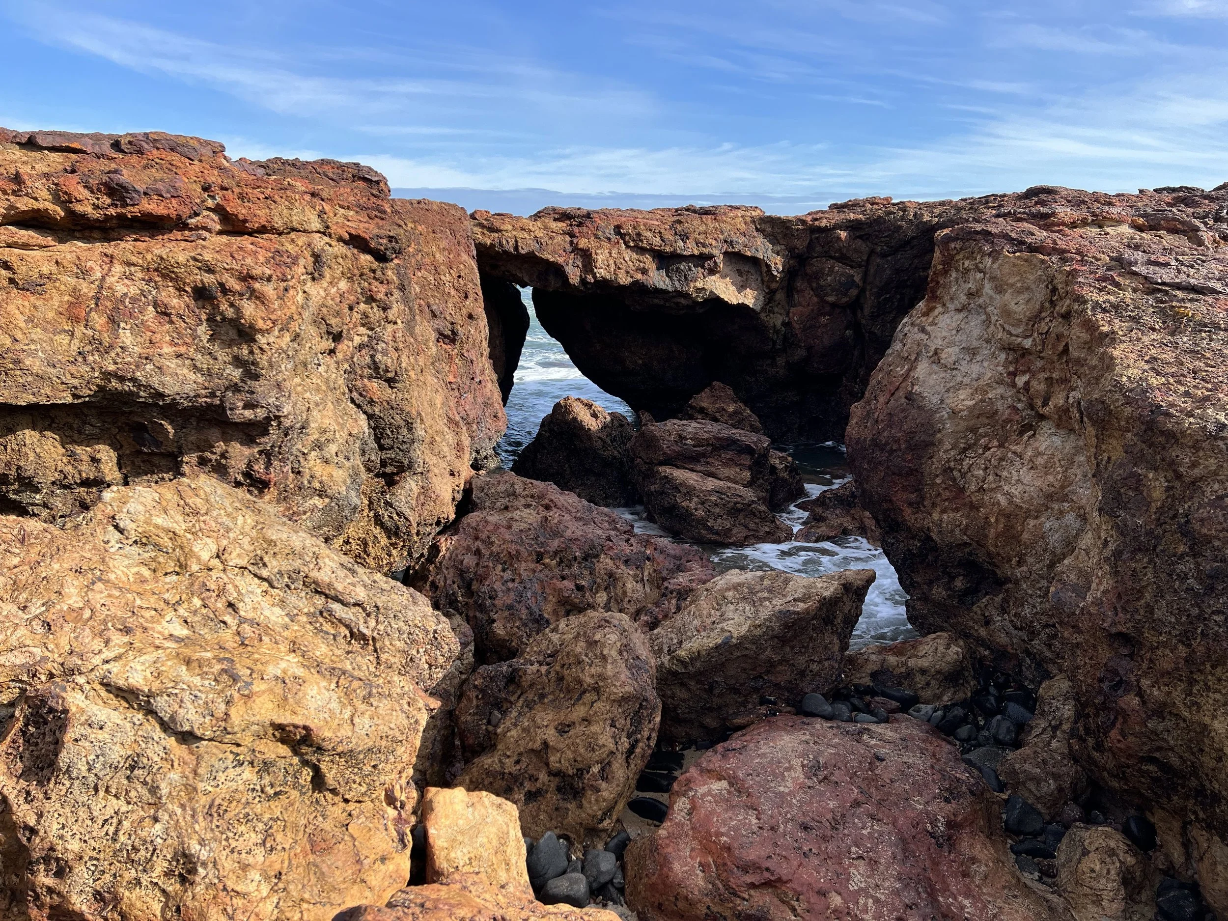 After a short lunch, we explored the Forrest Caves, that are accessible at low tide. The sea caves, carved by natural erosion, offered fantastic photo opportunities and a chance to experience the rugged coastline firsthand. Caution was required, as waves and strong rips made some areas hazardous, but the dramatic scenery was well worth the careful exploration.