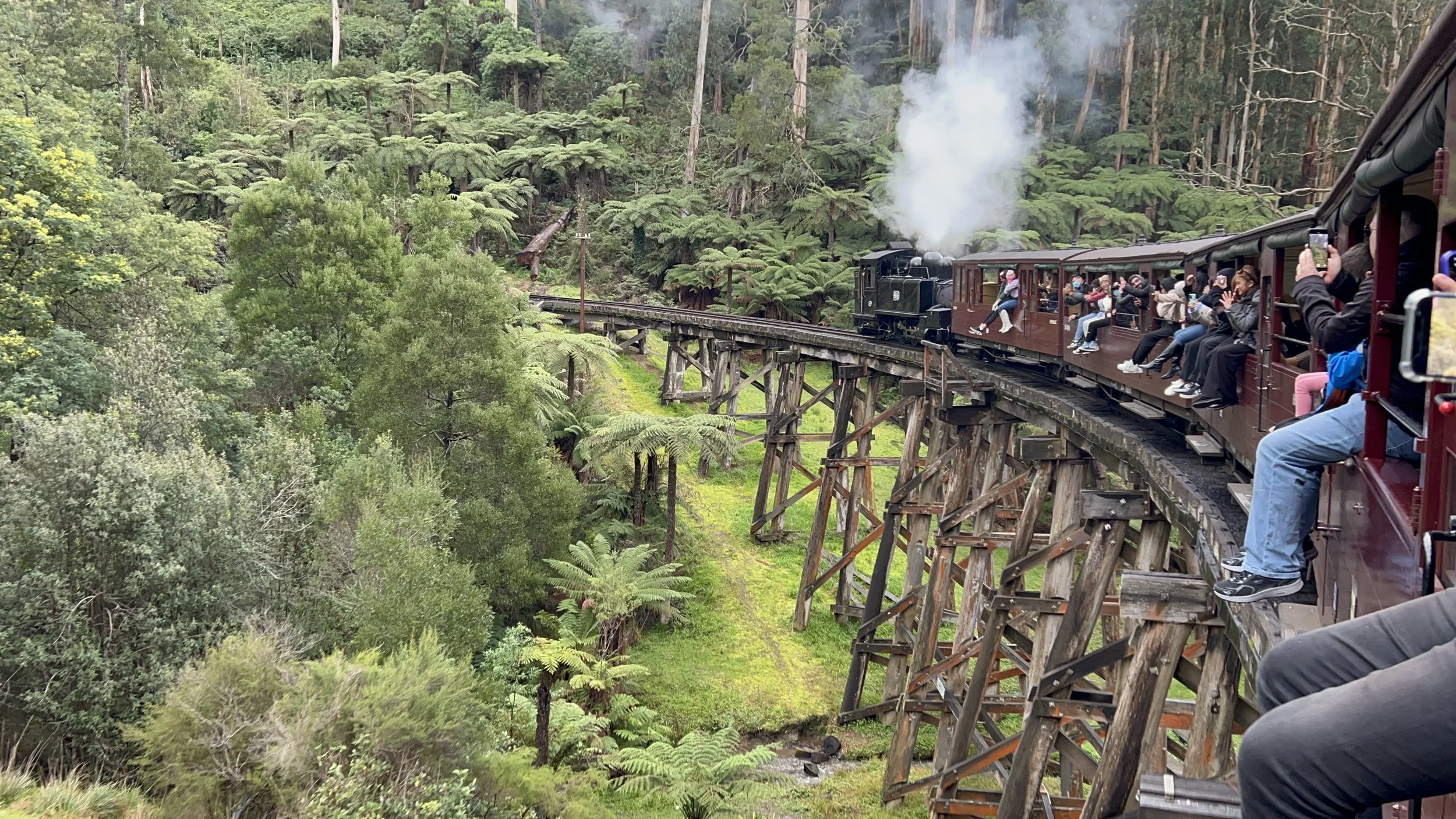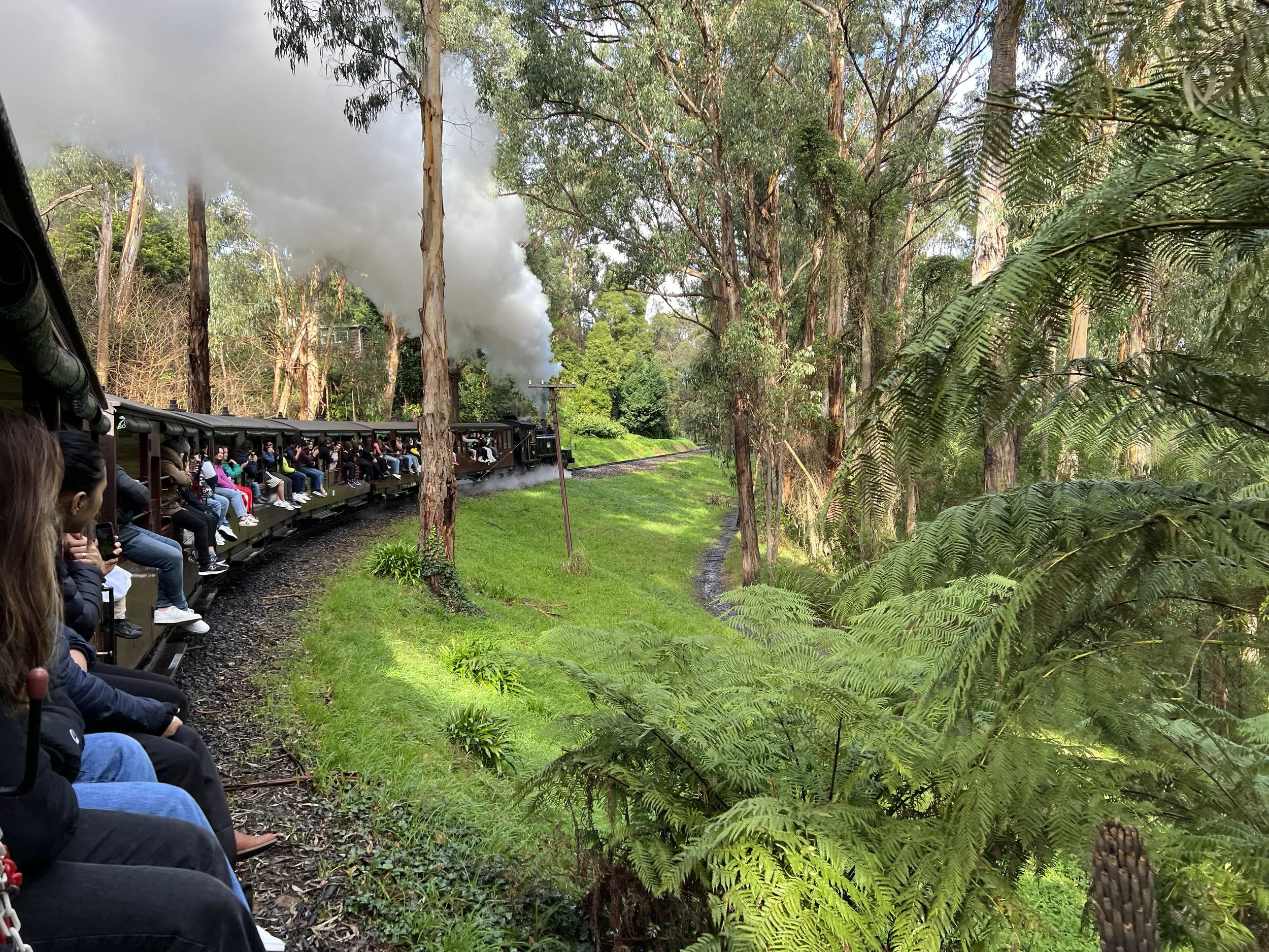 We eventually returned to the platform for our train back to Belgrave, accompanied by a few colourful macaws perched around the station. As we waited, my friend handed me a small train whistle he had bought—a sweet souvenir that instantly made me grin. Once the train started moving, we matched its whistle with ours, laughing like children. I also learned that the railway hosts the annual Puffing Billy Running Festival, where runners race the train itself—a quirky and challenging tradition that blends athleticism with heritage rail culture.