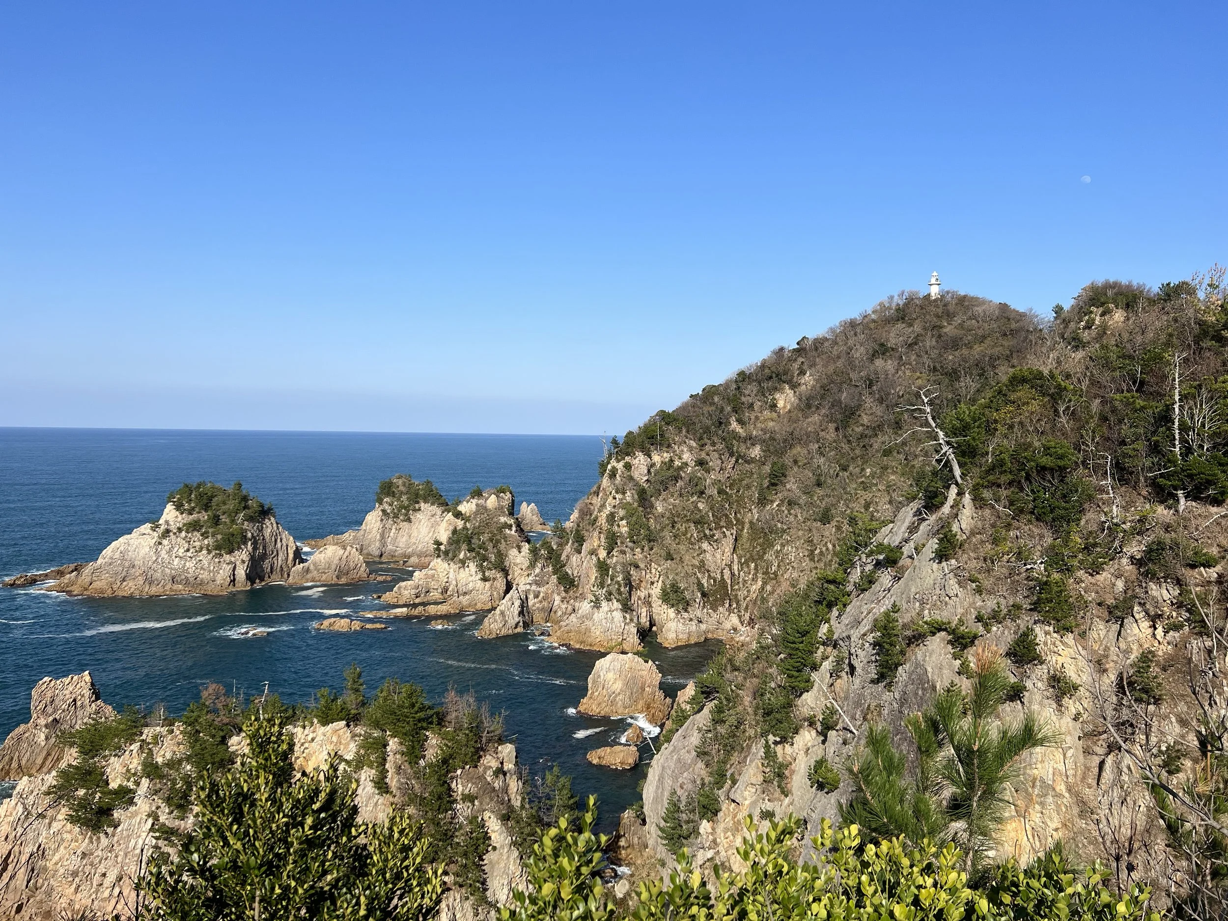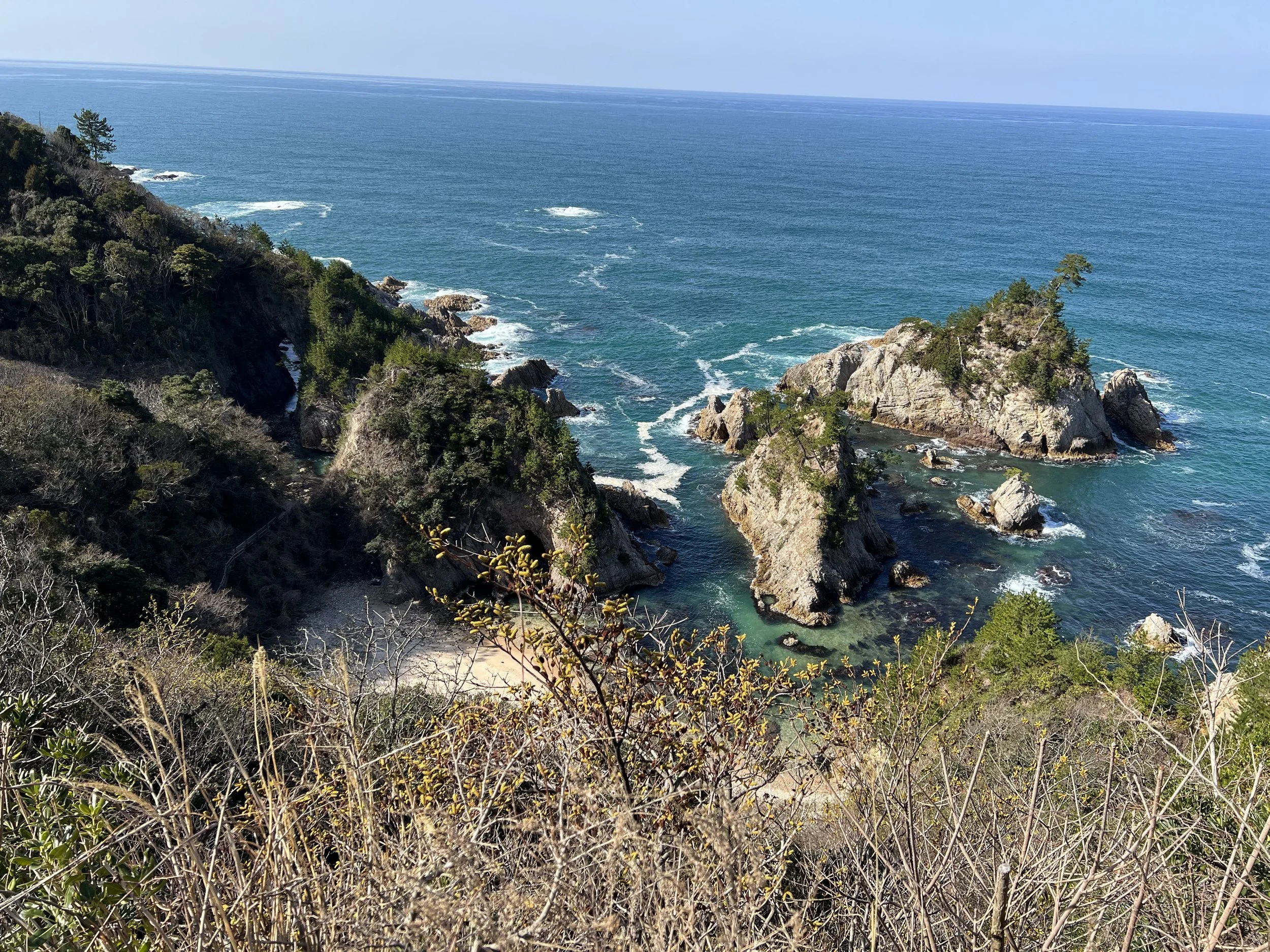 Ajiro Observation Deck was easily the most scenic viewpoint along this section of the trail. The turquoise-coloured ocean, unique rock formations, and surrounding pine trees made this spot especially memorable. There’s a local story tied to this area: it’s said that the Tottori lord Ikeda once sailed through here and was so taken by the pine trees that he offered a reward to anyone who could bring similar ones to his garden.