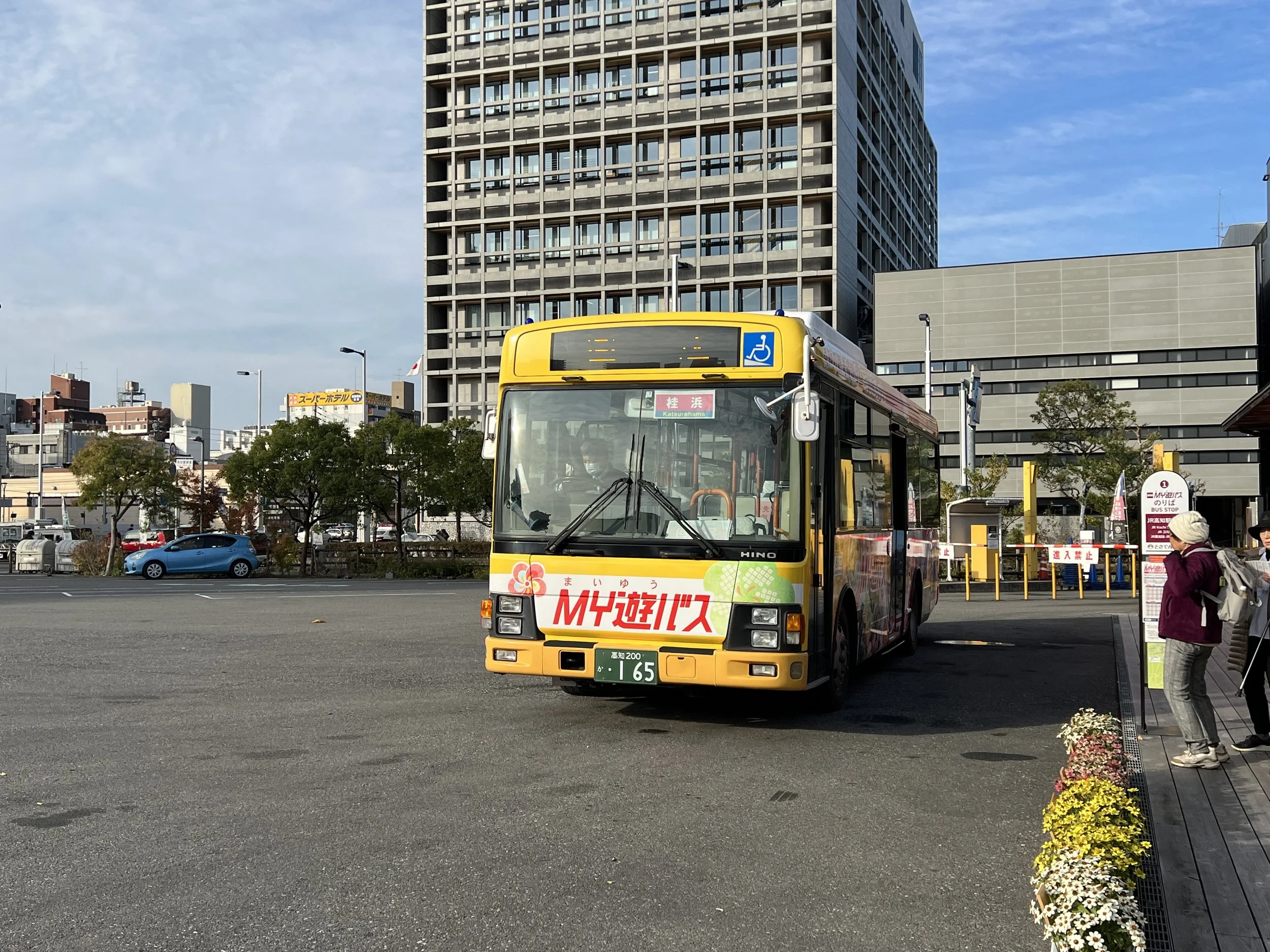 Although I could have walked this section of the pilgrimage route, I decided to shorten the distance and use the bus instead. I stopped by the Kochi Station Information Centre first to pick up a one-day pass for the My Yu Bus, the Kochi City tourist bus that covers major attractions including the temples and Katsurahama. The pass was great value compared to regular fares. The bus was quite full, but I was lucky to board early enough to get a seat.