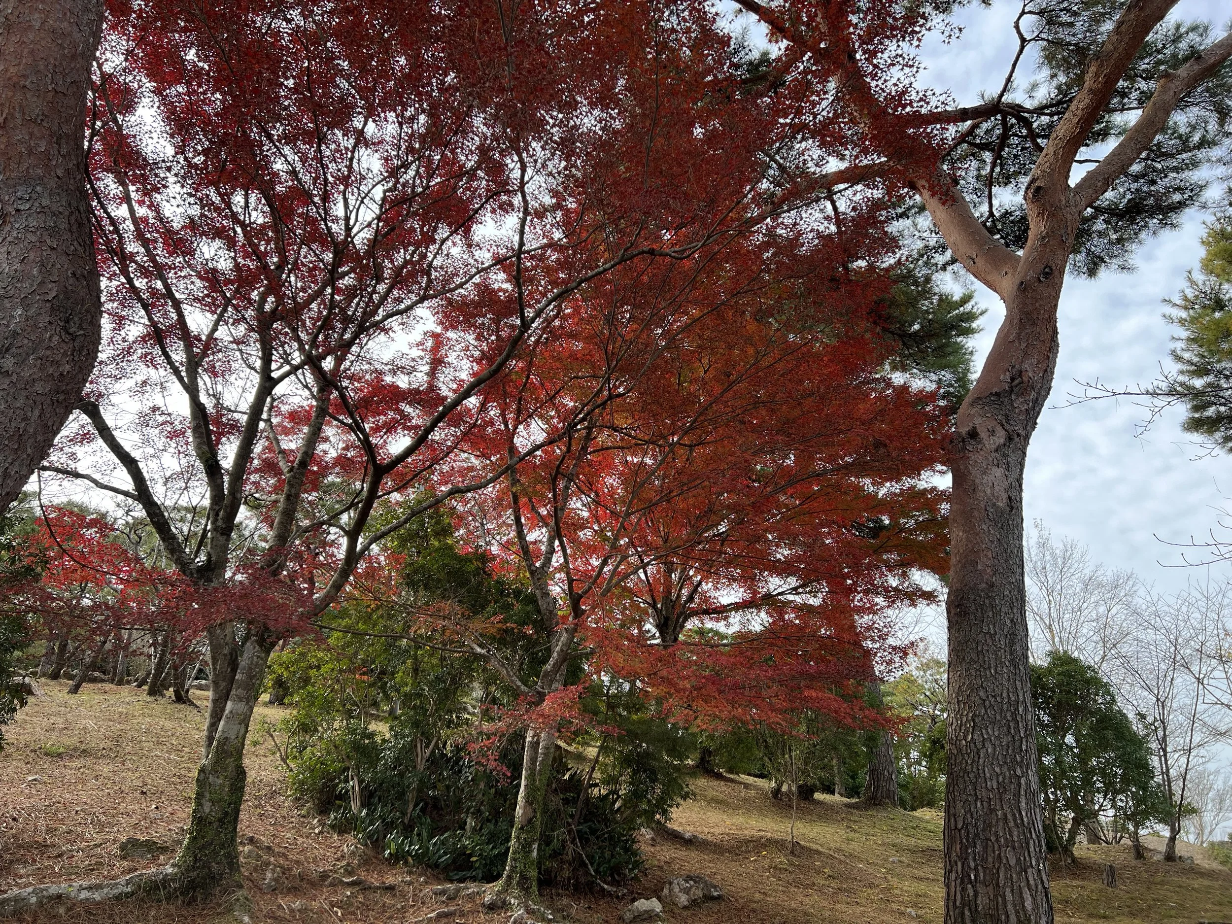 Rather than getting off at the Chikurinji stop, I got off at Godaisan Observatory, just a few minutes’ walk away. Godaisan Park offers sweeping panoramic views over Kochi City, and the loop trail through the park was calm and scenic, with some autumn colours still lingering. After taking in the views and enjoying the quiet atmosphere, I made my way toward Chikurinji Temple through the west gate.