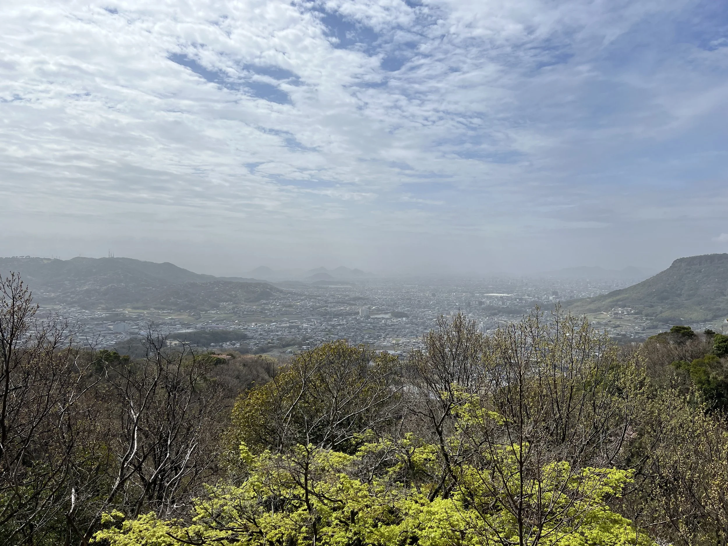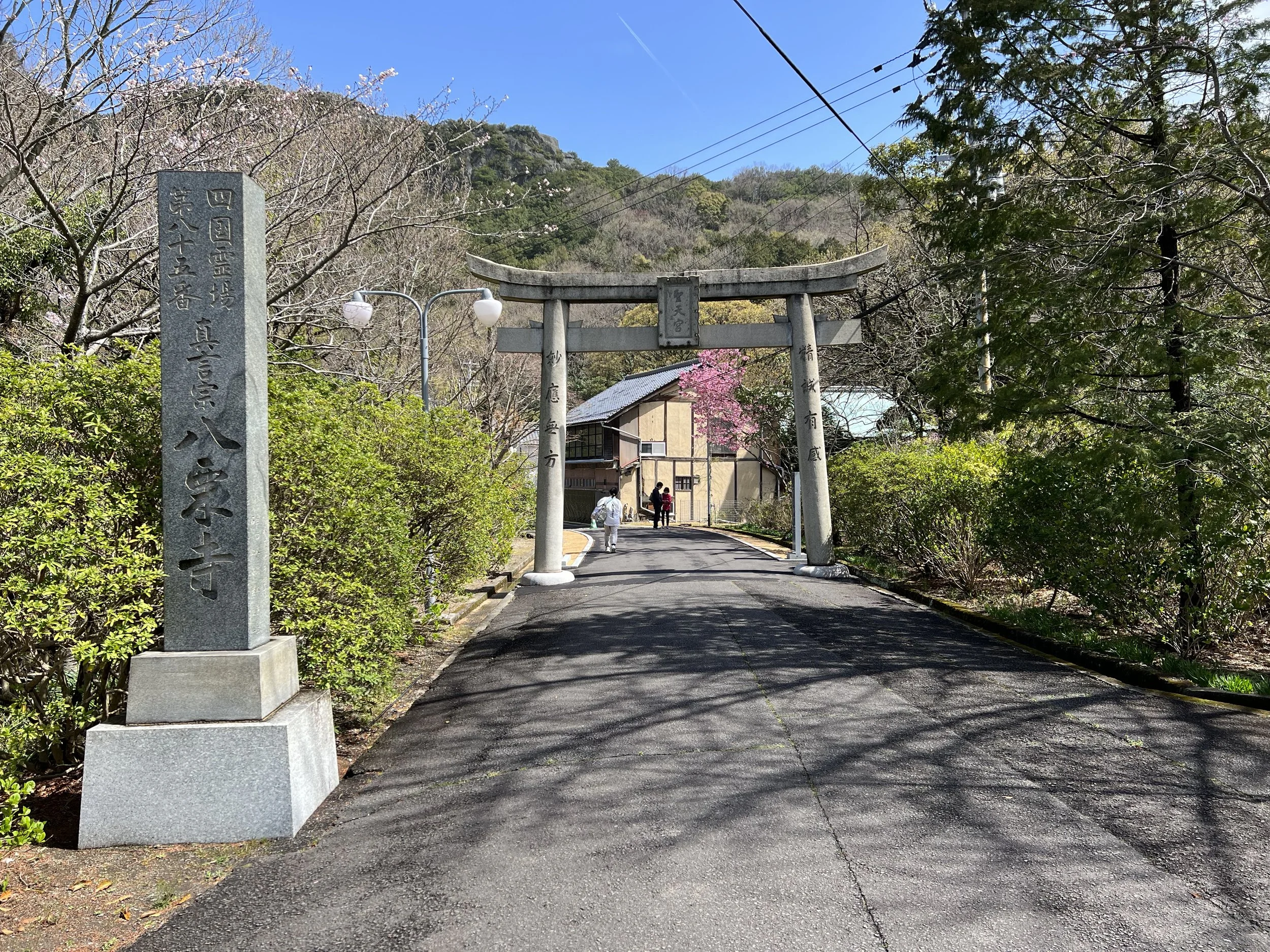The route winds steadily up the mountain along a paved road, wide enough for a small car. While there’s an option to take the Yakuri Cable Car for those who prefer to save some effort, I chose to hike the full distance instead. It was a pleasant climb, with views gradually opening over Takamatsu City and the shimmering Seto Inland Sea below.