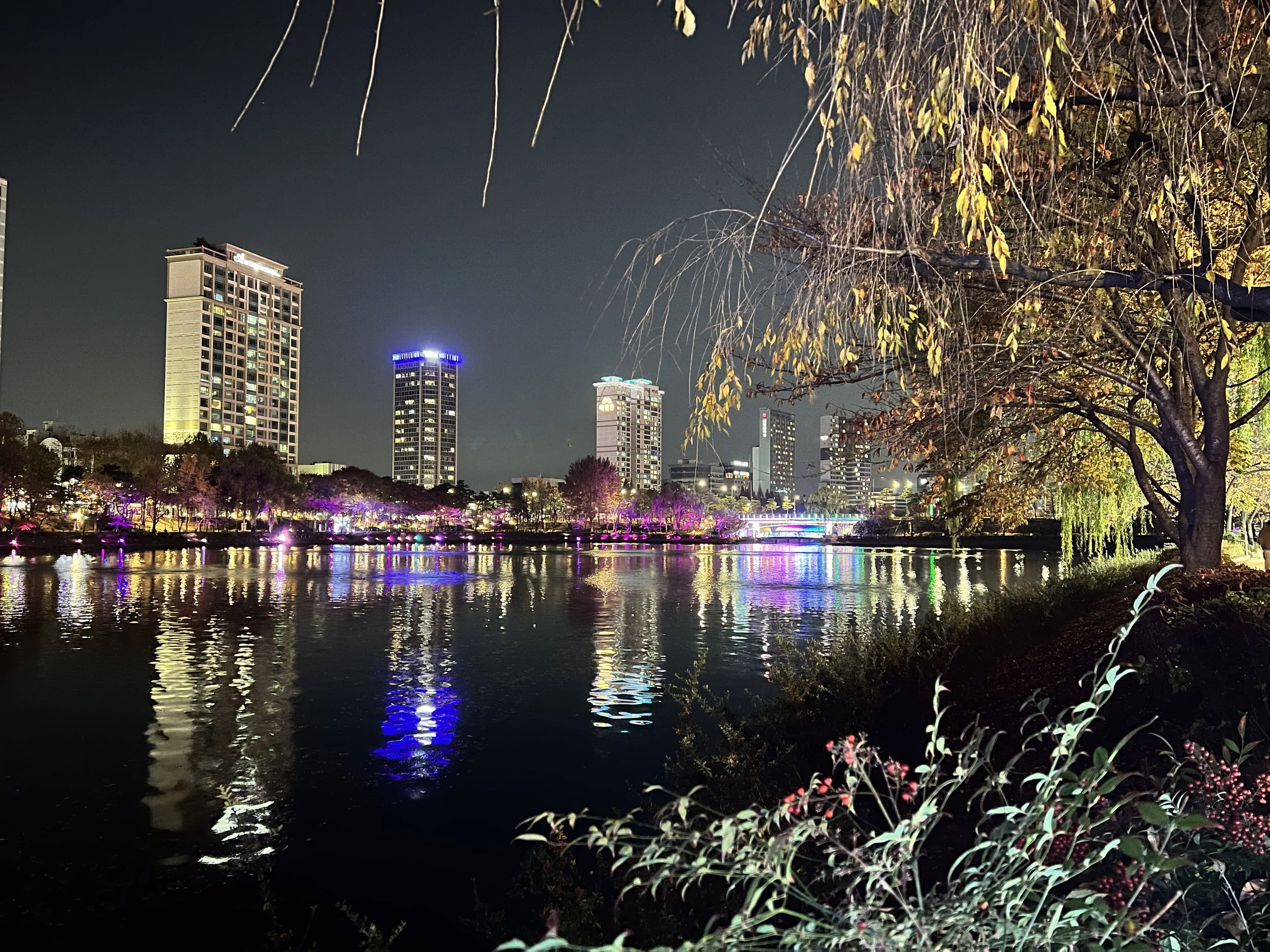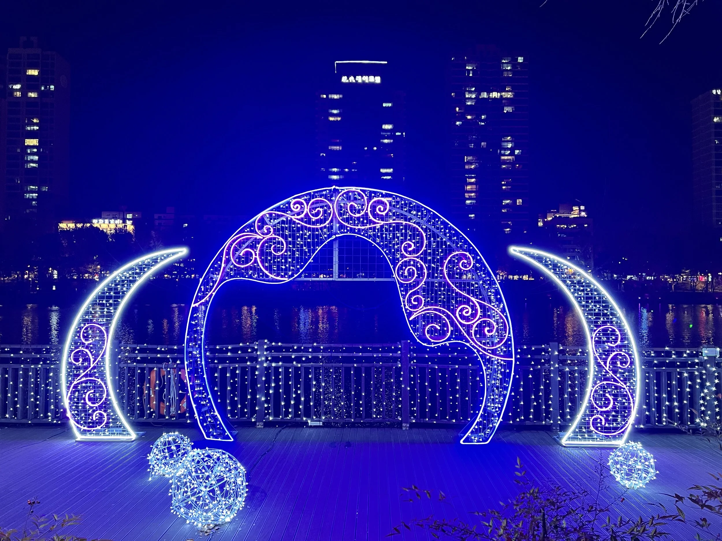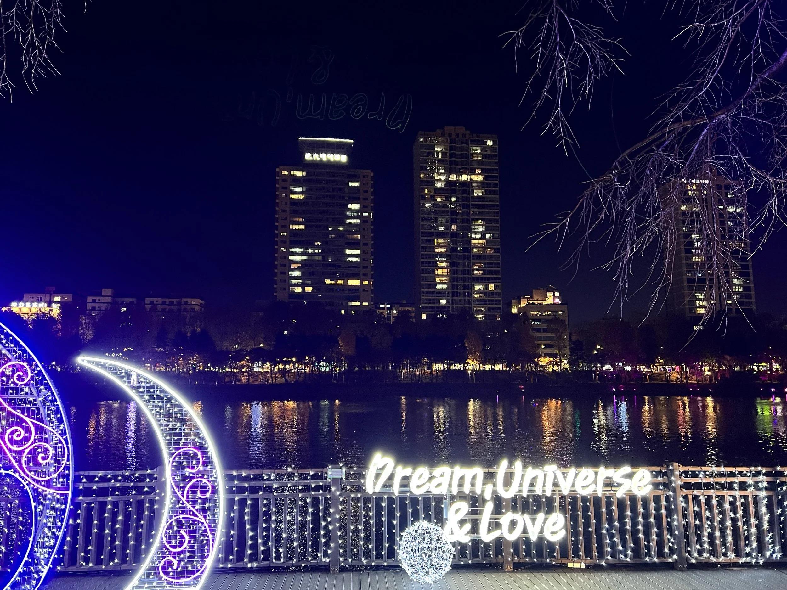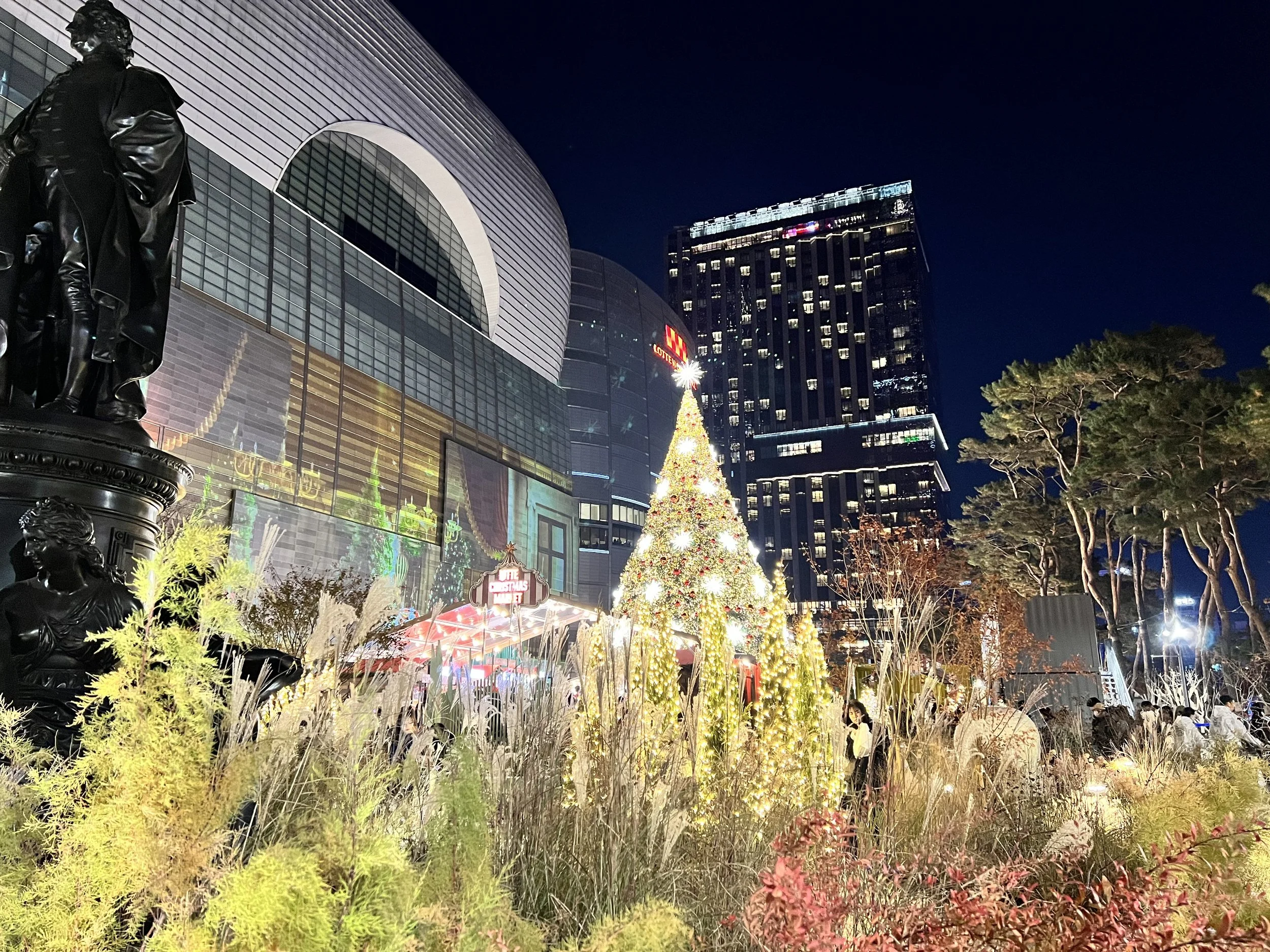 Afterwards, we took another bus towards Lotte World Tower. The building glowed in festive colours, and the surrounding area was filled with Christmas lights and decorations, so bright it almost felt like daytime. We wandered through the mall and then out to the park beside it, where more lights and food vendors added to the festive atmosphere. Despite the large crowds, it was a fun and vibrant evening.