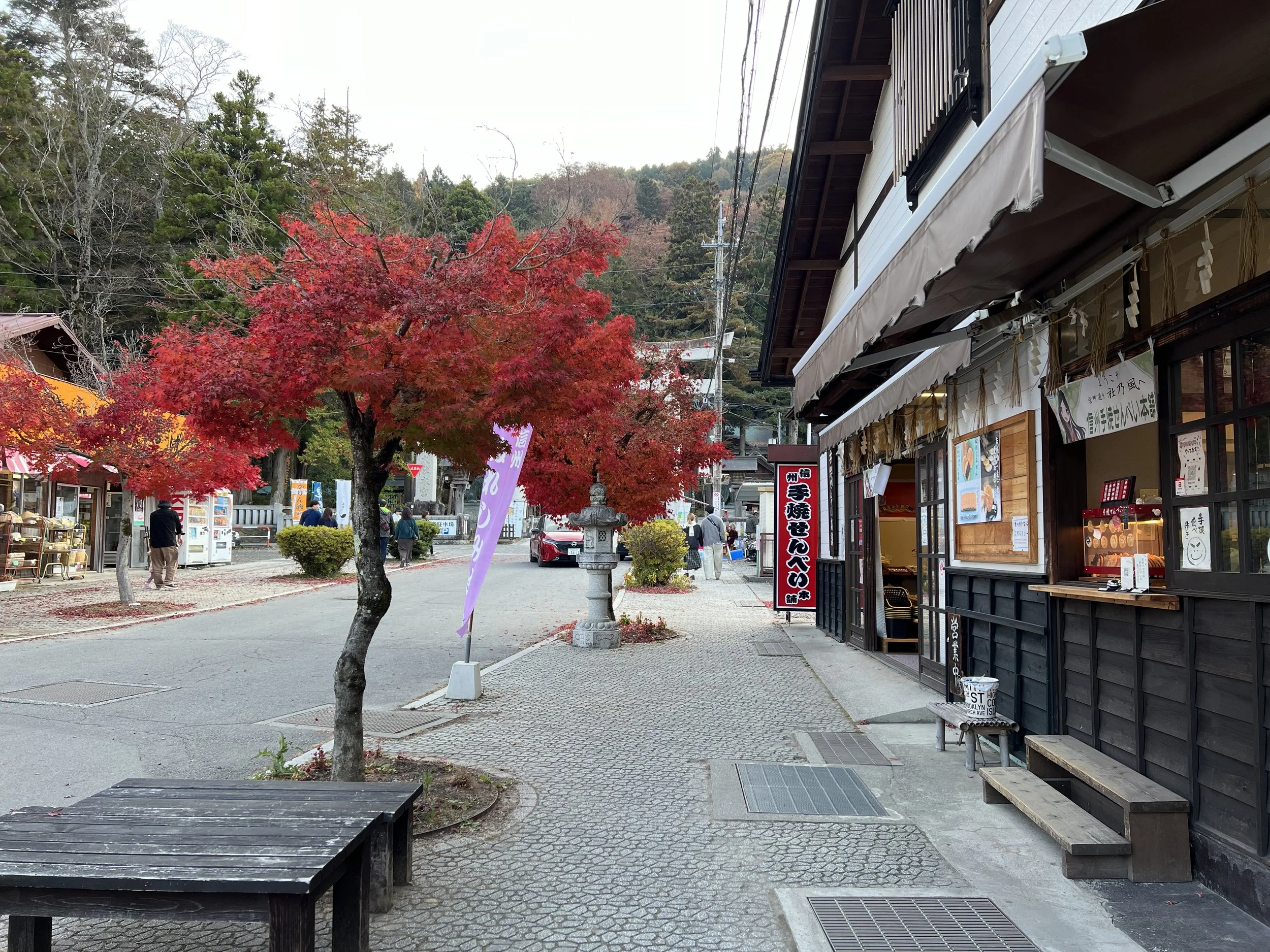 After finishing my walk through the grounds, I followed the main approach road leading away from the shrine. It eventually opened up into a small cluster of restaurants and shops. Most of them were already closing for the day, but I spent some time wandering through the quiet streets while waiting for the bus back toward Lake Suwa.