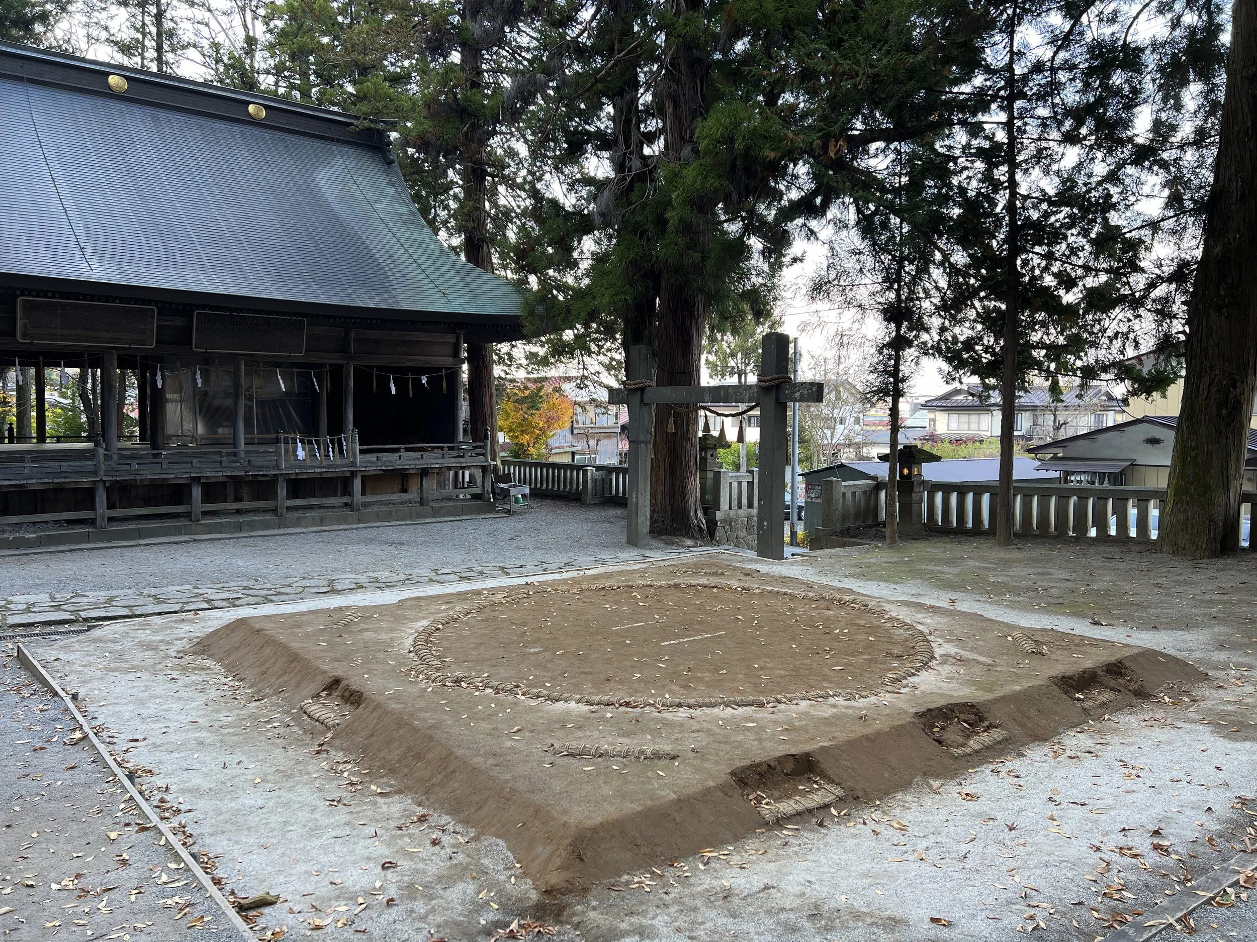 By the time I reached Kamisha Honmiya, it was clear that this was the largest and most developed of all four Suwa Taisha shrines. Set at the foothills of the mountain and surrounded by towering trees, the shrine grounds felt both expansive and peaceful. As I walked along the main approach, I came across something I wasn’t expecting—a sumo ring. At first, it felt slightly out of place. But the more I looked into it, the more it made sense.