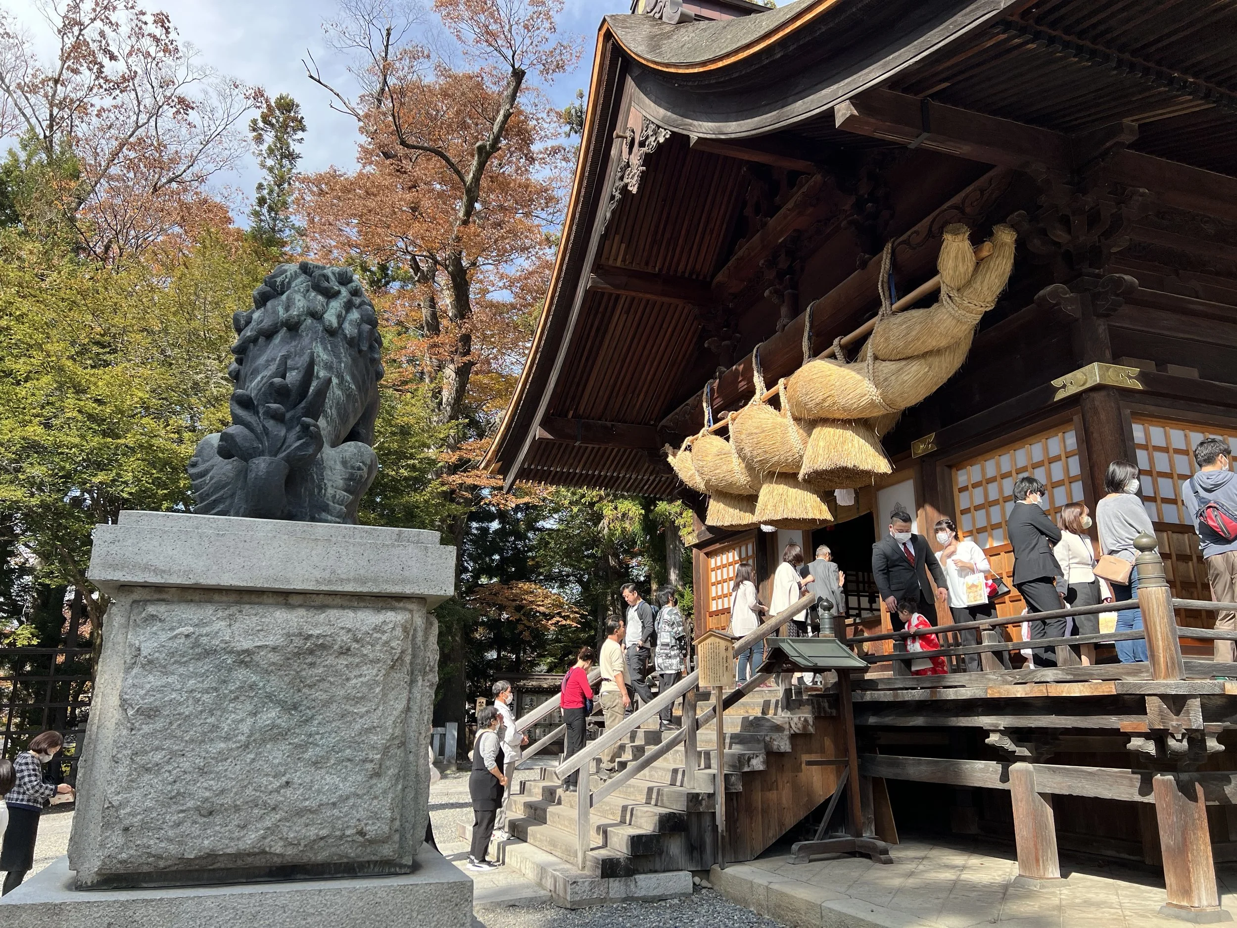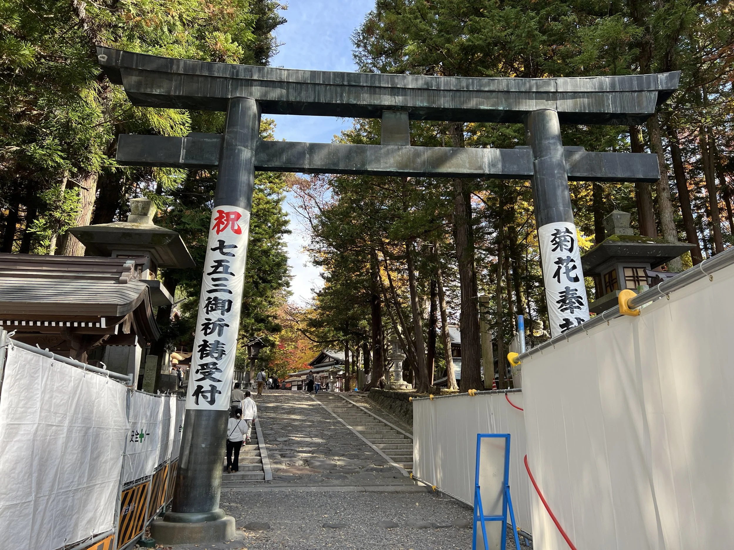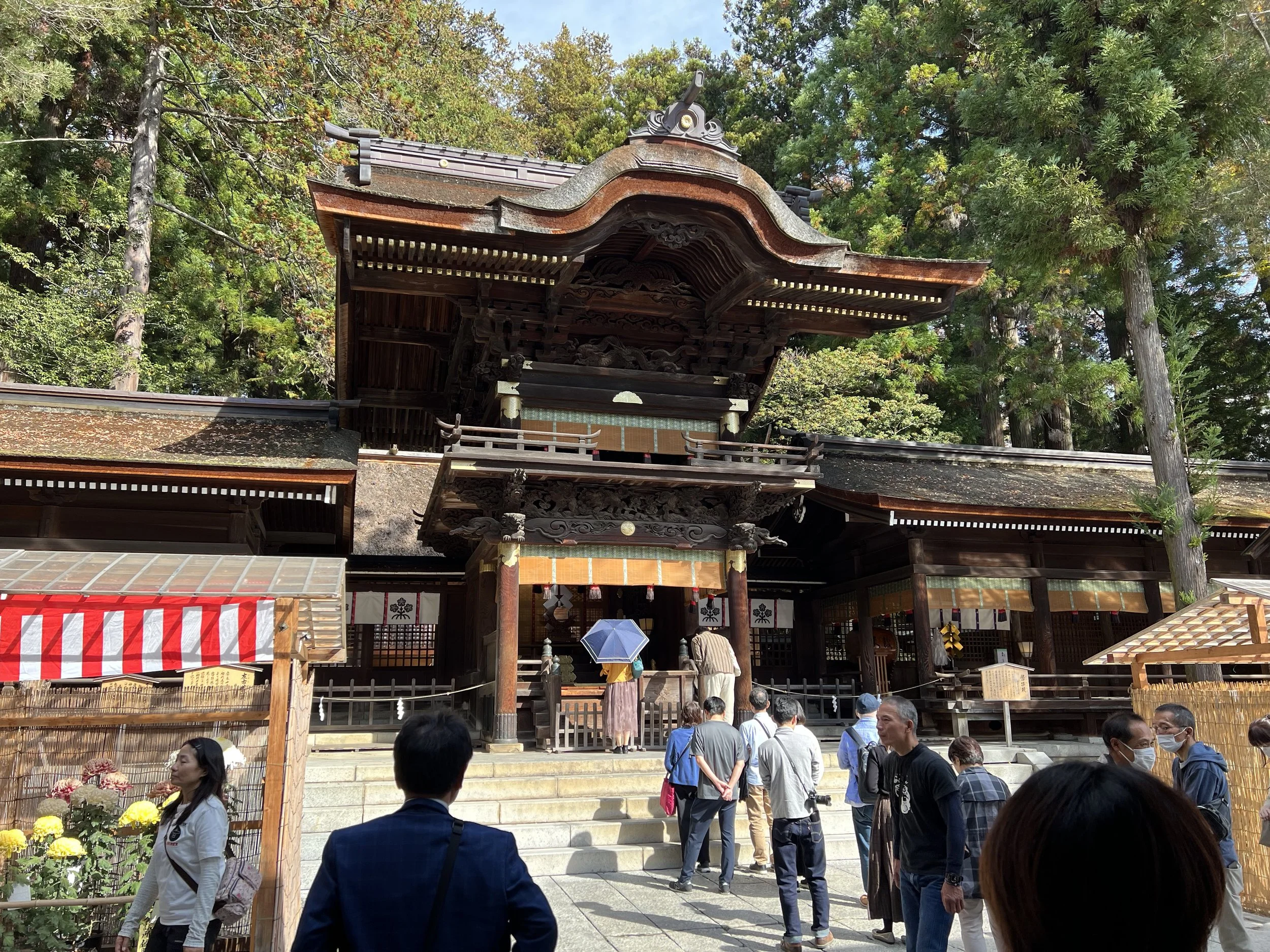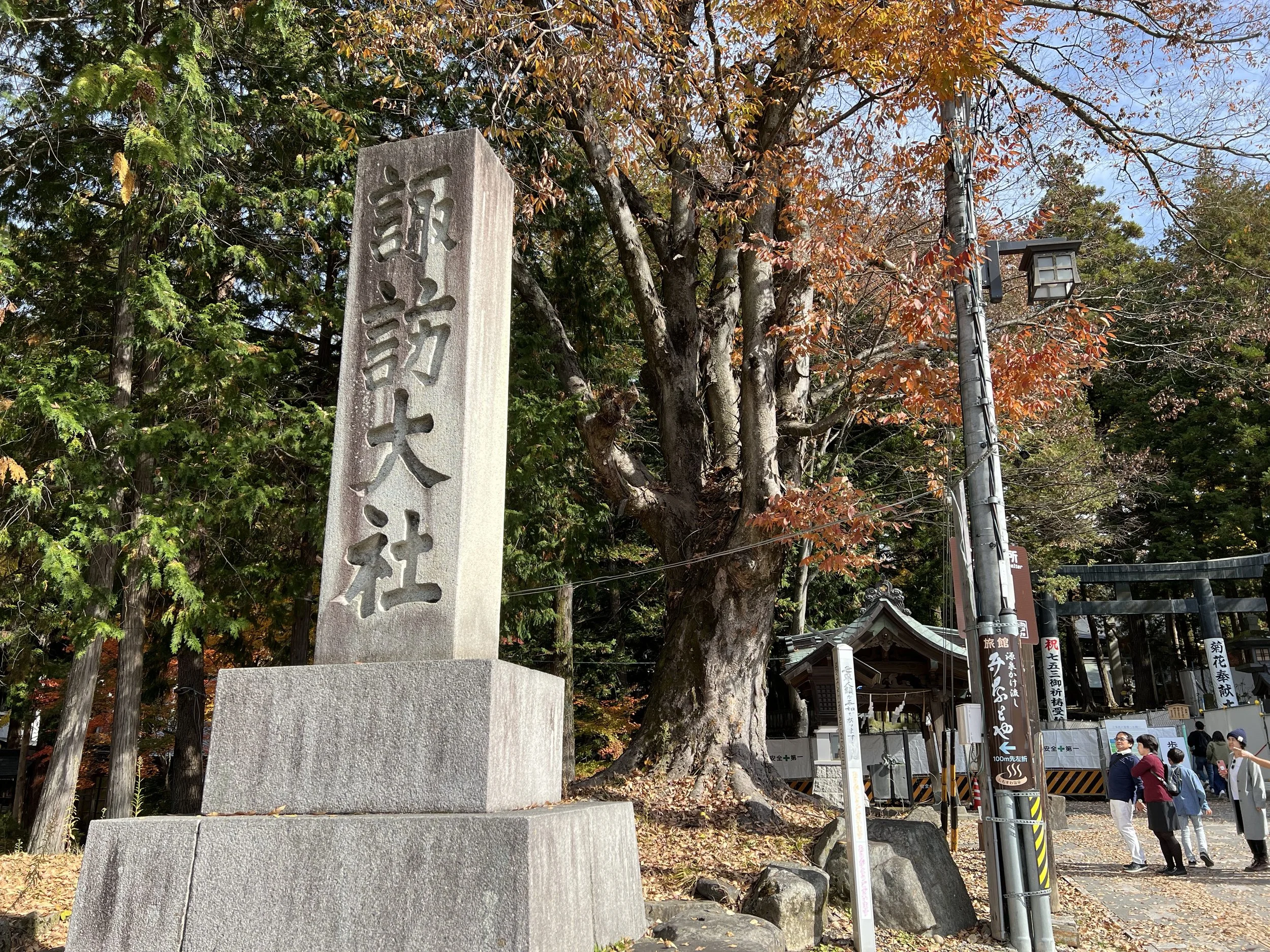 This shrine is also the most well-known of the four, largely because it houses the massive sacred logs used during the famous Onbashira Festival, held every six years. Seeing those towering logs up close gives you a sense of the scale of that tradition. I had also heard about a legend tied to an ancient tree here—one that supposedly “snores” when its branches lower. I can’t say I heard anything, but just standing among these trees, you can’t help but feel like there’s something there.