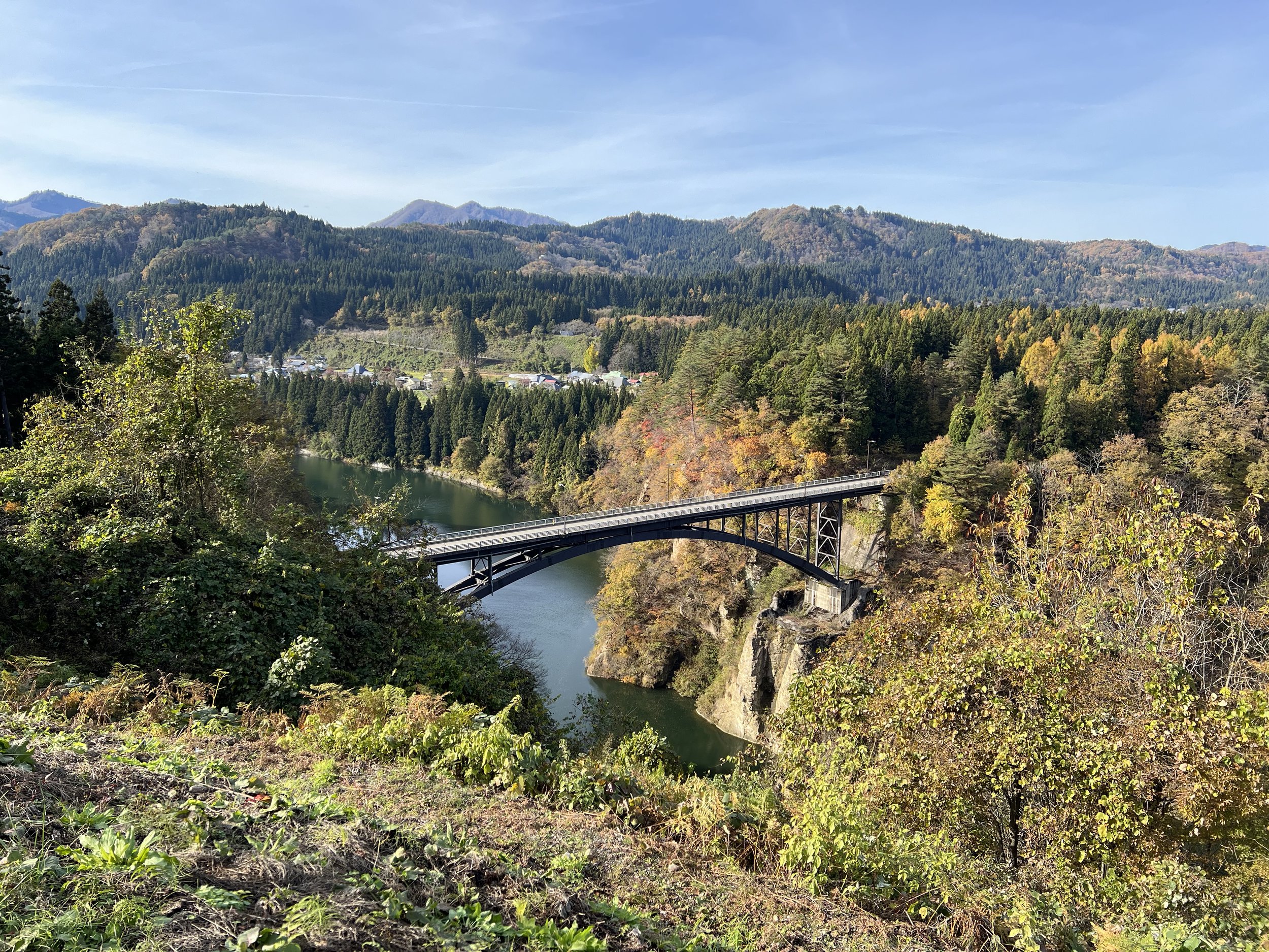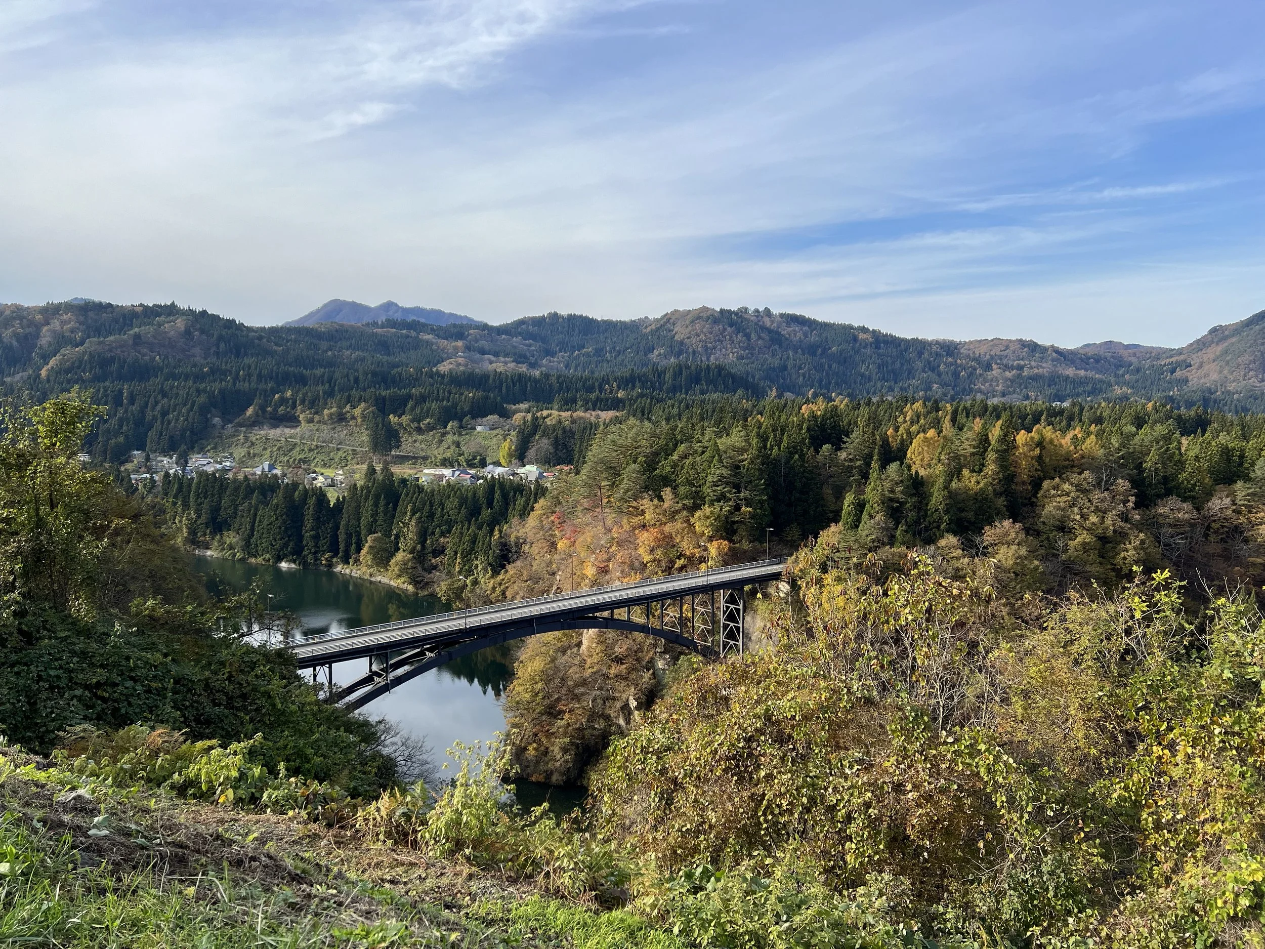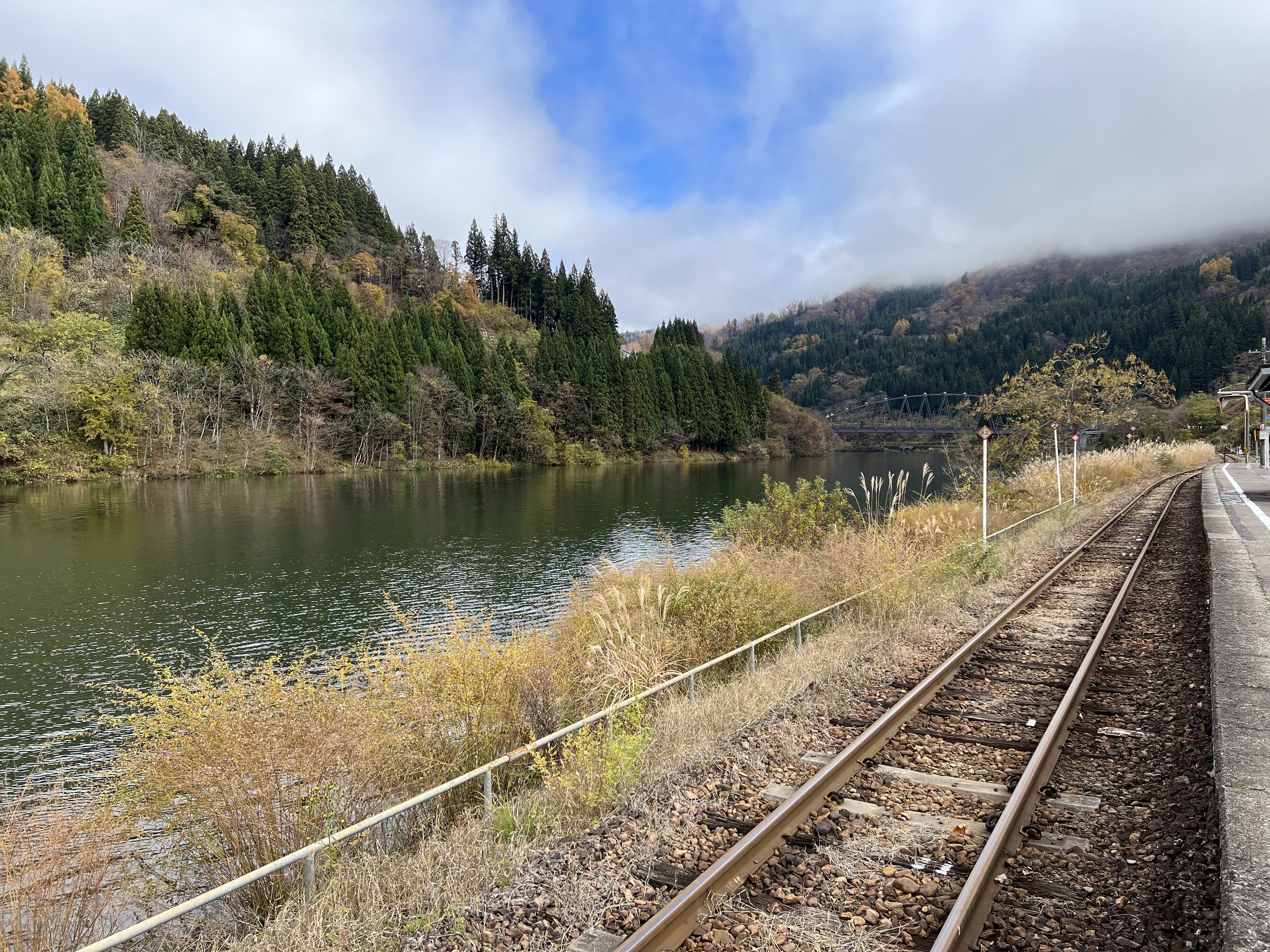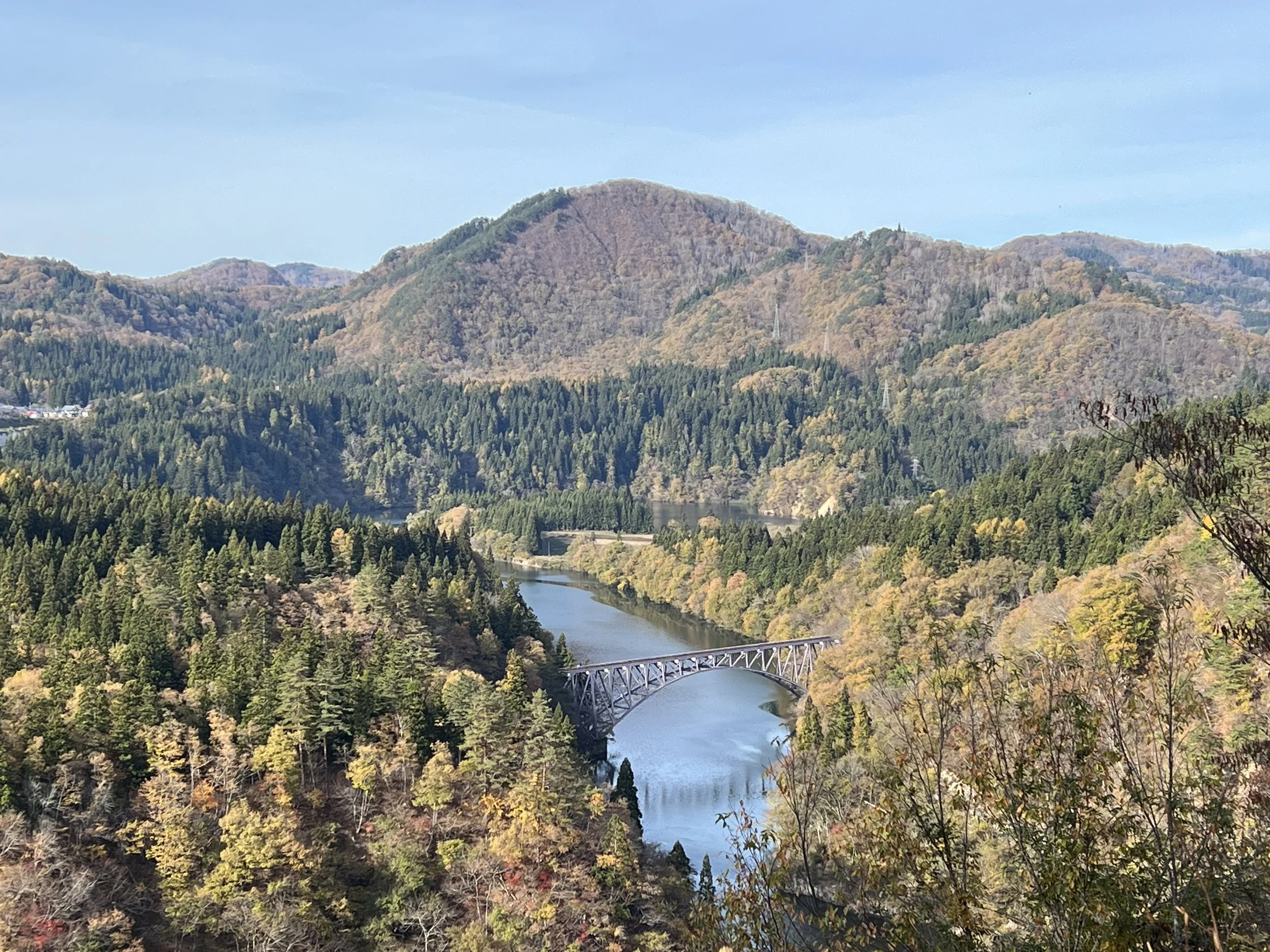 My main goal today was simple: explore the scenic viewpoints along the Tadami River in Fukushima Prefecture. This area is best known for the JR Tadami Line—a railway that winds through deep valleys, crosses dramatic bridges, and transforms completely with the seasons. Whether it’s autumn foliage, winter snow, or early summer mist, it’s often described as one of Japan’s most romantic train journeys.