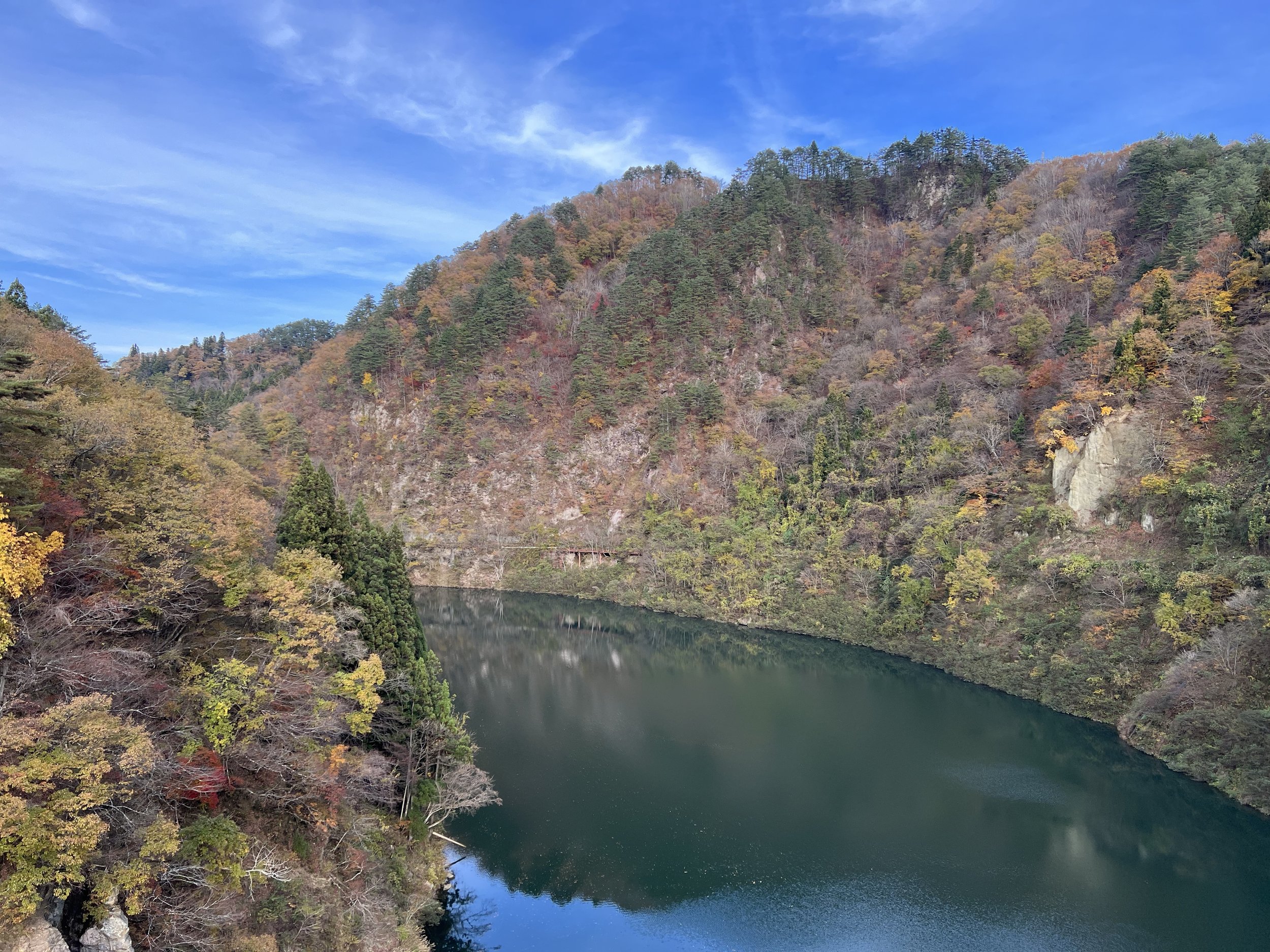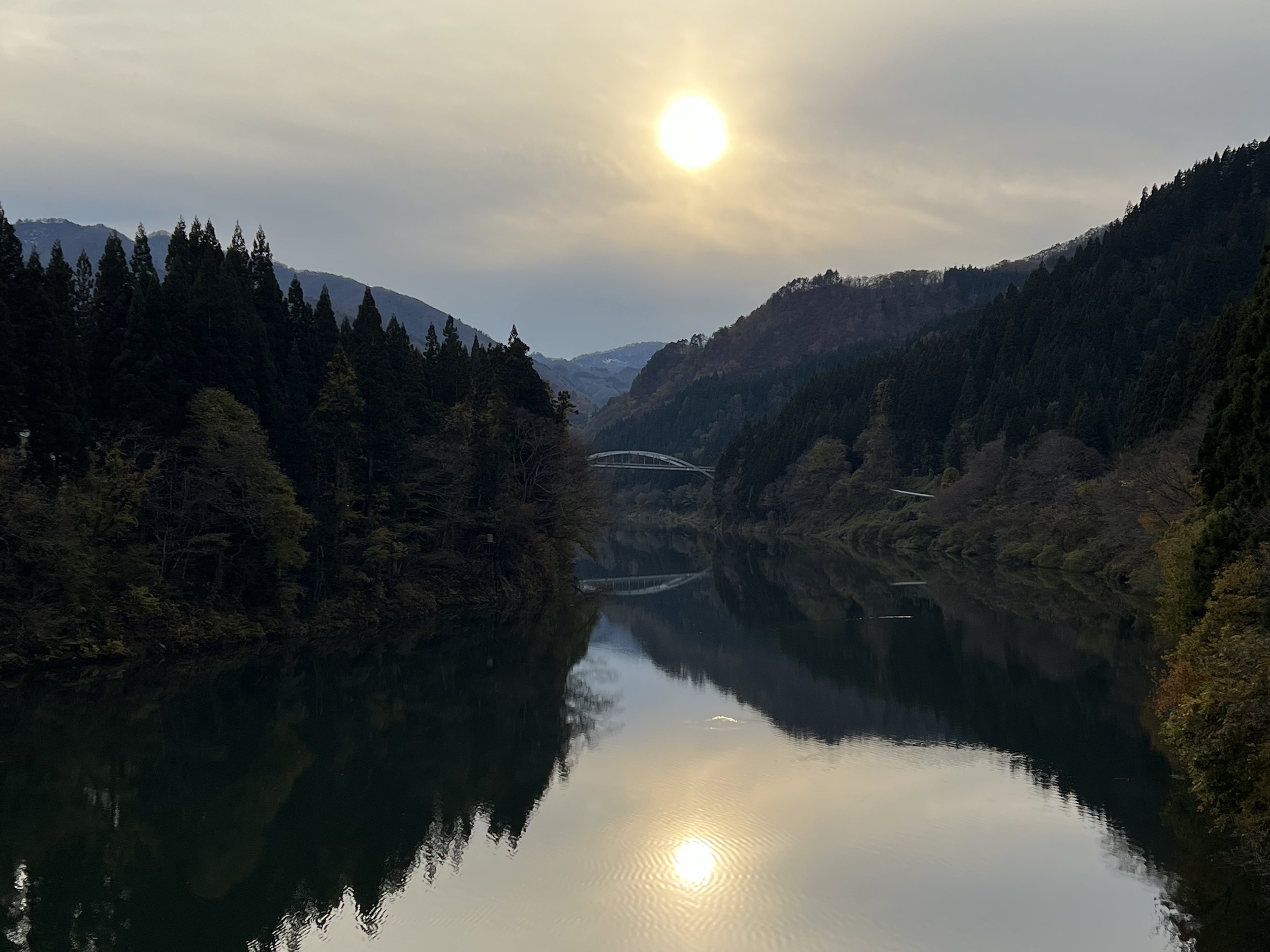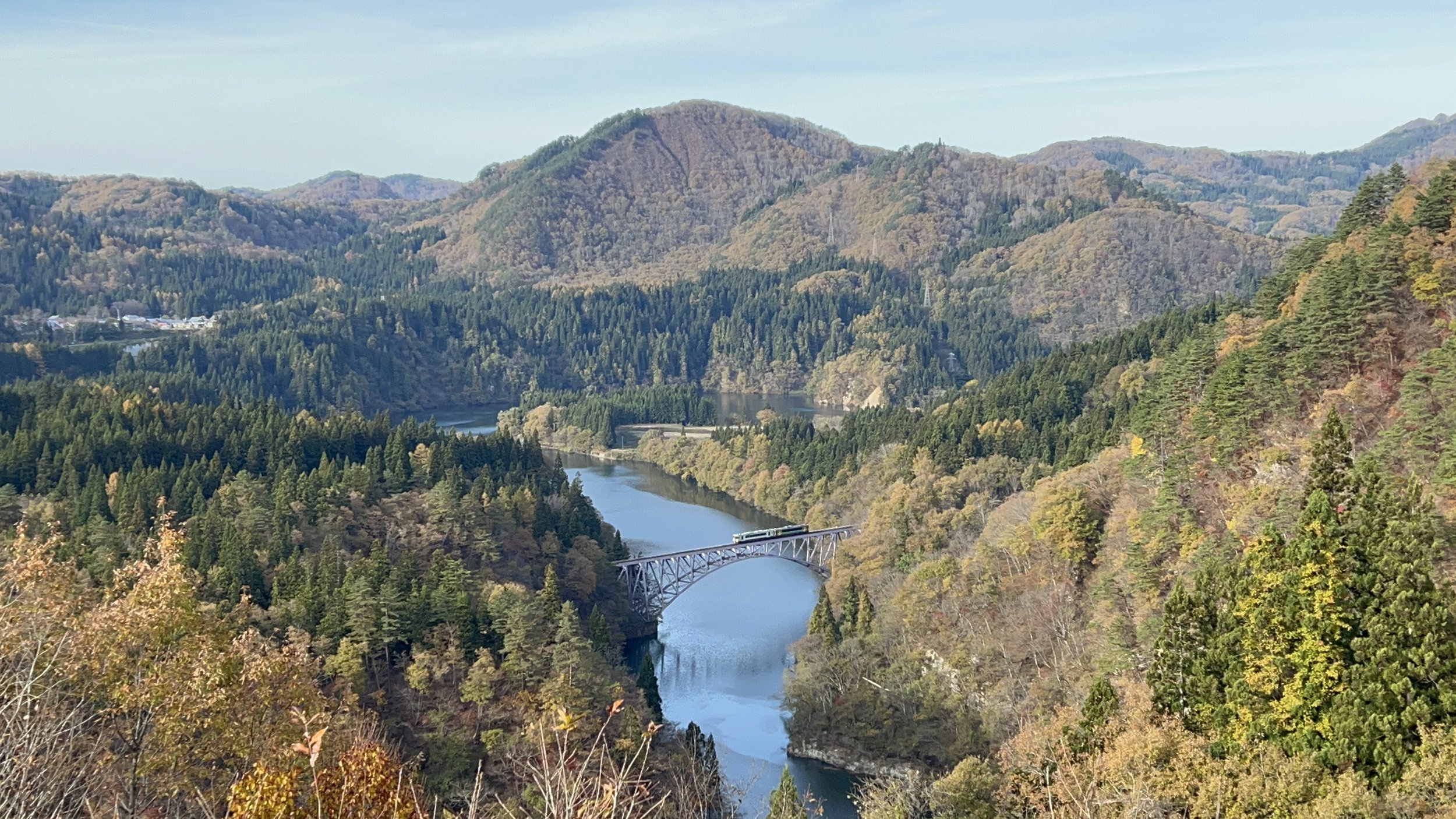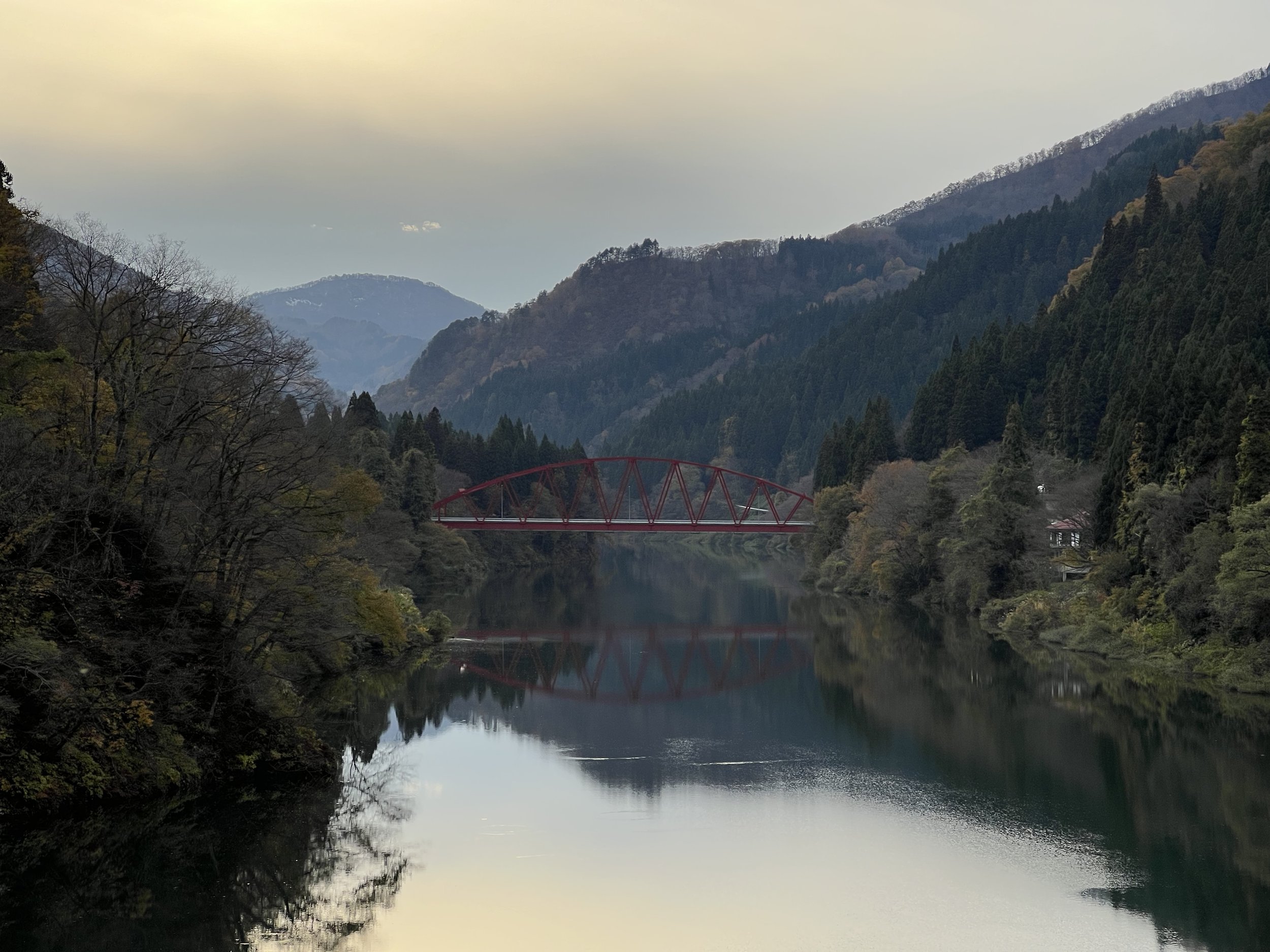 My main goal today was simple: explore the scenic viewpoints along the Tadami River in Fukushima Prefecture. This area is best known for the JR Tadami Line—a railway that winds through deep valleys, crosses dramatic bridges, and transforms completely with the seasons. Whether it’s autumn foliage, winter snow, or early summer mist, it’s often described as one of Japan’s most romantic train journeys.