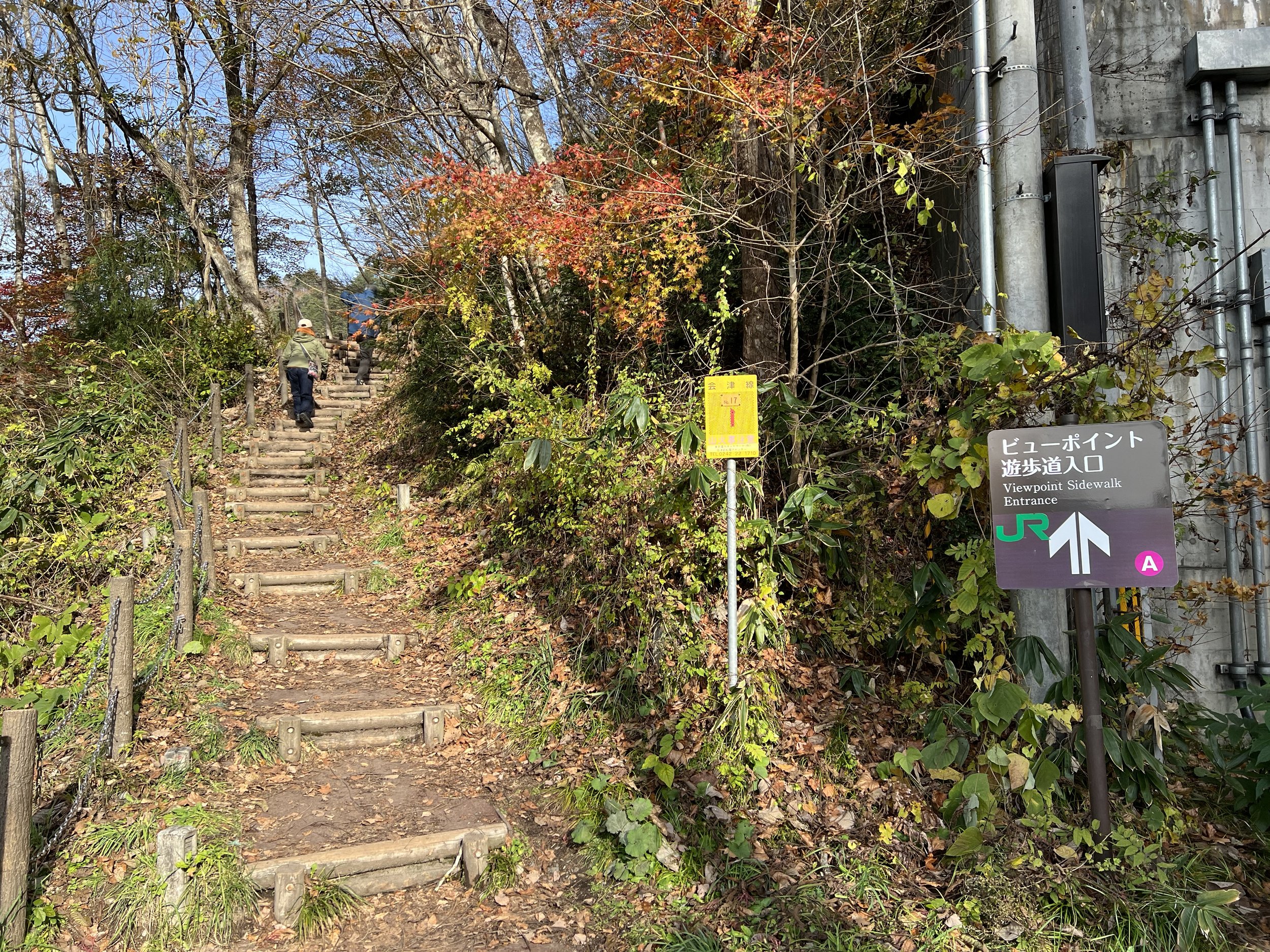 The trailhead is located near Ozekaido Mishima Juku Roadside Station, about a 30-minute walk from the bridges. As I approached the area, I started to notice more people—cameras in hand, clearly there for the same reason. This was the most “popular” part of the day. I checked the train schedule on my phone, only to realize it was posted right there at the roadside station. From here, the trail leads up to multiple viewpoints, each at a different elevation depending on how far you want to climb.