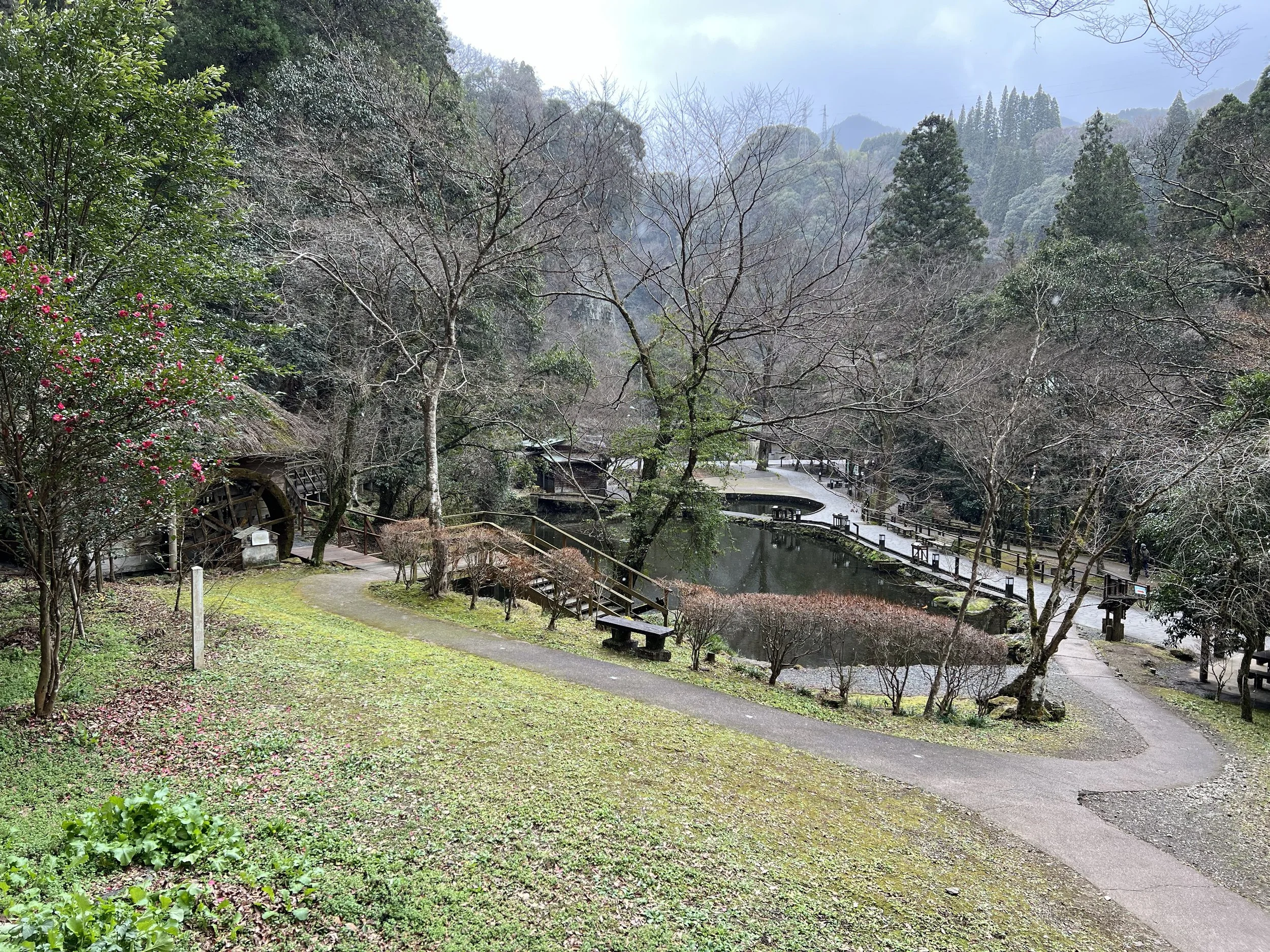 I travelled to Takachiho by bus from Nobeoka. The journey through rural Miyazaki was quiet and scenic, passing through small towns, farmland, and forested hills. I learned along the way that there once was a railway connecting Nobeoka and Takachiho, but it was repeatedly damaged by typhoons and ultimately closed in 2008. Today, the bus is the main public transport option into the area. I disembarked at Takachiho Bus Center and began the walk toward the gorge.