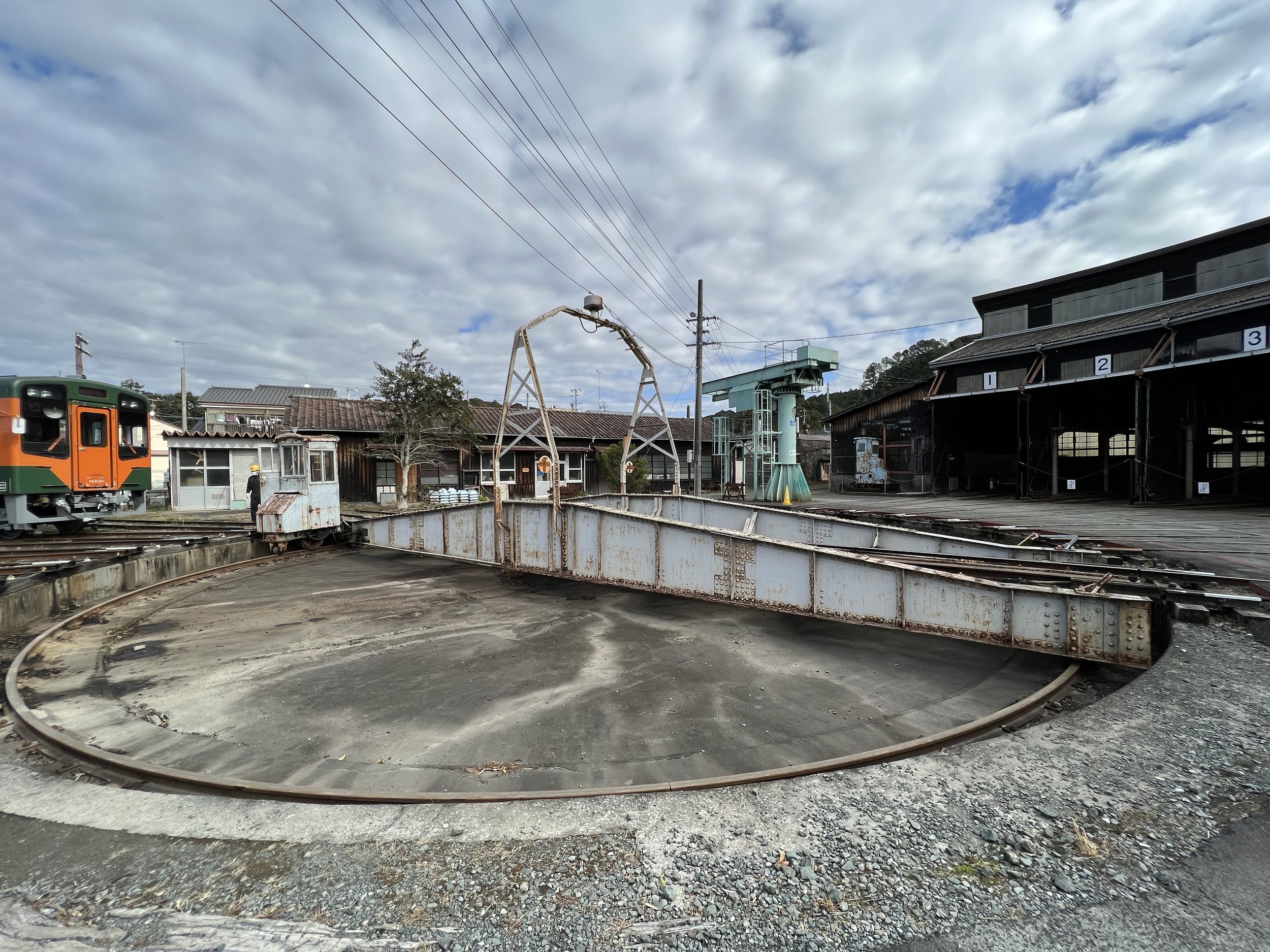 Tenryu Futamata Station is part of the Tenryu Hamanako Line, which operates through rural Shizuoka Prefecture and is known for its scenic and historically preserved railway infrastructure. The station’s turntable was built to manage locomotive direction changes in a compact depot space, a practical solution from earlier railway operations.