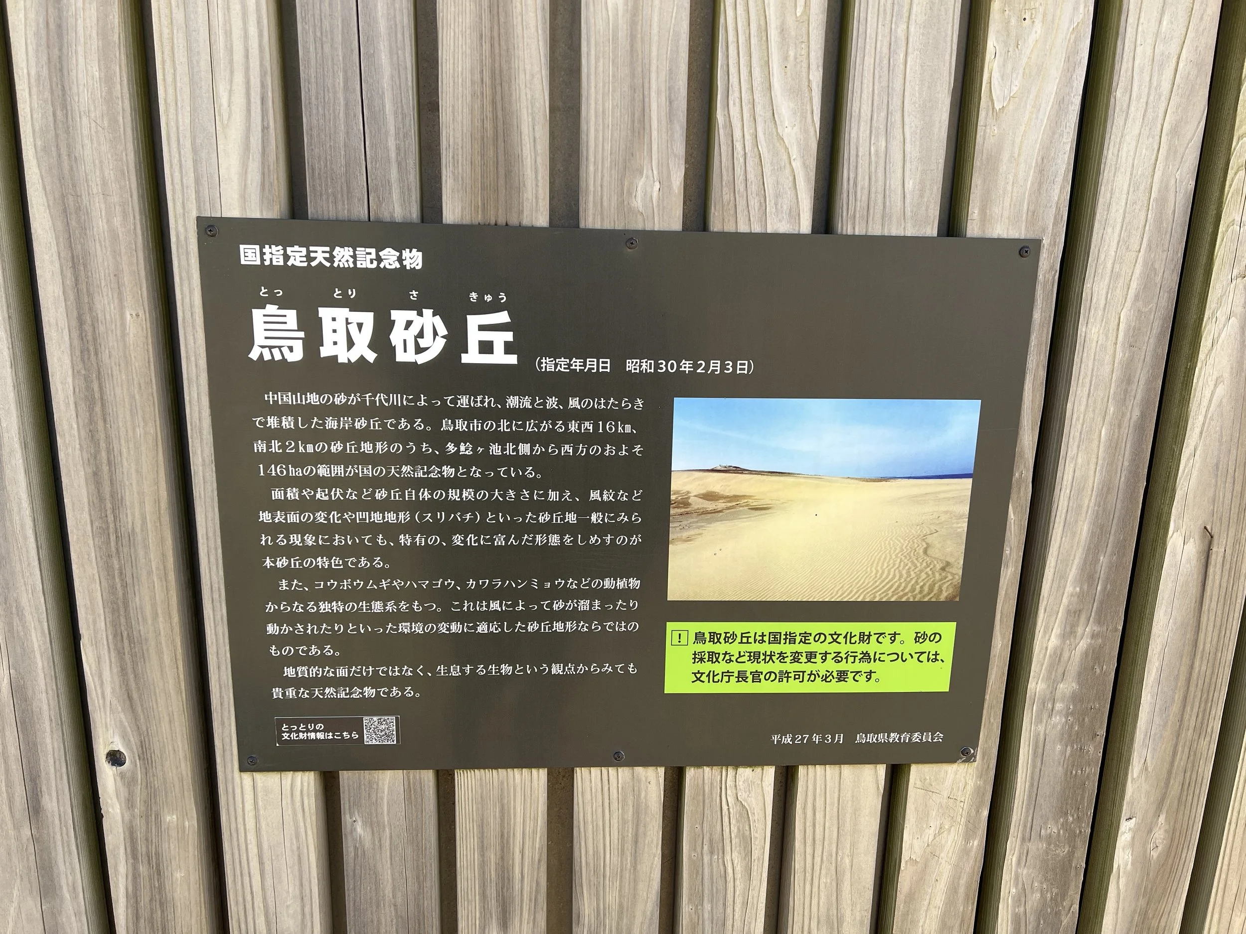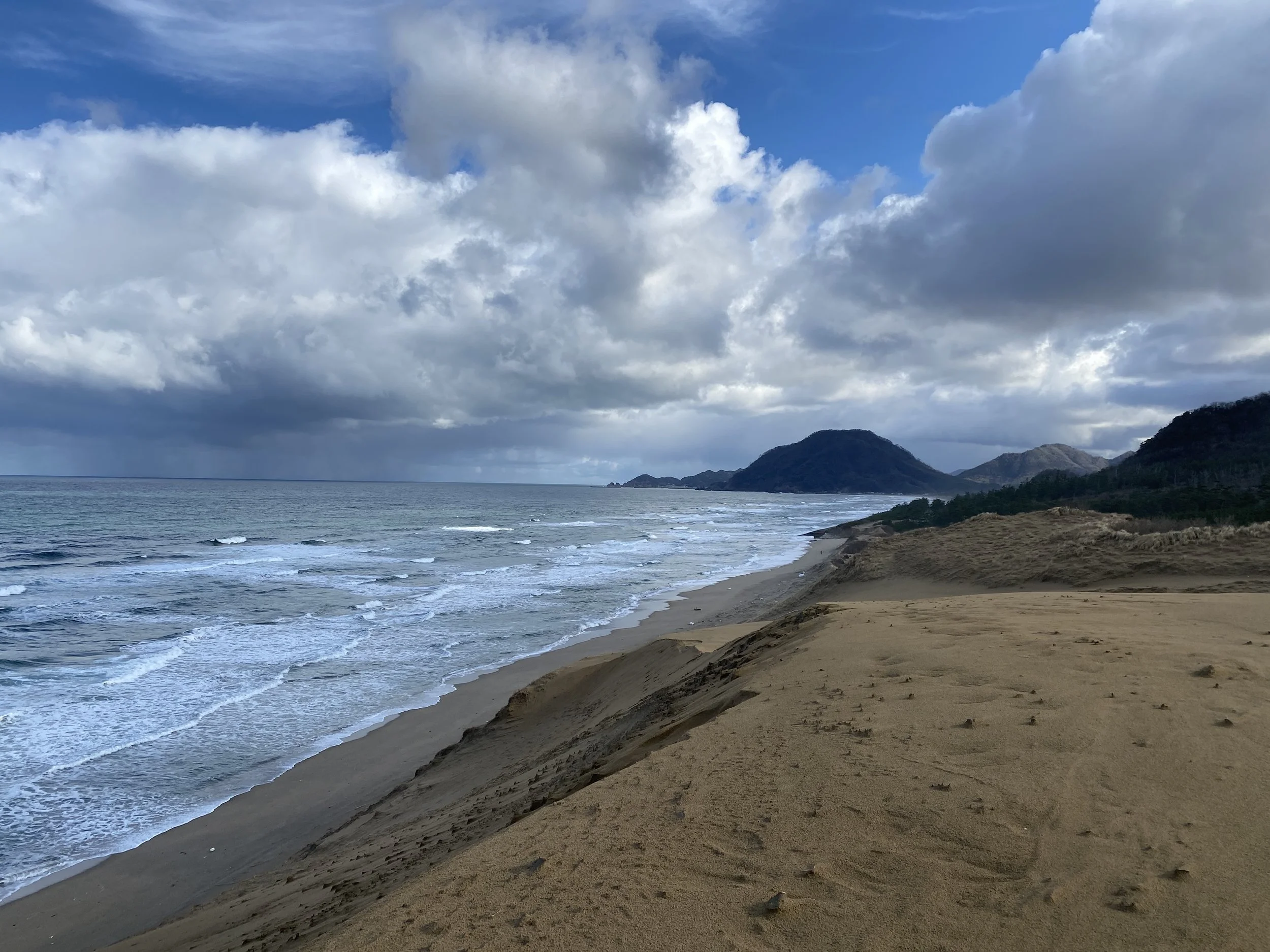 The Tottori Sand Dunes (鳥取砂丘) are Japan’s largest sand dune system, stretching approximately 16 kilometres along the coast of the Sea of Japan. Formed over thousands of years by sand carried from the Sendai River and shaped by coastal winds and tides, the dunes are a rare natural landscape in the country. They are part of San’in Kaigan National Park and have been designated a protected natural monument. Today, the dunes are a popular attraction for visitors seeking outdoor activities such as walking, sandboarding, and scenic photography.