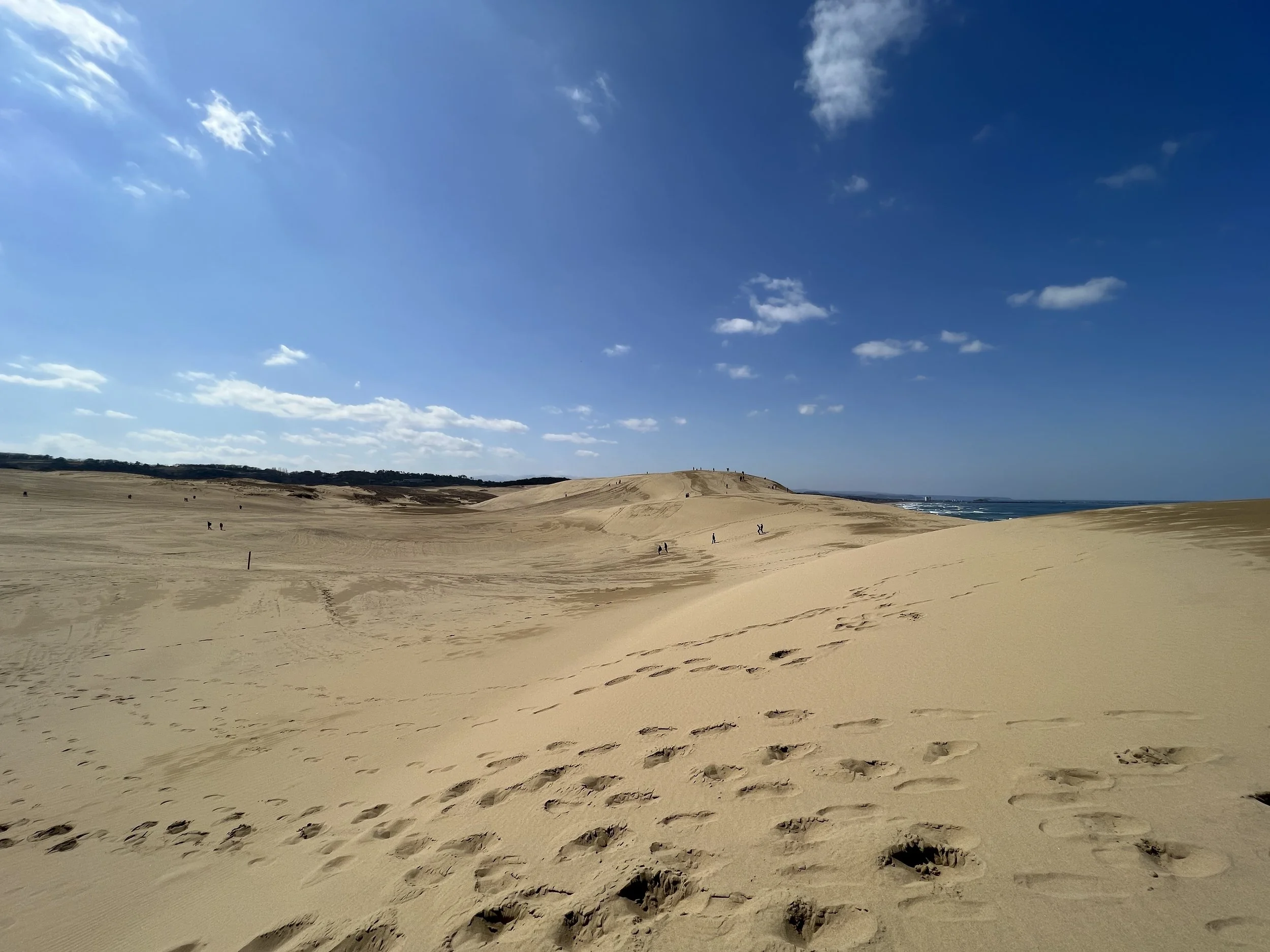 After finishing my visit at the Sand Museum nearby, I headed towards the main attraction that brought me to Tottori in the first place: the Tottori Sand Dunes. Japan isn’t exactly known for deserts, so I was genuinely surprised when I first learned about this place. What stood out to me even more was the presence of camels—certainly not native, but undeniably adding to the desert-like atmosphere.