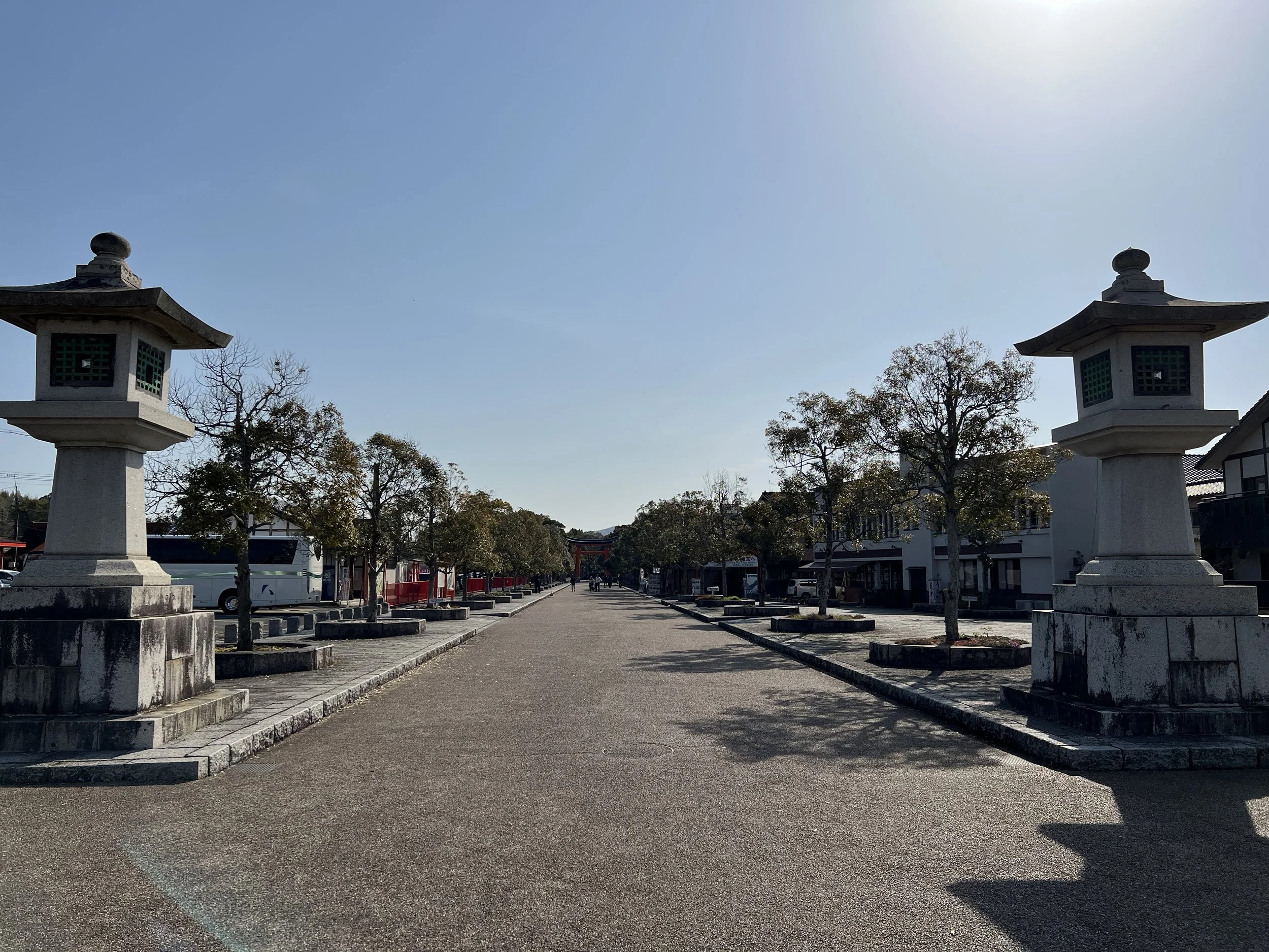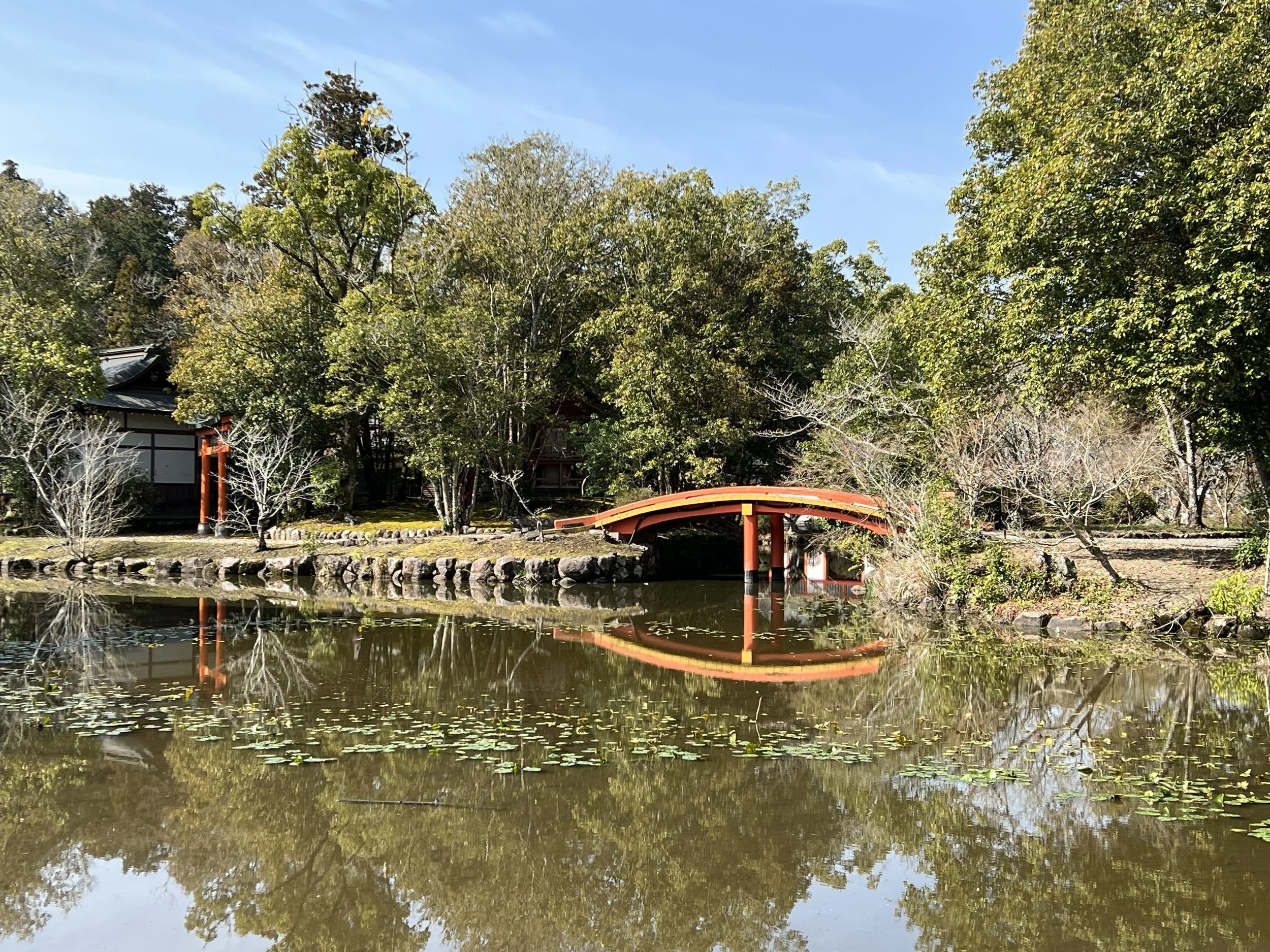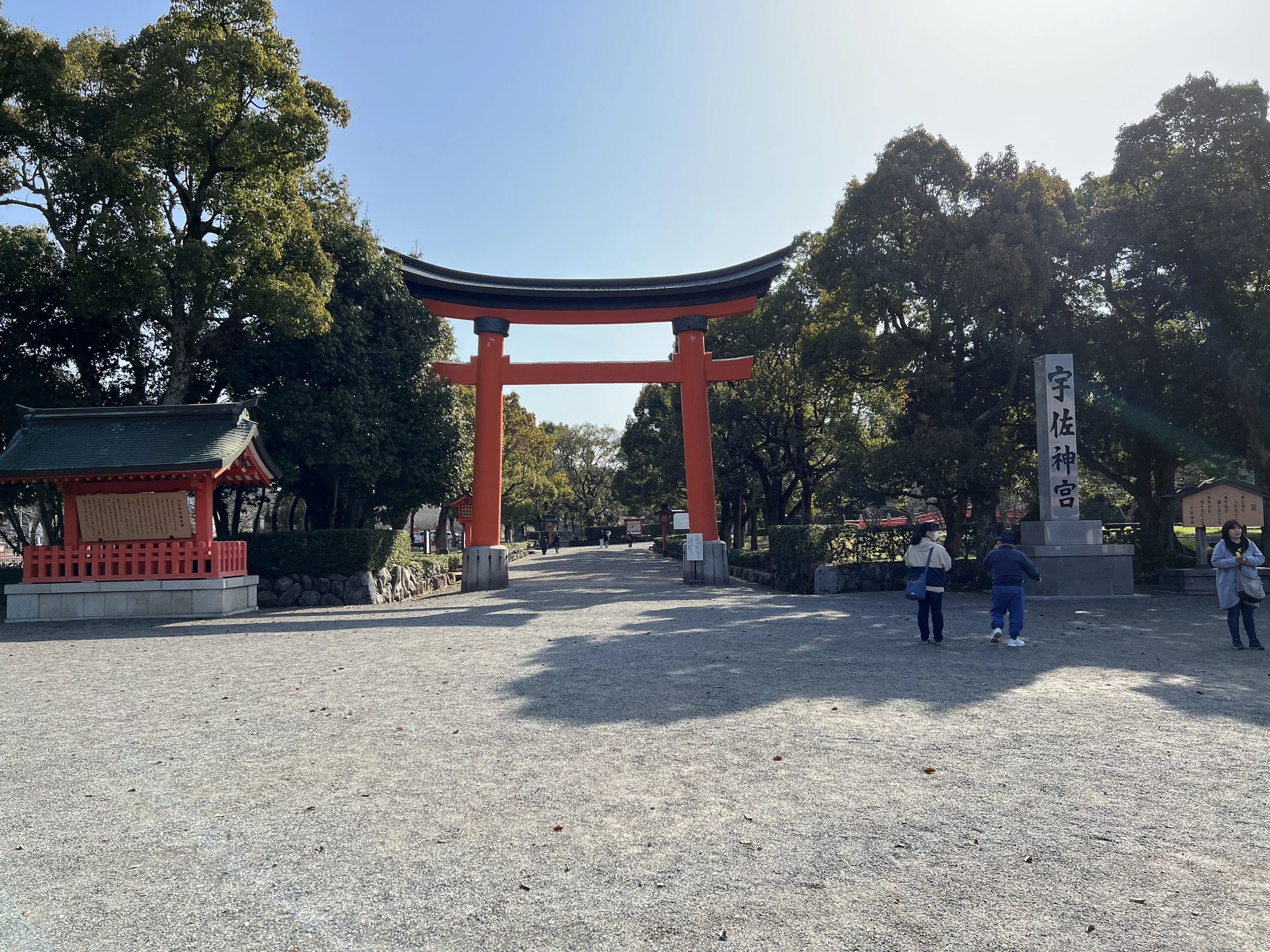 Usa Shrine is a bit out of the way from Usa Station, and while I had prepared myself for the roughly 4 km walk, I was fortunate that the bus schedule aligned well with my arrival. Once dropped off near the shrine, the scale of the grounds was immediately apparent. Even reaching the first torii gate required a short walk, and from there, the paths continued to unfold deeper into the forest. As I wandered through the wide, tree-lined grounds, I came across Hishigata Pond. In summer, this pond is famously covered in lotus flowers, drawing many visitors, but even in winter it was calm and atmospheric.