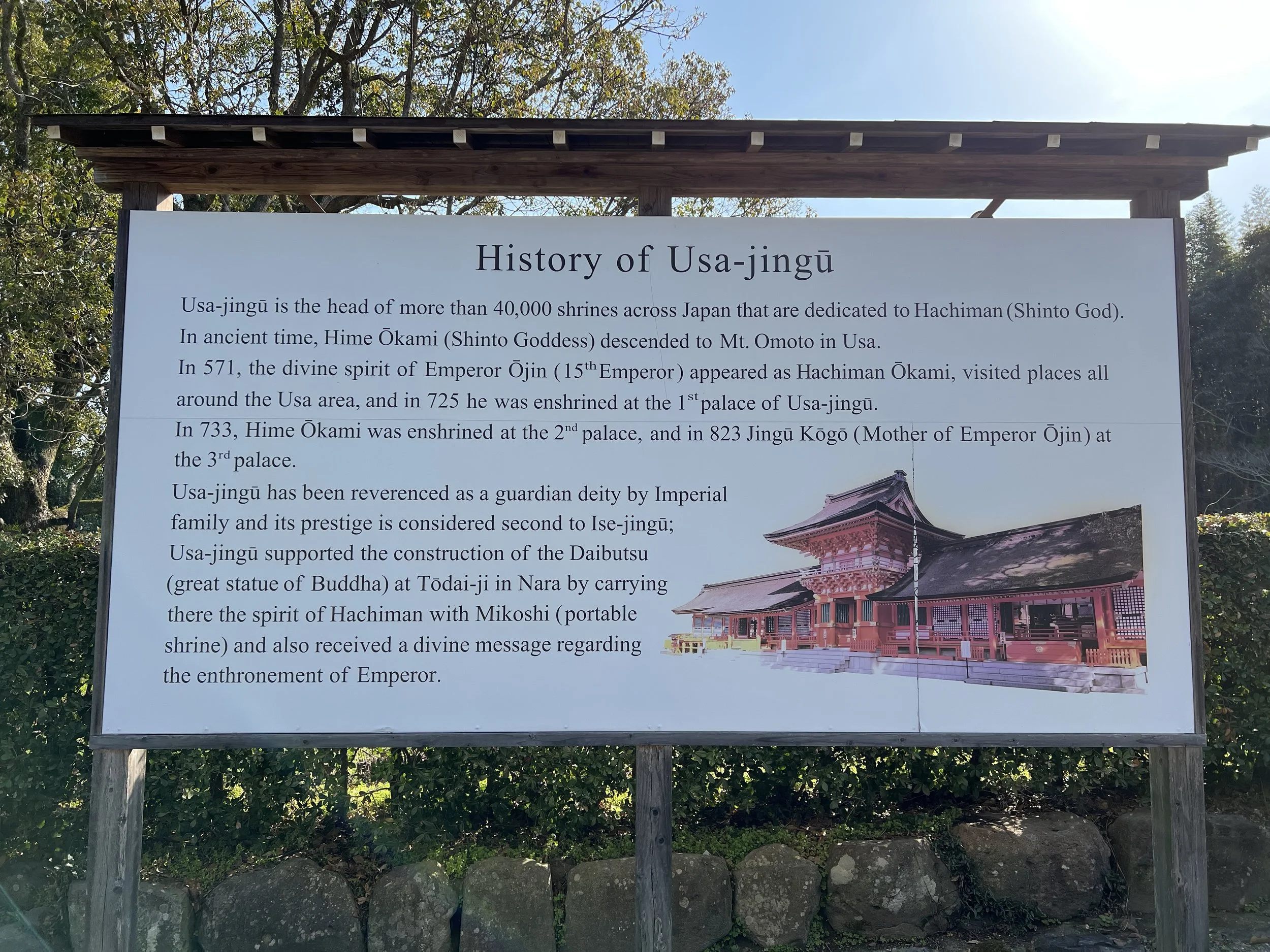 Usa Shrine (宇佐神宮) is the principal shrine of the Hachiman faith, which venerates Hachiman as the god of war, protection, and the guardian deity of Japan. Established in 725, the shrine played a significant role in both religious and political history, particularly through its close ties to the imperial family and samurai class. The shrine complex is divided into upper and lower sections, an uncommon layout that reflects its ancient origins. Over centuries, Usa Shrine has been regarded as a spiritual power spot and a centre for religious training, with its surrounding mountains historically used by monks for ascetic practice.