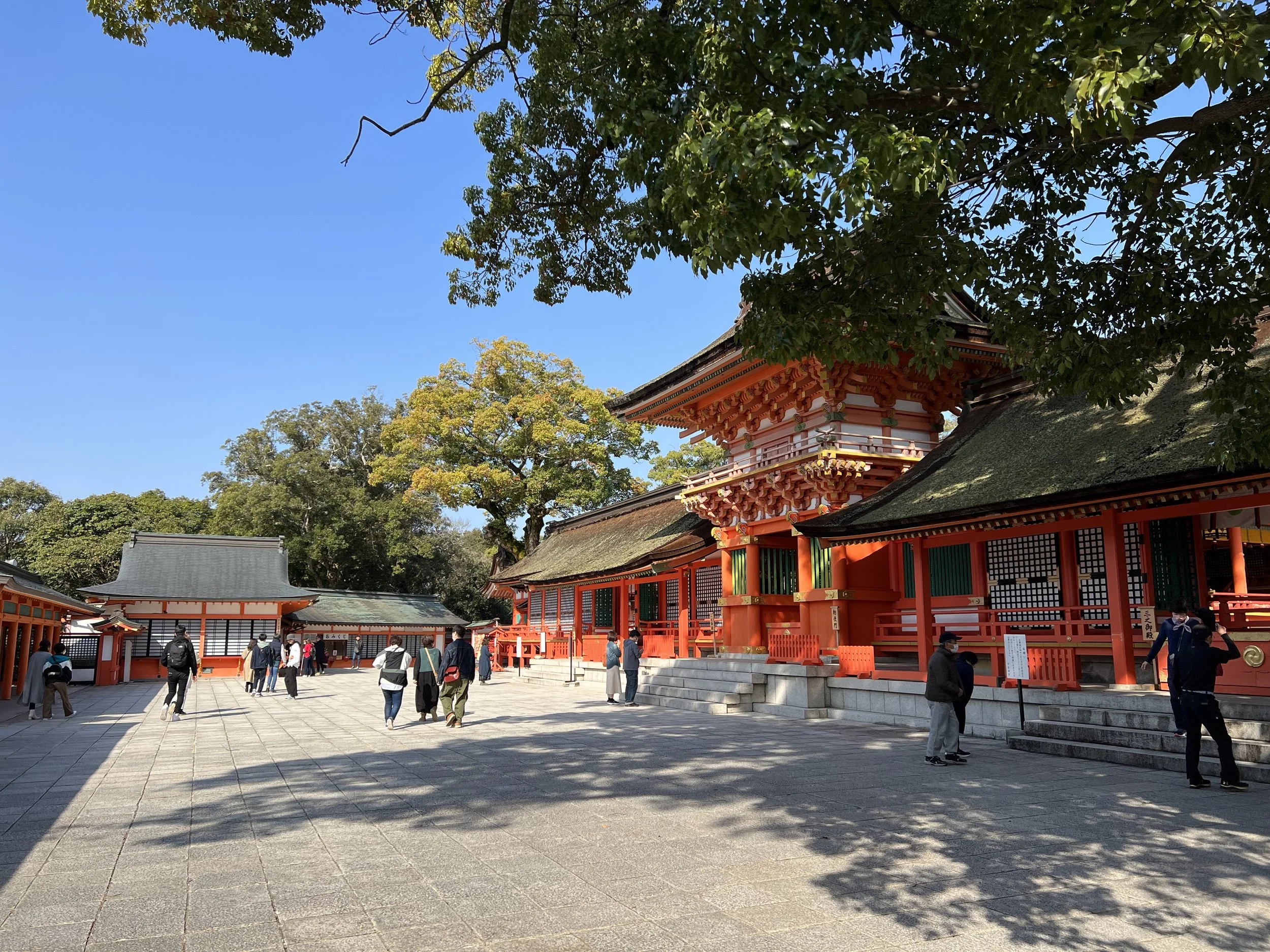 I eventually wandered back toward Hishigata Pond and followed the trails nearby. Sitting by the water for a while, I watched visitors feeding the koi, tossing feed from side to side as the fish darted eagerly after it. It was a simple, peaceful moment that contrasted nicely with the grandeur of the shrine itself. When I checked the bus schedule and saw that the next bus wouldn’t arrive for another 45 minutes, I decided to walk back to Usa Station instead, enjoying one last quiet stretch through the town.