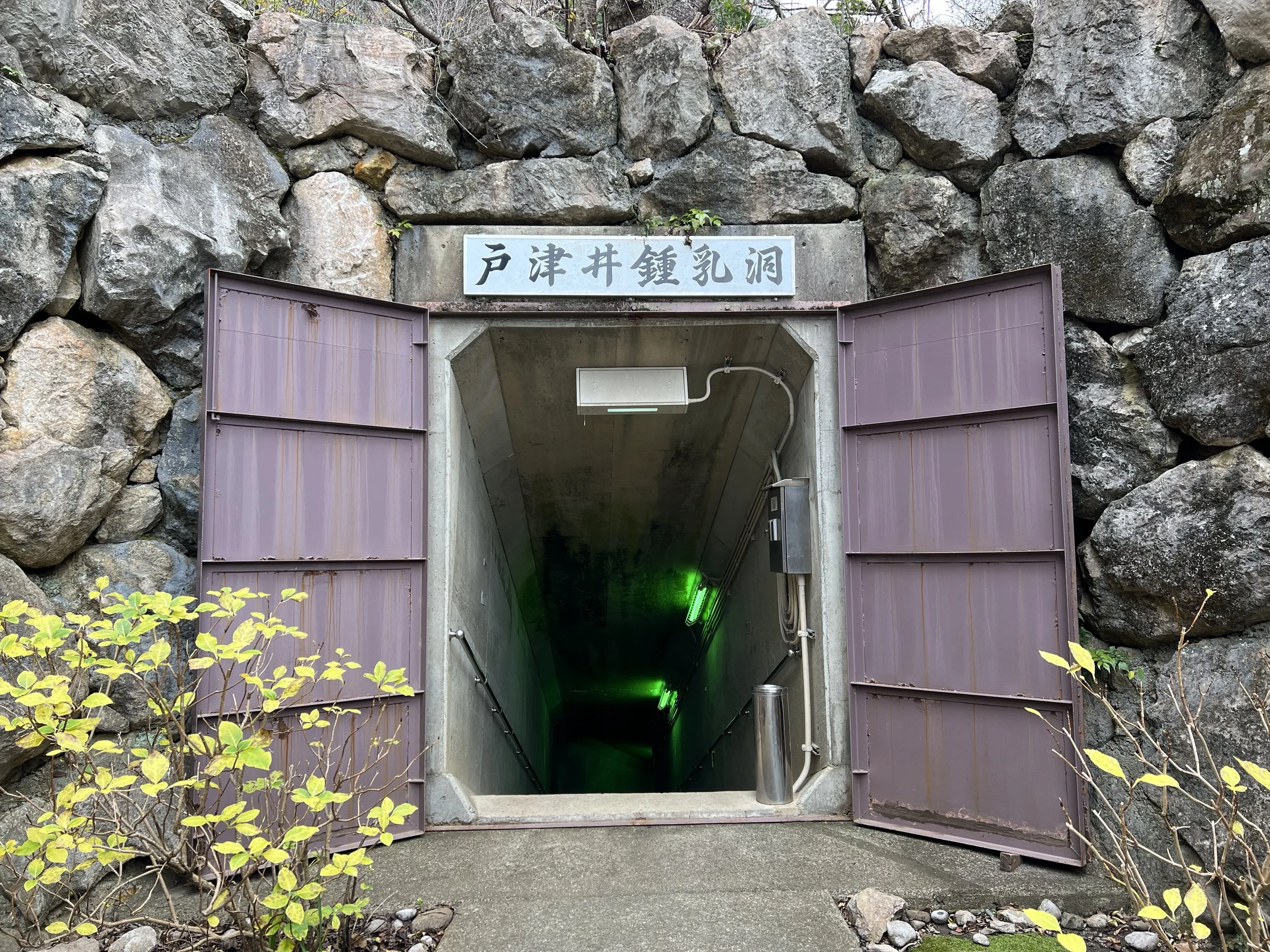 The entrance to the cave looked surprisingly dramatic. After purchasing my ticket, I passed through a stone-lined entryway and a metal gate that leads into a tunnel descending into the cave system. Compared to other limestone caves I had visited in Japan, this one felt noticeably more humid.