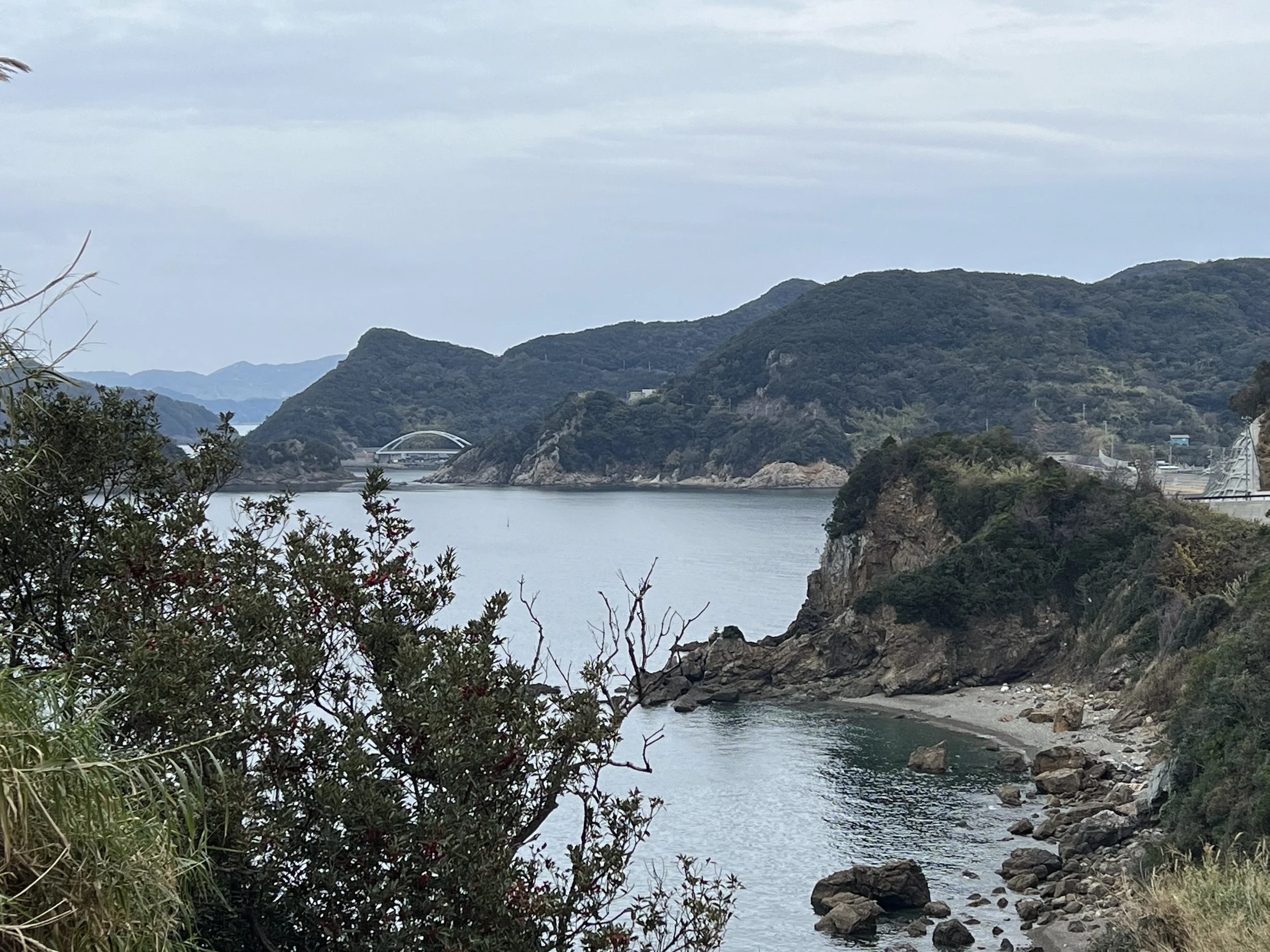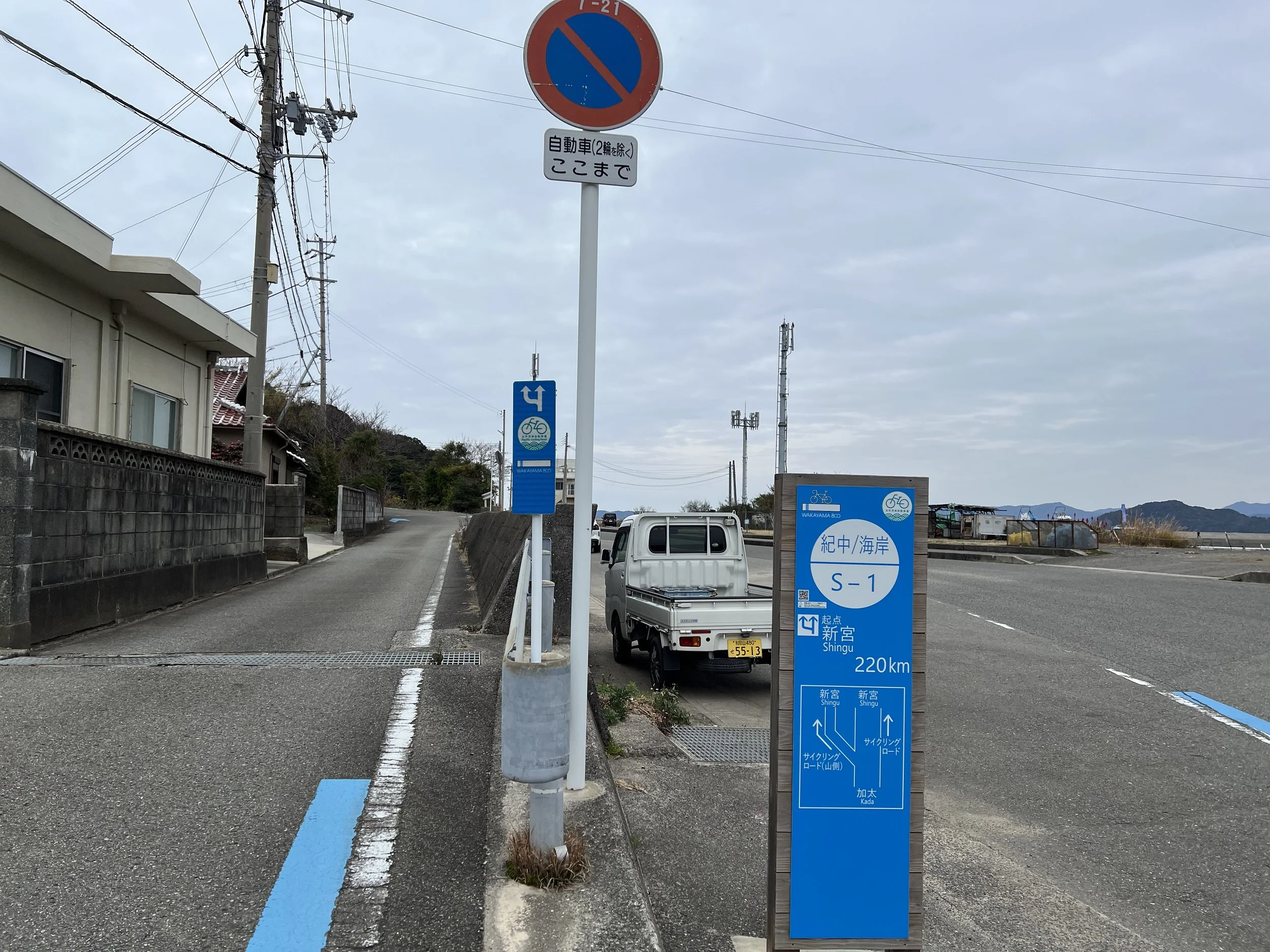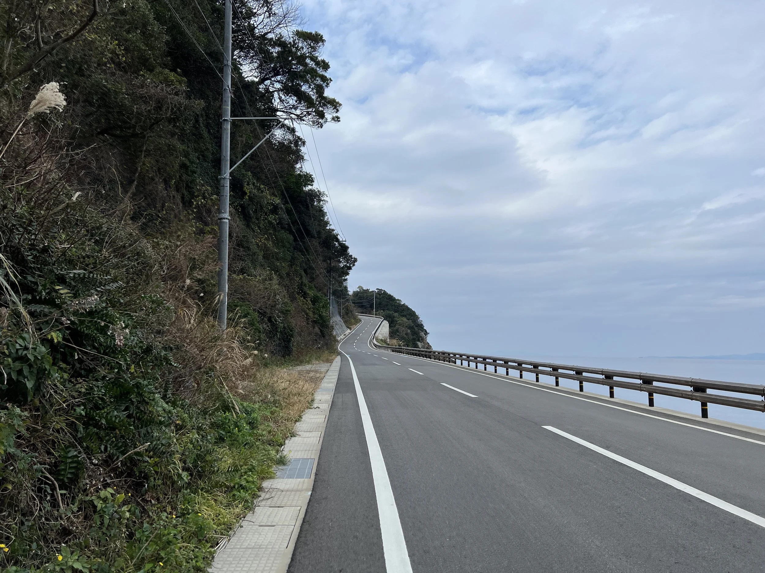 As I approached the port area, I started noticing blue markings on the road indicating designated cycling routes. Curious, I looked it up and learned that this region is considered one of Wakayama’s premier cycling destinations. The coastal roads are relatively quiet but offer dramatic ocean views along the Pacific coastline. Walking along the road, I could definitely see why cyclists are drawn here—the views out over the ocean were spectacular.