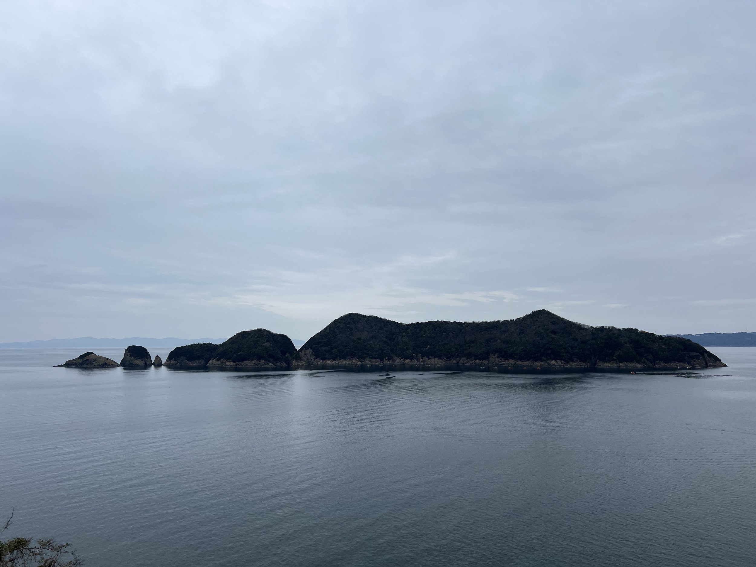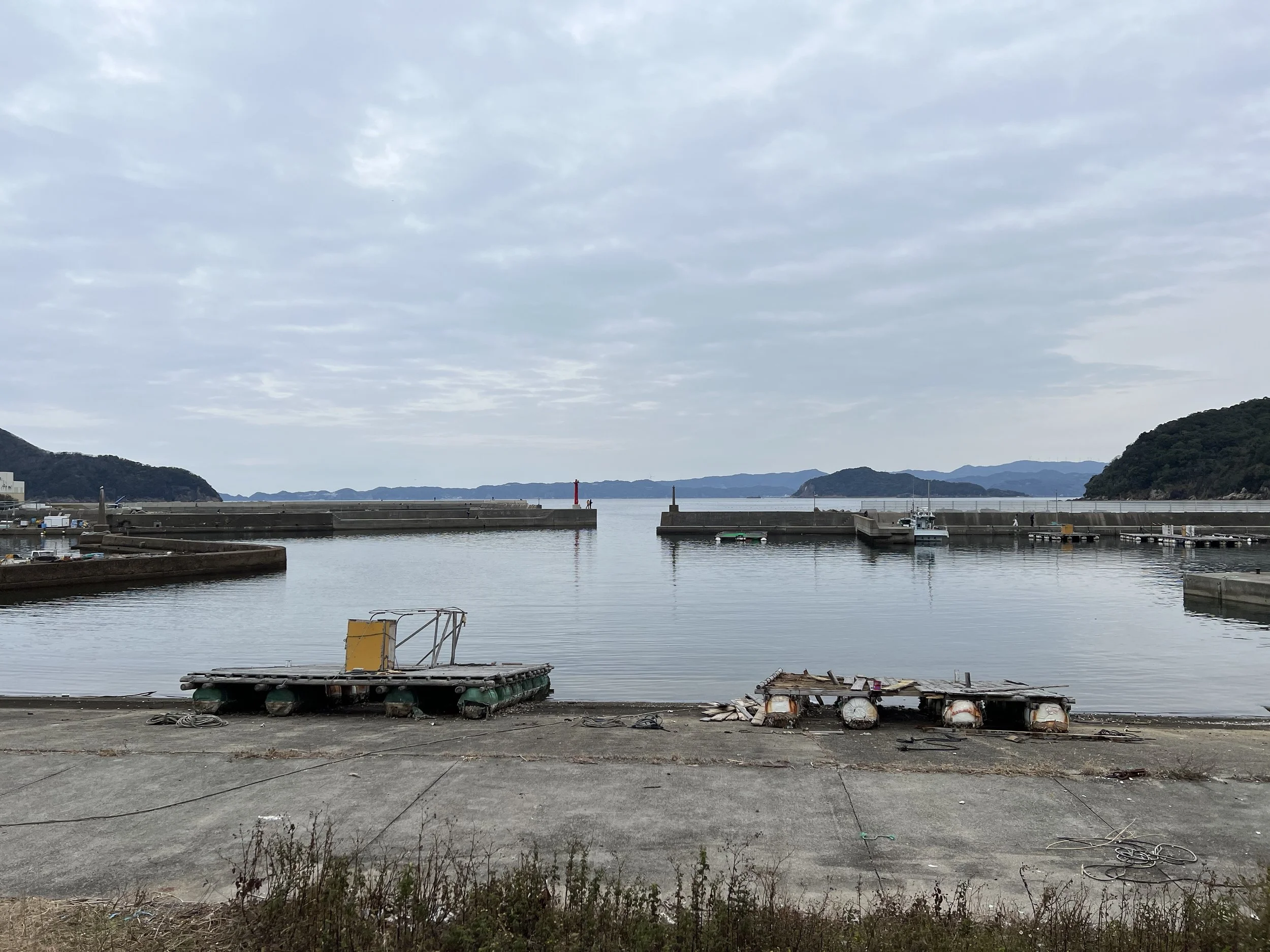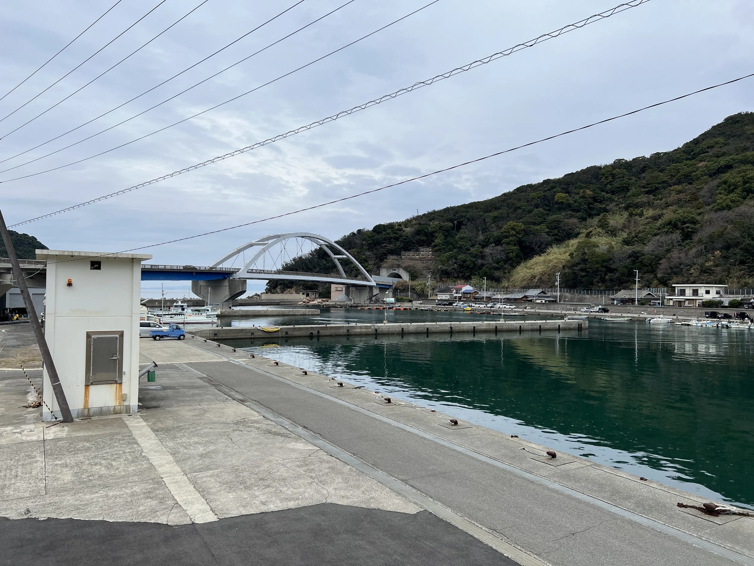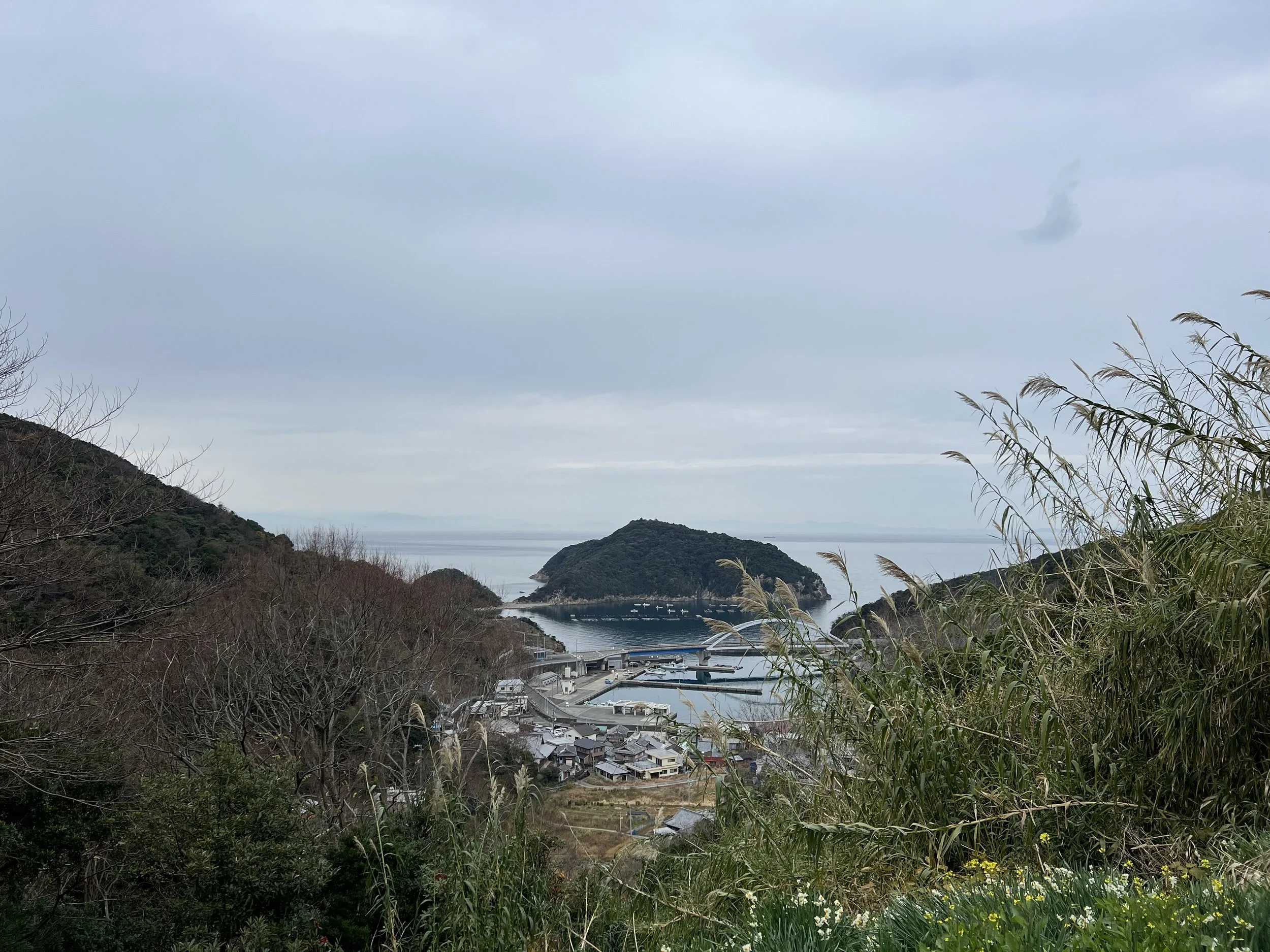 When I finally stepped back outside, I used a bit of my drinking water to rinse my face in hopes of easing the irritation. Standing near the viewpoint overlooking Totsui Fishing Port below, I rinsed my eyes again before taking a few photos of the harbour.